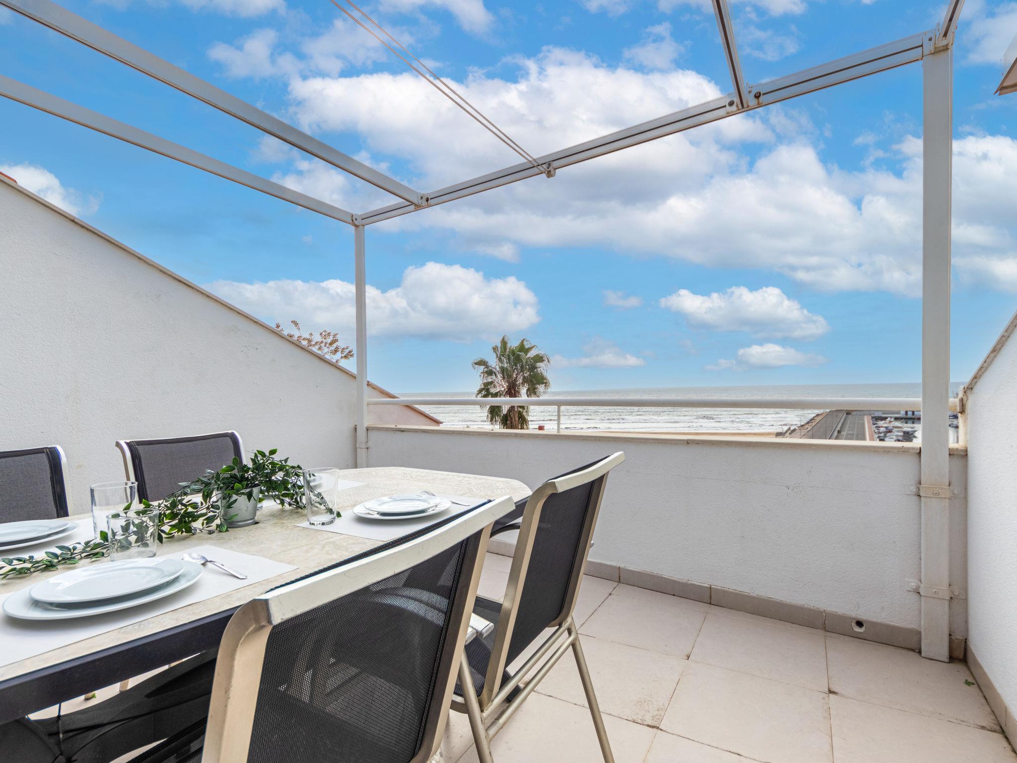 Puerto Cambrils: Apartment block "Voramar", 4 storeys. 5 m from the sea, 5 m from the beach, road to cross. In the house: lift. Supermarket 100 m, restaurant, bakery 50 m, bus stop 25 m, railway station 2.5 km, sandy beach 15 m. Sports harbour 15 m, golf course (18 hole) 2 km, surf school, sailing school 20 m. Nearby attractions: Parque temático Port Aventura 3 km, Parque aquático Aquopolis 6 km, Spa Aquum 6 km, Karting 3 km, Paintball 8 km. Please note: Additional accommodations can be booked. Property ref. 535.1/2/3 is situated on the same property.