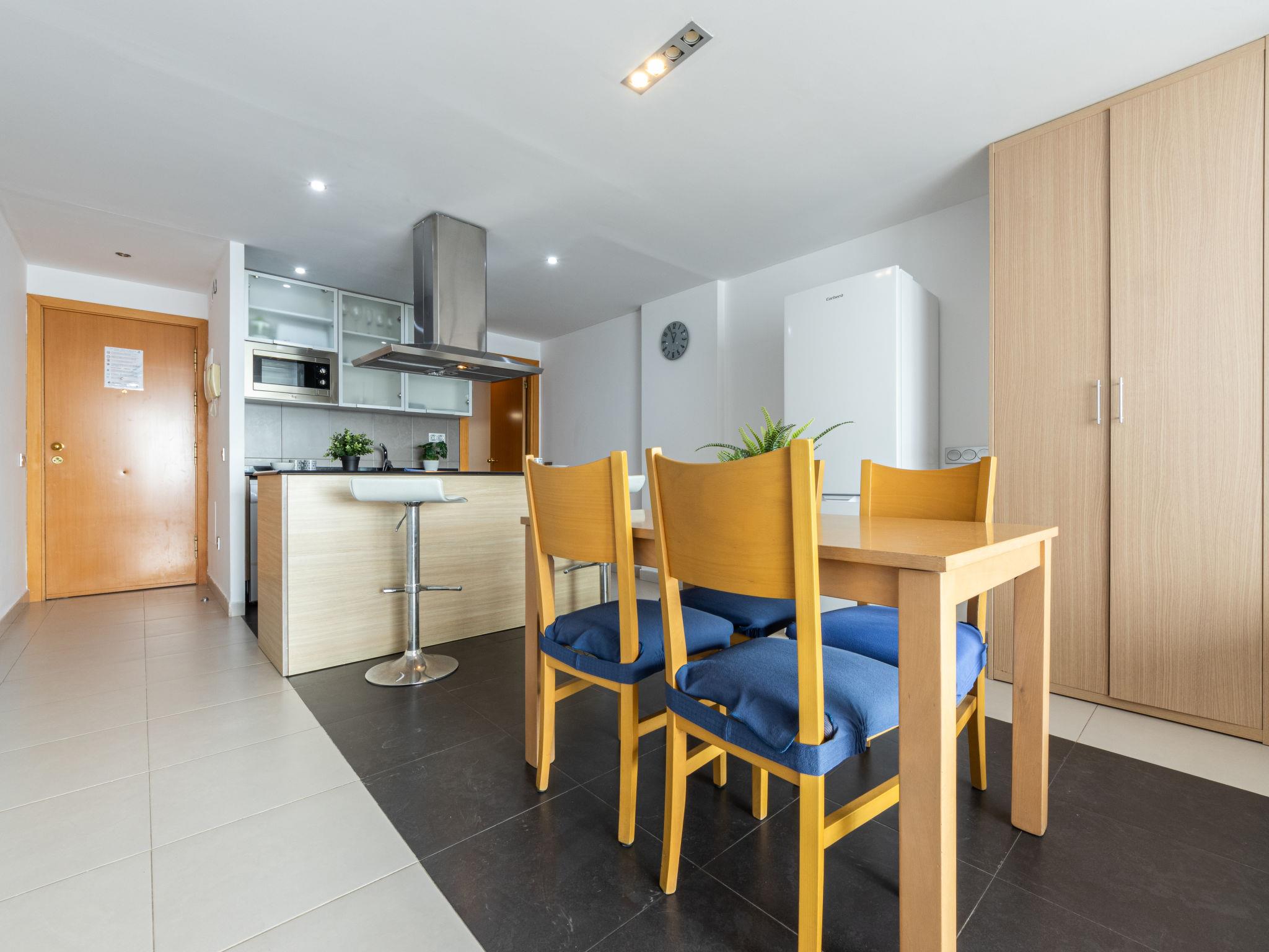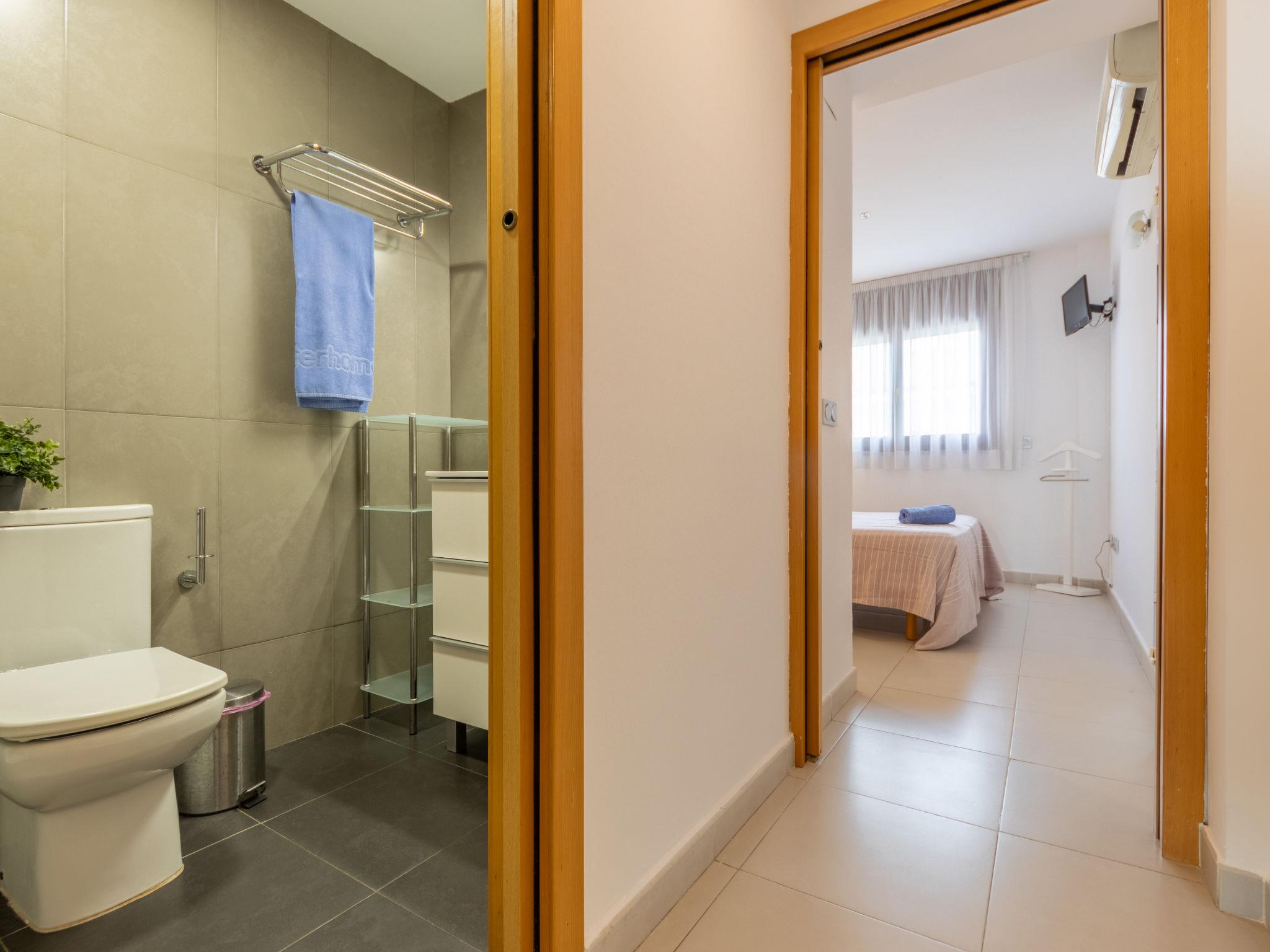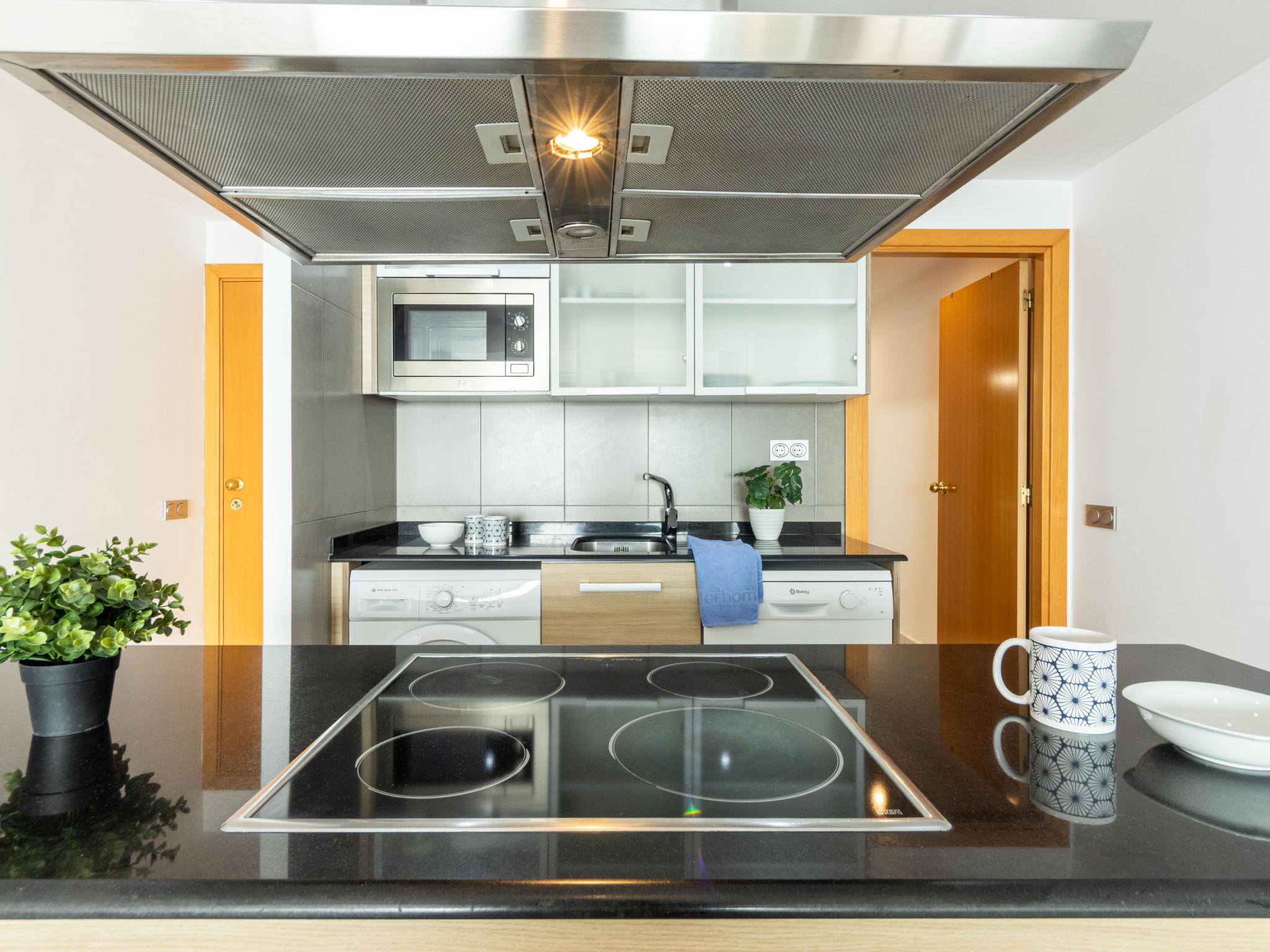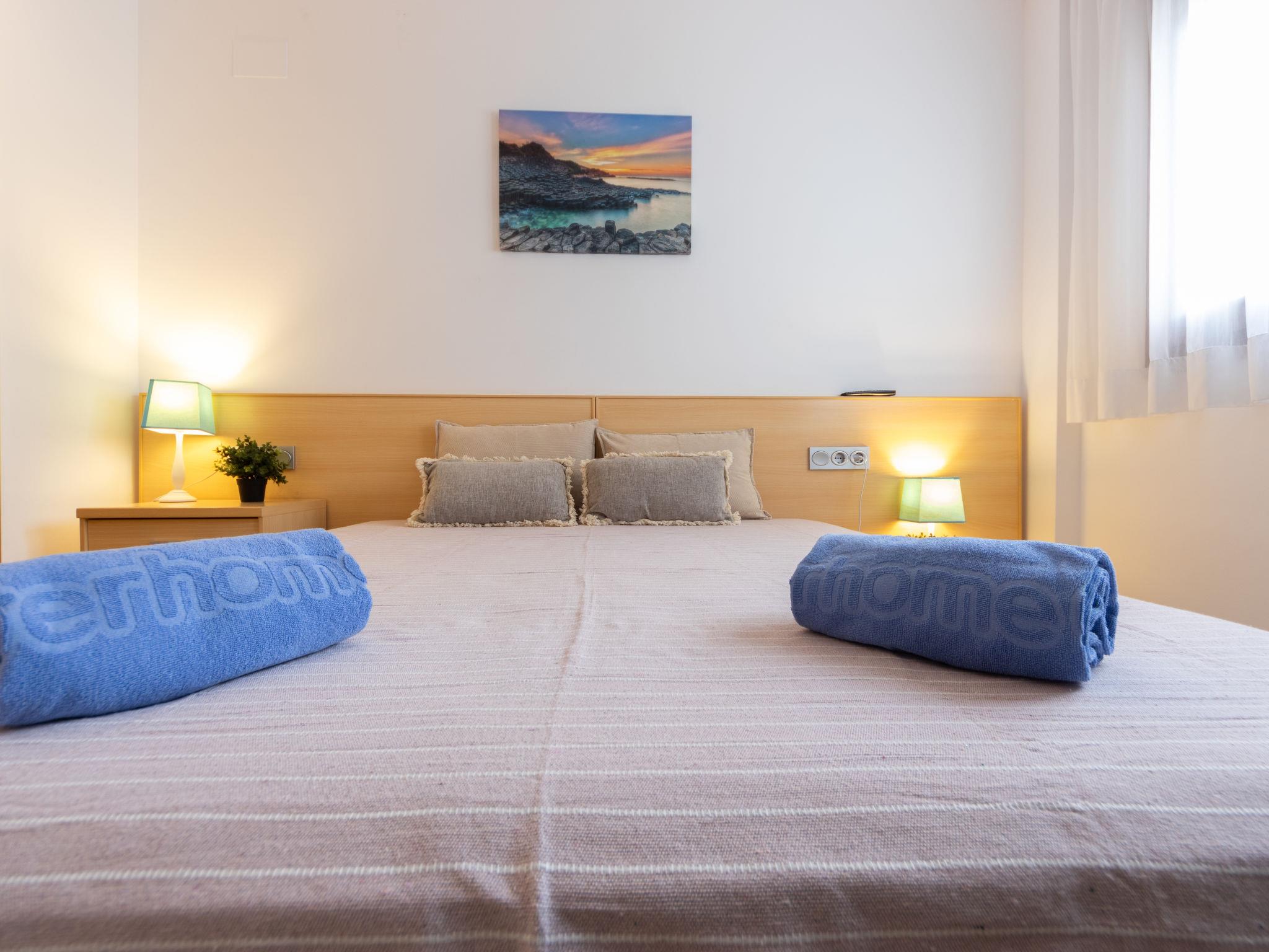 "Voramar 4", 2-room apartment 50 m2. Practical and comfortable furnishings: living/dining room with 1 double sofabed (150 cm, length 190 cm), digital TV, air conditioning and forced-air heating. Exit to the loggia. 1 room with 1 french bed (135 cm, length 190 cm), air conditioning and forced-air heating. Open kitchen (oven, dishwasher, 3 ceramic glass hob hotplates, toaster, kettle, microwave, electric coffee machine, Capsules for coffee machine (Nespresso)) with dining table, boiler (100 litres). Shower/WC. Heating not available in all rooms. Balcony. Balcony furniture. Very beautiful panoramic view of the sea. Facilities: washing machine, iron, children's high chair, baby cot, hair dryer. Suitable for families. Maximum 1 pet/ dog allowed. HUTT-008873 // Reg. Nr.: ESFCTU00004303100042064700000000000000HUTT-008873-498