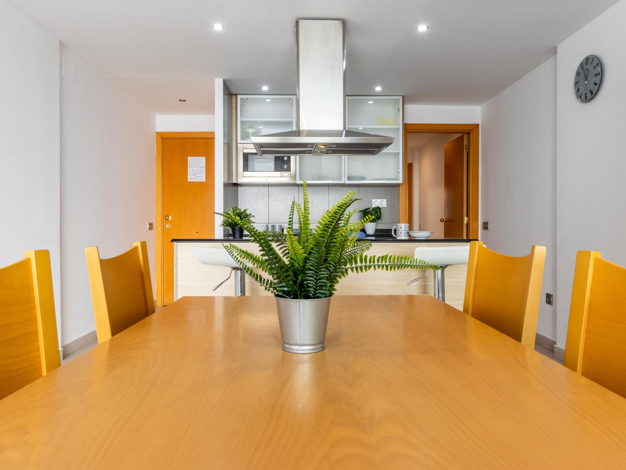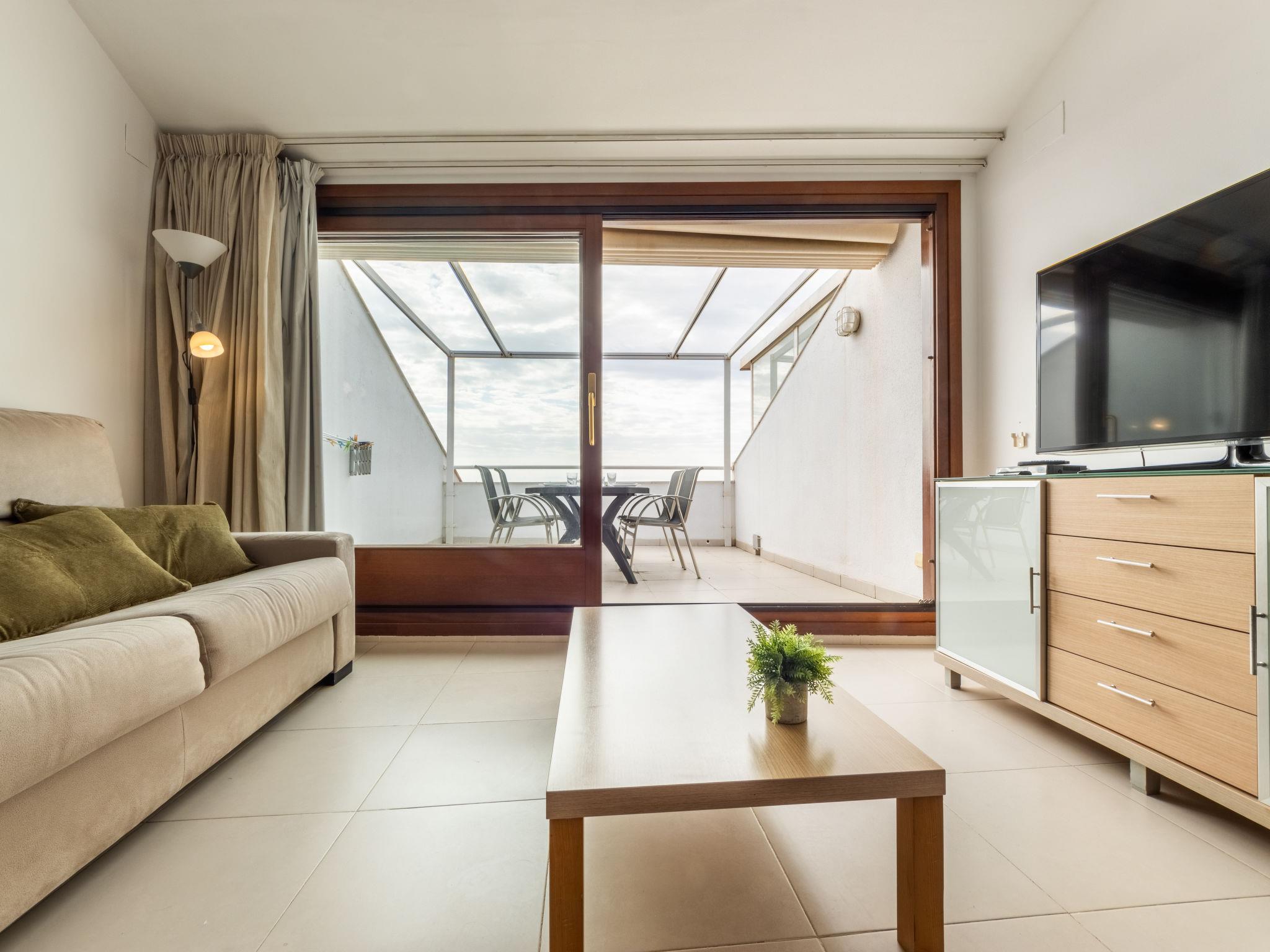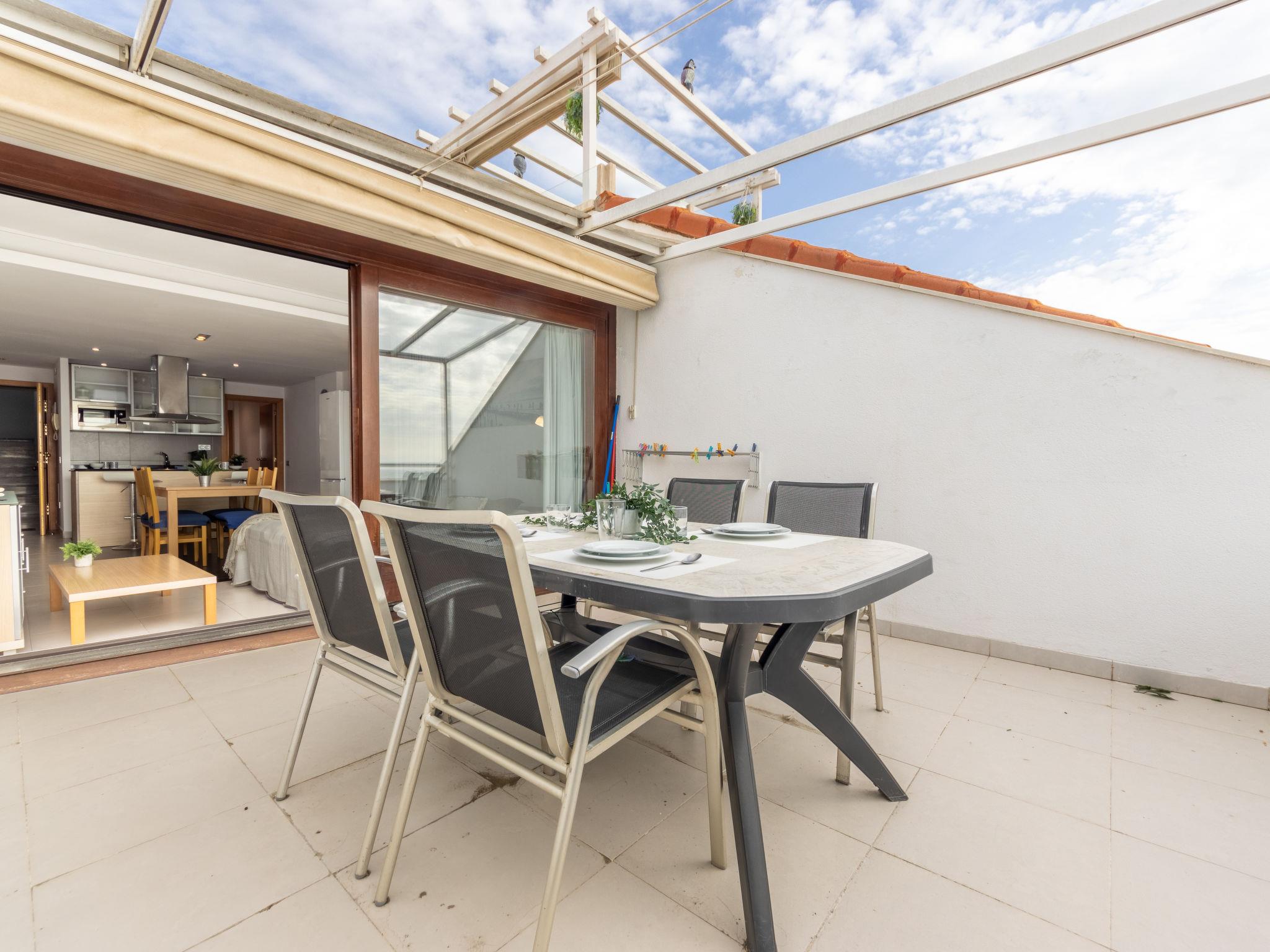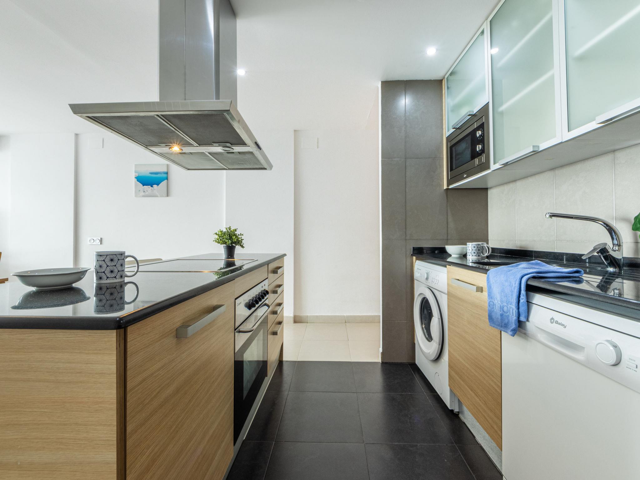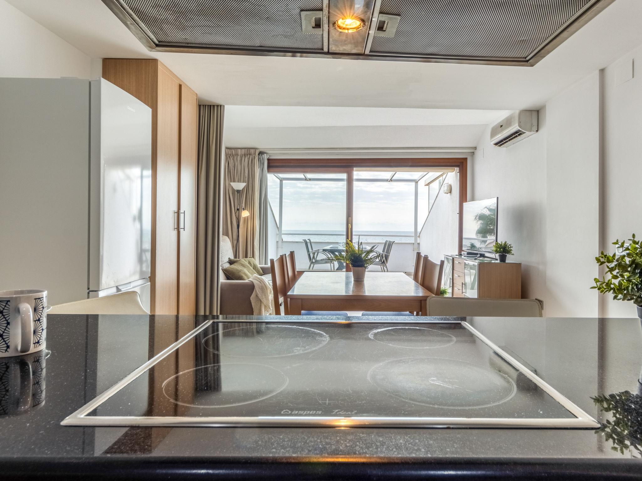 "Voramar 4", 2-room apartment 50 m2. Practical and comfortable furnishings: living/dining room with 1 double sofabed (150 cm, length 190 cm), digital TV, air conditioning and forced-air heating. Exit to the loggia. 1 room with 1 french bed (135 cm, length 190 cm), air conditioning and forced-air heating. Open kitchen (oven, dishwasher, 3 ceramic glass hob hotplates, toaster, kettle, microwave, electric coffee machine, Capsules for coffee machine (Nespresso)) with dining table, boiler (100 litres). Shower/WC. Heating not available in all rooms. Balcony. Balcony furniture. Very beautiful panoramic view of the sea. Facilities: washing machine, iron, children's high chair, baby cot, hair dryer. Suitable for families. Maximum 1 pet/ dog allowed. HUTT-008873 // Reg. Nr.: ESFCTU00004303100042064700000000000000HUTT-008873-498