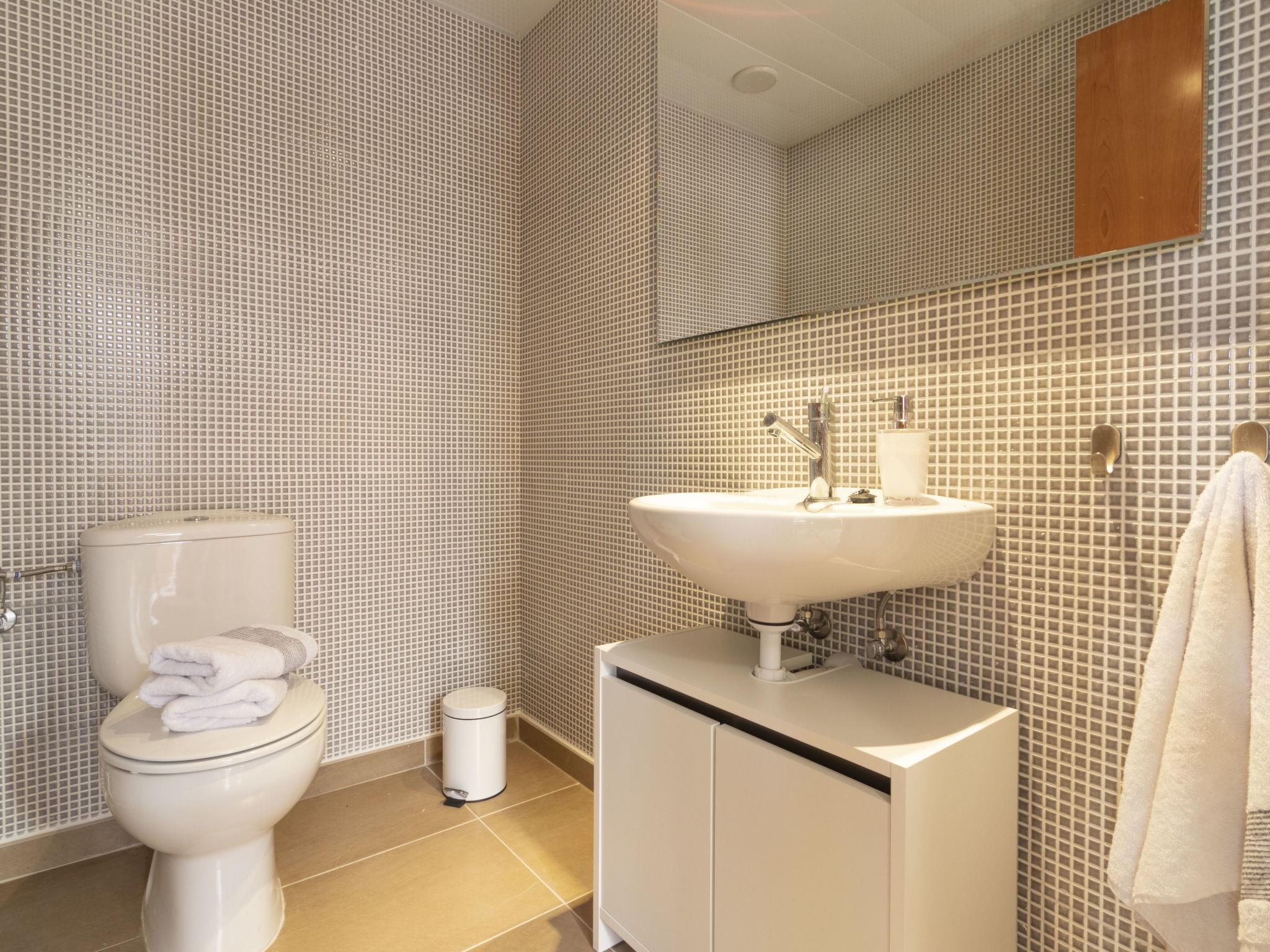 Very modern, beautiful resort "Sol Cambrils Park". In the resort, in a quiet, sunny position, 30 m from the sea, 30 m from the beach, road to cross. For shared use: property 10'000 m2 (fenced), large, beautiful, well-kept garden with lawn, swimming pool, indoor pool heated (22 x 65 m, depth 60 - 220 cm, seasonal availability: 01.Jan. - 31.Dec. pool opening hours: 10:00-23:00). Children's pool, outdoor shower. In the house: sauna, fitness room, hot tub, lift. Shop, grocery, supermarket 600 m, shopping centre 12 km, restaurant, bar 200 m, bakery 600 m, café 200 m, bicycle rental 300 m, pub garden 200 m, bus stop "Playa Cavet" 240 m. Sports harbour 3 km, marina 3 km, golf course (18 hole) 6 km, surf school 500 m, sailing school 3 km, riding stable 8 km. Nearby attractions: Port Aventura 8 km, Aquopolis 9 km, Aquum Spa 9 km. Hiking paths: La Mussara 35 km. The owner does not accept any youth groups. Please note: Property ref. ES9582.600.6 is situated on the same property. Neighbourhood highly sensitive to noise. Quietness and good behaviour expected. The grounds have a sports court, suitable for football and basketball, 2 small tennis courts and a beach-volleyball court. Use of these courts is included in the rent.