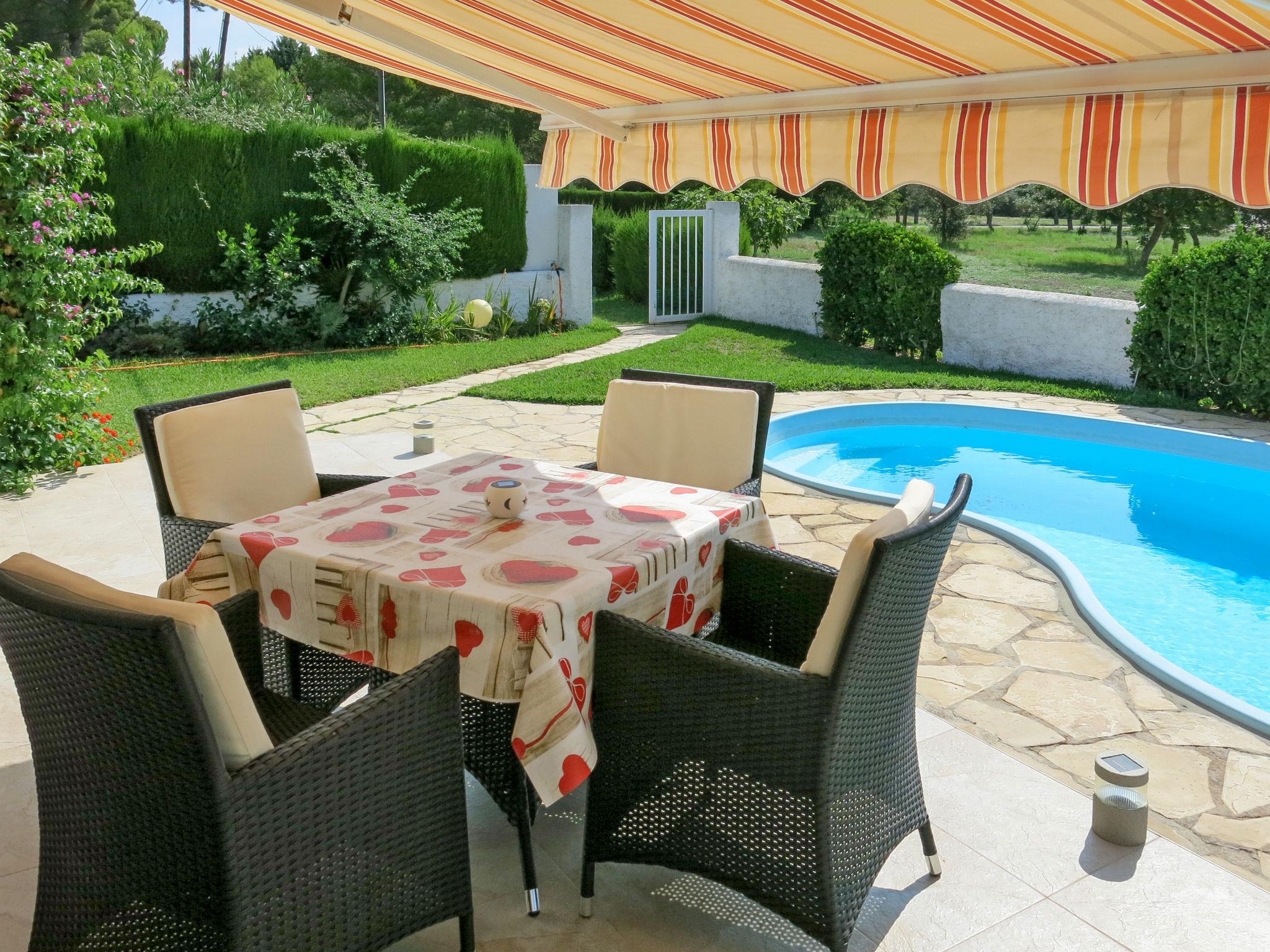 Single-family house "Ingeborg". In the district of Vilafortuny II 4 km from the centre of Cambrils, 2 km from the centre of Salou, 100 km from the centre of Barcelona, 600 m from the sea. Private: property 300 m2 (fenced), well-kept garden with lawn, swimming pool kidney shaped (20 m2, depth 150 - 150 cm, seasonal availability: 02.May. - 31.Oct.). Outdoor shower, pool maintenance by the owner/gardener. In the house: laundry. Motor access (100 m via unmade road). Roofed, parking at 100 m. Shop 500 m, supermarket 900 m, bus stop "av castell de vilafortuny" 400 m, sandy beach "Cap San Pere" 600 m.
