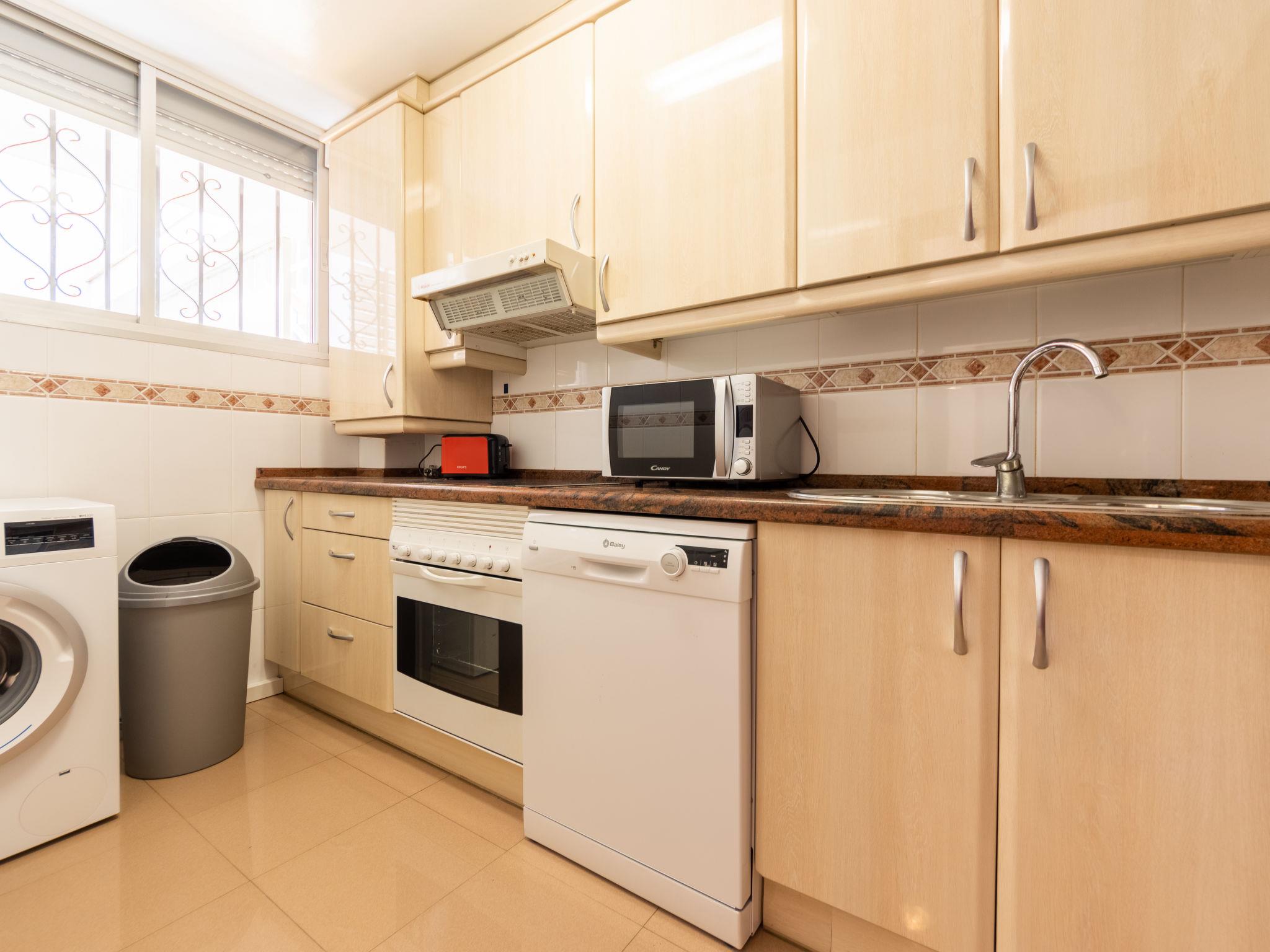 "Sol España", 3-room apartment 53 m2 on 3rd floor. Practical furnishings: living/dining room with sliding door with satellite TV. Exit to the terrace. 1 room with 1 french bed (160 cm, length 190 cm). Exit to the terrace. 1 room with 2 beds (90 cm, length 190 cm). Exit to the terrace. Kitchen (oven, dishwasher, 4 ceramic glass hob hotplates, toaster, kettle, microwave). Shower/WC. Air-conditioning, forced-air heating. Terrace. Terrace furniture, deck chairs. View of the sea. Facilities: washing machine, iron, hair dryer. Internet (WiFi, free). Parking space n 16 (roofed). Please note: TV only FR, ES. HUTT-059788