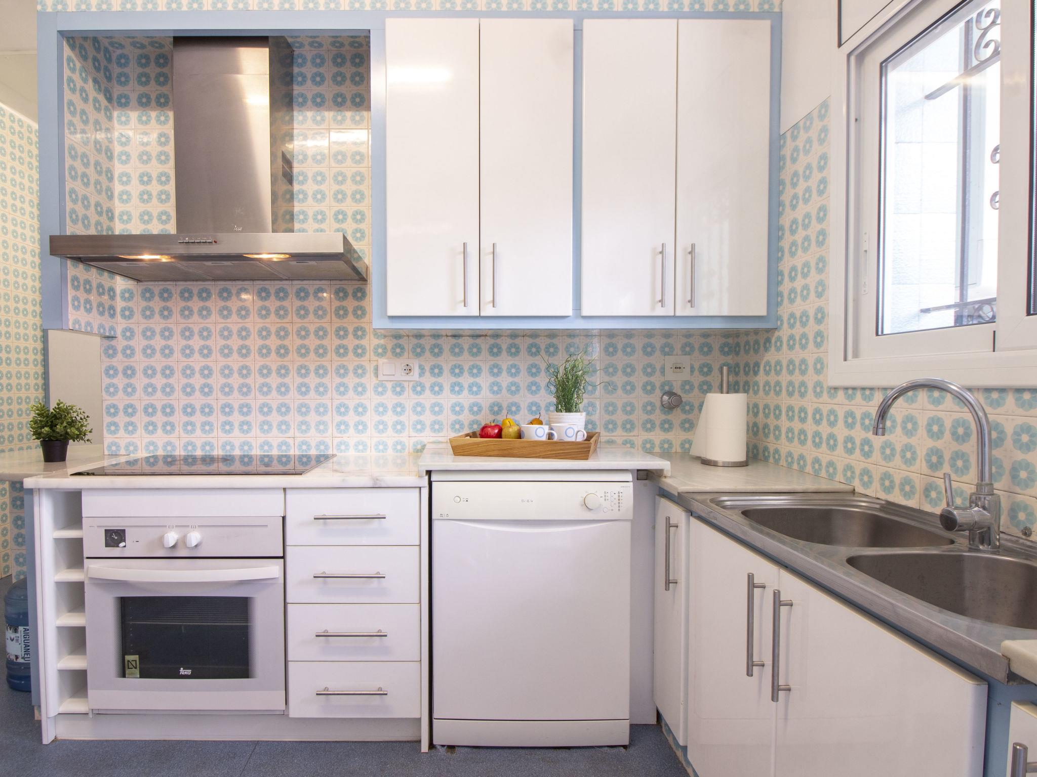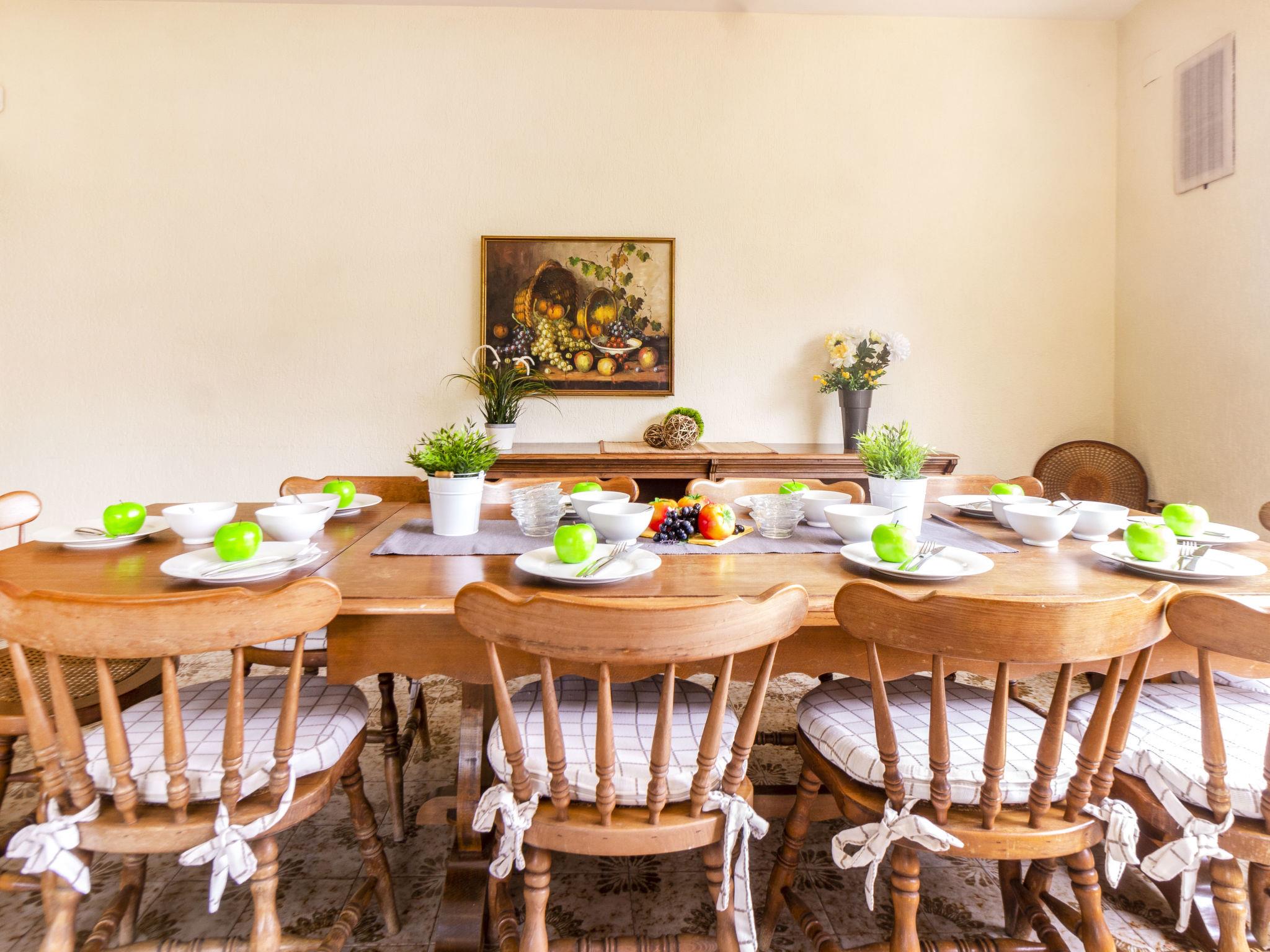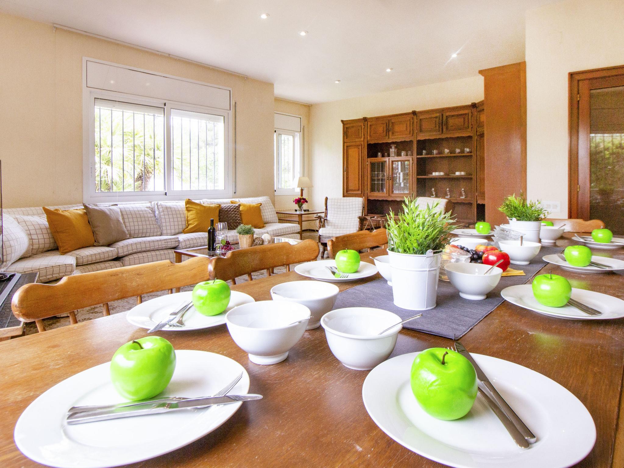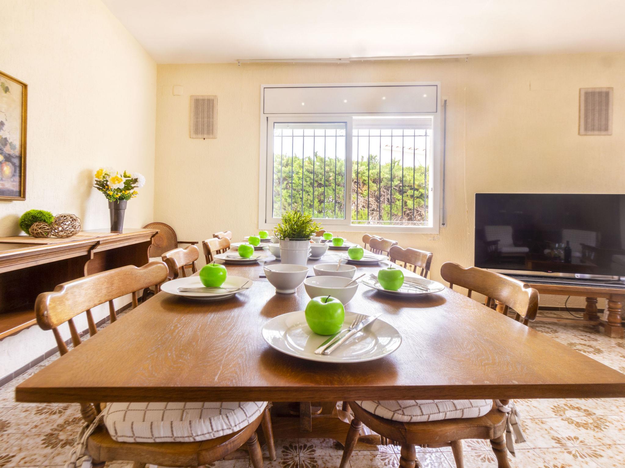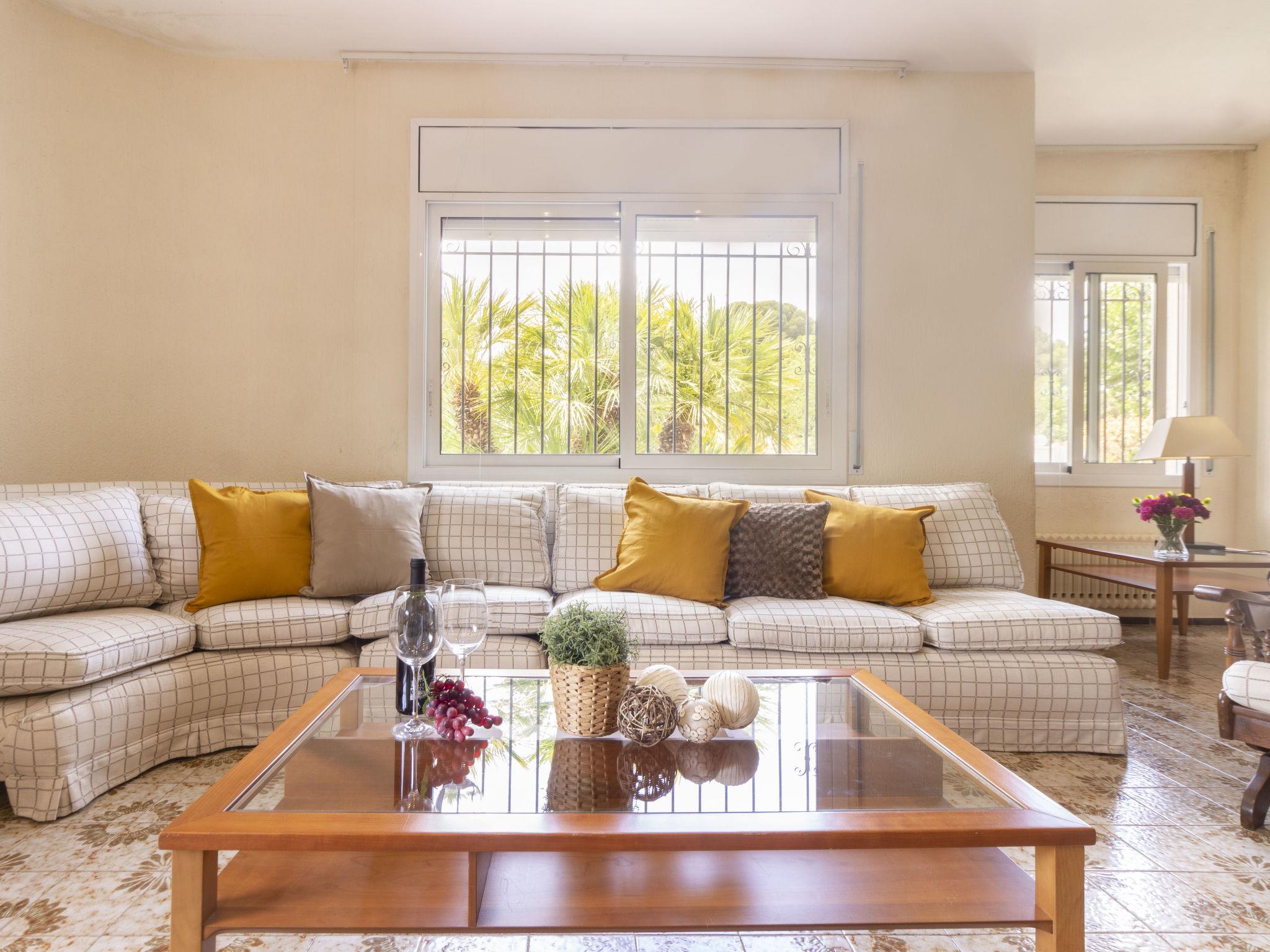 "Villa Esplai", 7-room house 149 m2. Object suitable for 8 adults + 4 children. Spacious, comfortable and cosy furnishings: living/dining room with digital TV and flat screen. 1 room with 1 french bed (180 cm, length 200 cm). 1 room with 1 french bed (140 cm, length 190 cm), bath/WC. 1 room with 1 french bed (135 cm, length 190 cm). 1 room with 2 pull-out beds (4 pers. 2 x 90 cm, length 180 cm). 1 room with 1 french bed (135 cm, length 190 cm). Kitchen (oven, dishwasher, 4 ceramic glass hob hotplates, microwave, electric coffee machine, Capsules for coffee machine (Nespresso)). 2 showers/WC. No heating option. Large terrace. Terrace furniture, barbecue, deck chairs (6). View of the garden. Facilities: washing machine, dryer, iron, children's high chair, baby cot, hair dryer. Internet (WiFi). Please note: suitable for families. Non-smoking house. HUTT-048154 // Reg. Nr.: ESFCTU00004303100004386000000000000000000HUTT-0481546