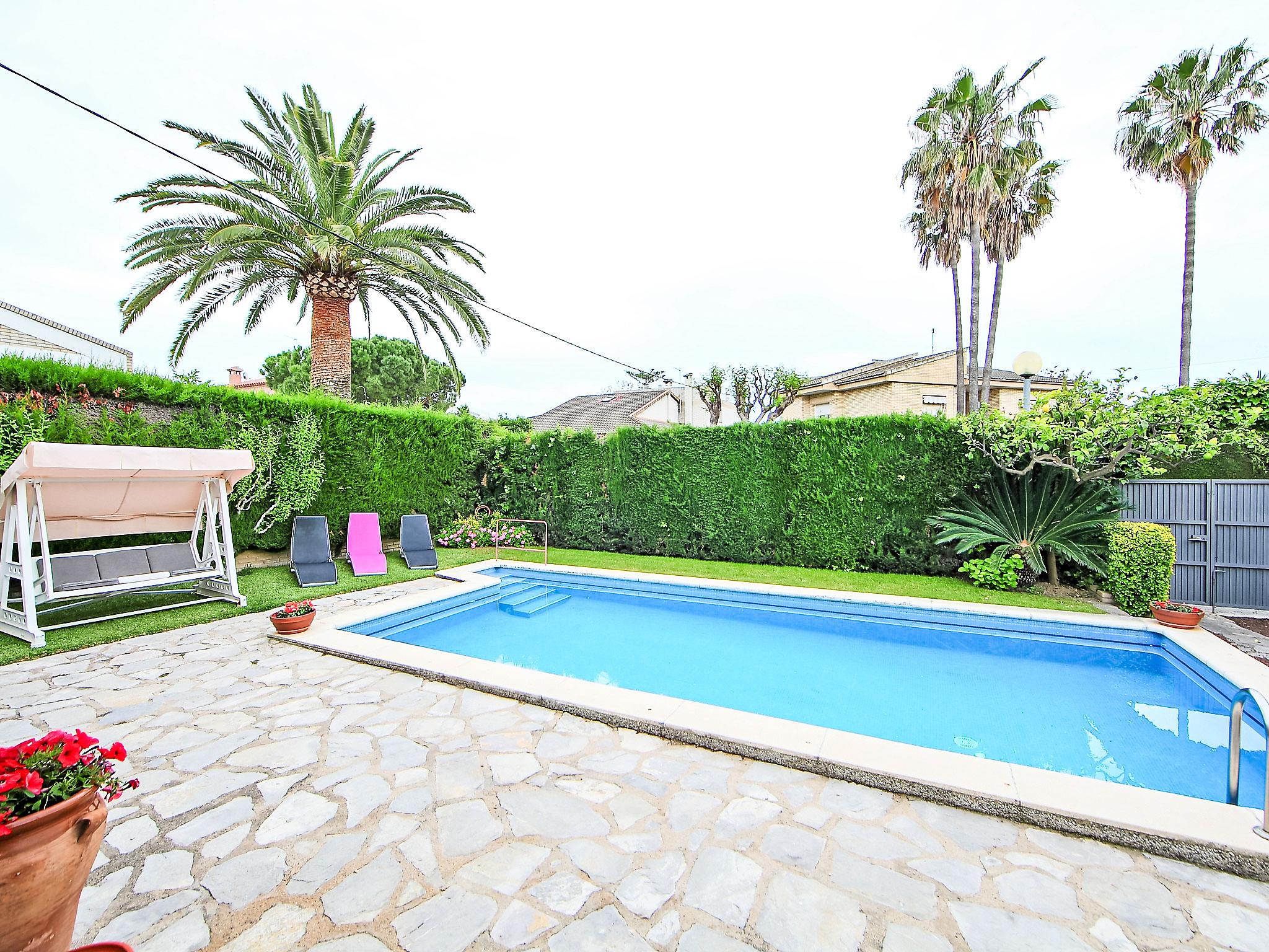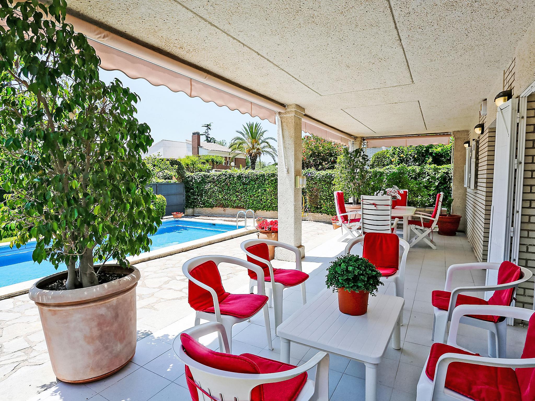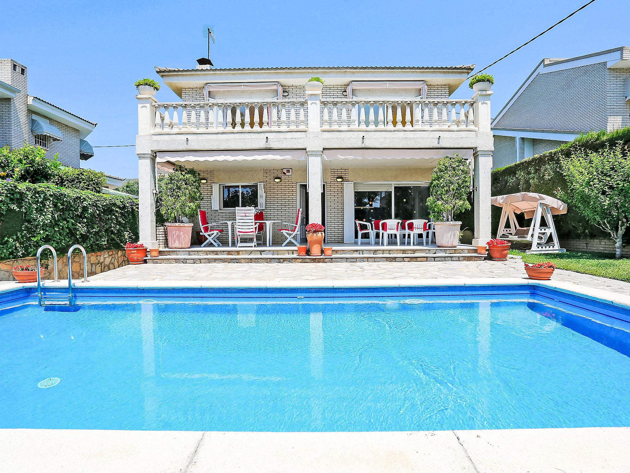 Vilafortuny 5 km from Cambrils Centro: Child friendly, beautiful single-family house "Annamaria", 2 storeys. In a quiet position residential area (villas), 800 m from the sea, 800 m from the beach. Private: well-kept garden (fenced), swimming pool angular (seasonal availability: 01.Jan. - 31.Dec.). Outdoor shower, pergola, pool maintenance by the owner/gardener. Public parking on the road. Shop, grocery, supermarket 500 m, shopping centre 2 km, restaurant 600 m, bakery 500 m, café 600 m, bus stop "santiago russiñol" 200 m. Sports harbour 5 km, marina 5 km, golf course (18 hole) 8 km, surf school 5 km, sailing school 5 km, riding stable 8 km. Nearby attractions: Port Aventura 6 km, Aquopolis 6 km, Aquum Spa 6 km, Electric Carting Salou 6 km. Please note: car recommended. Suitable for families. The owner does not accept any groups. The owner does not accept any youth groups. Loading and unloading of baggage is possible at the holiday house. Neighbourhood highly sensitive to noise. Quietness and good behaviour expected.