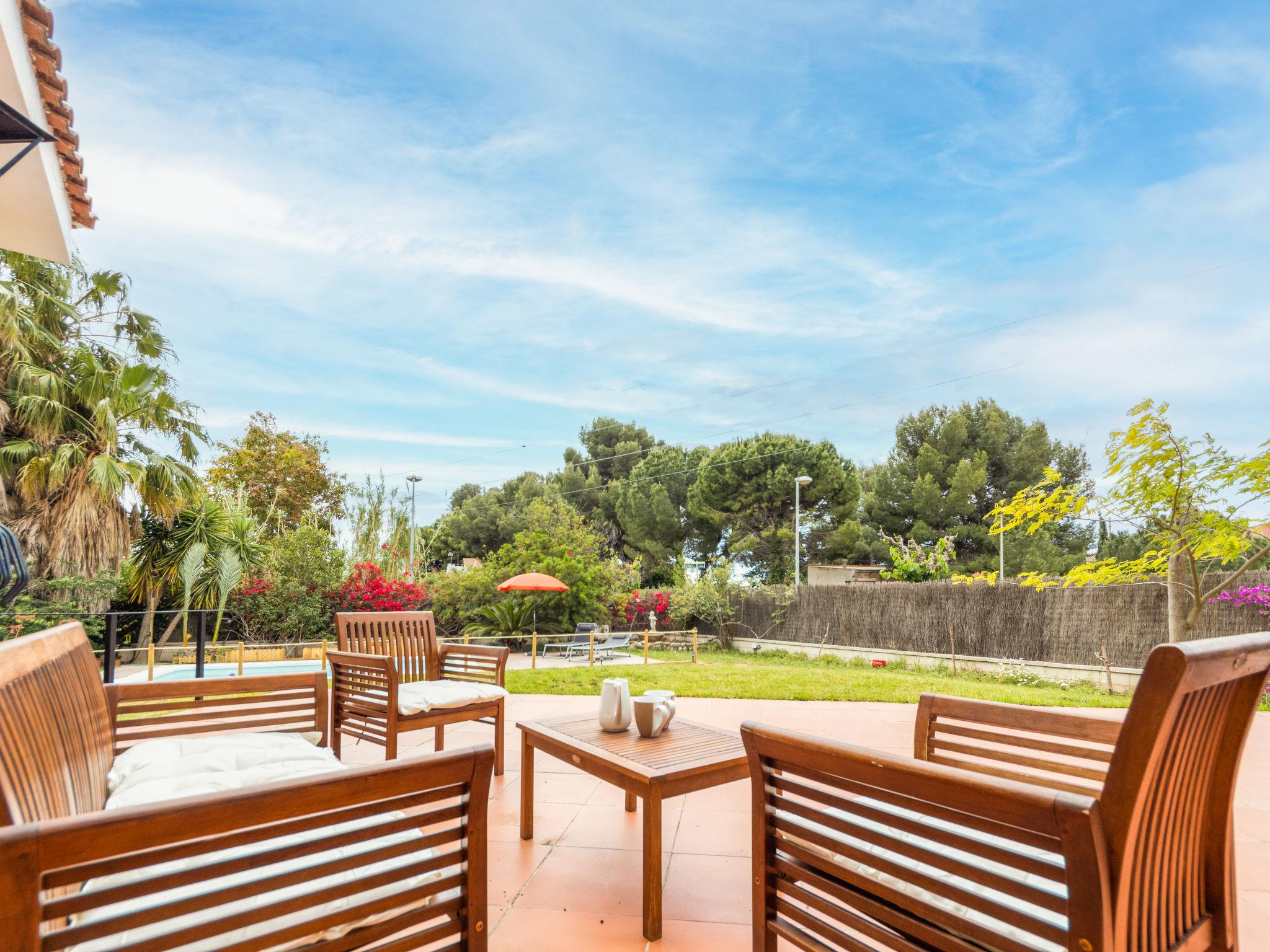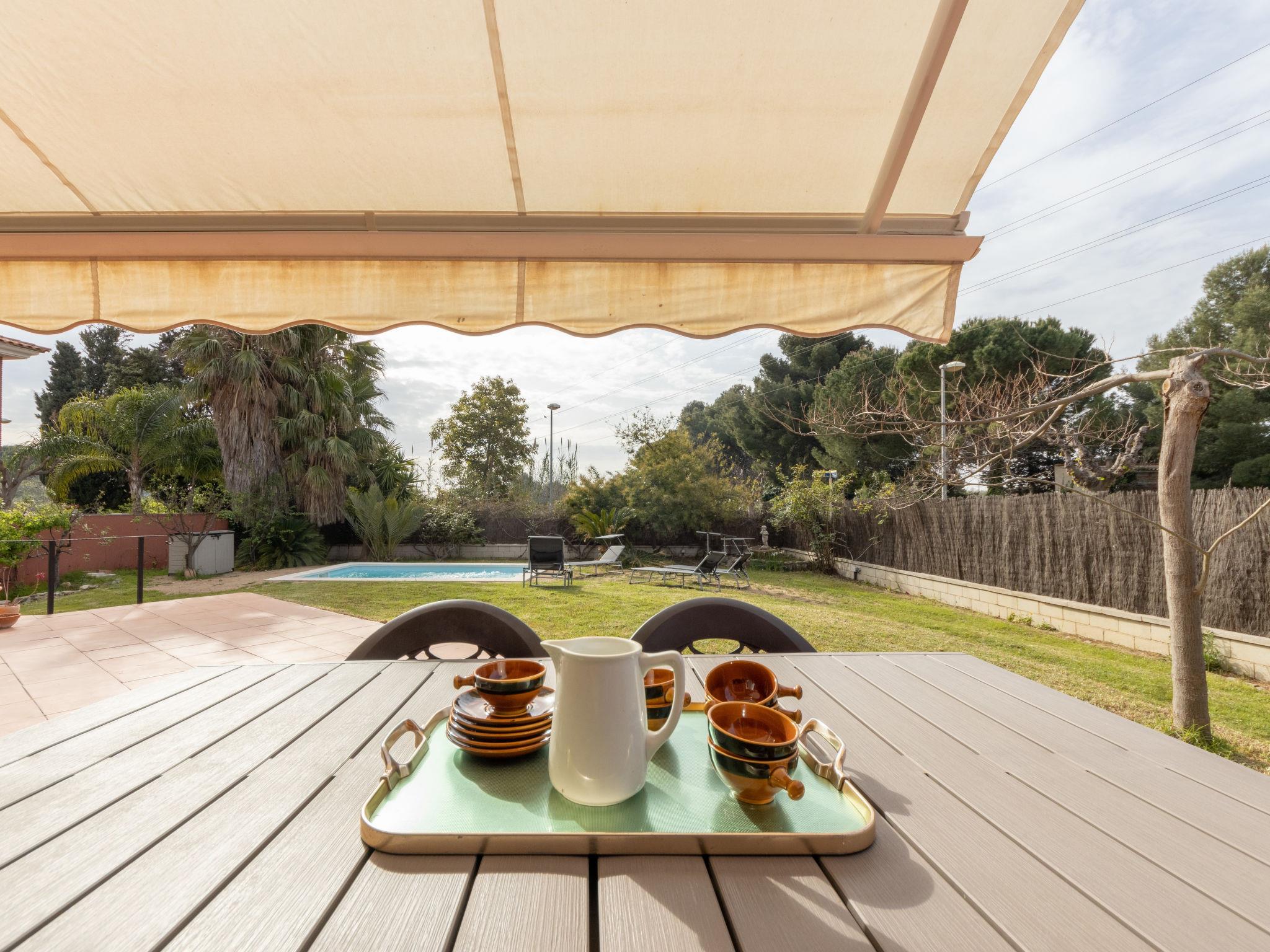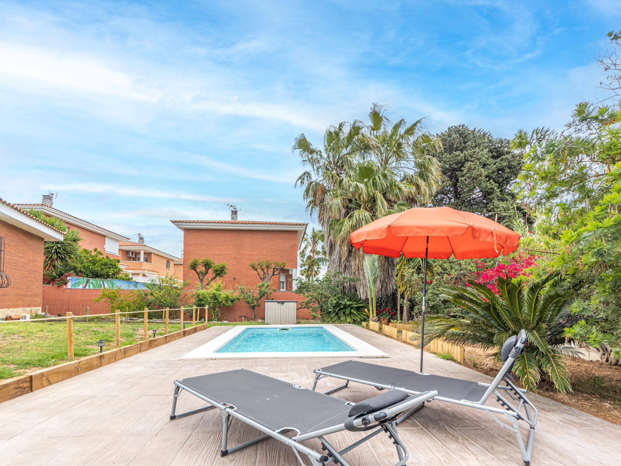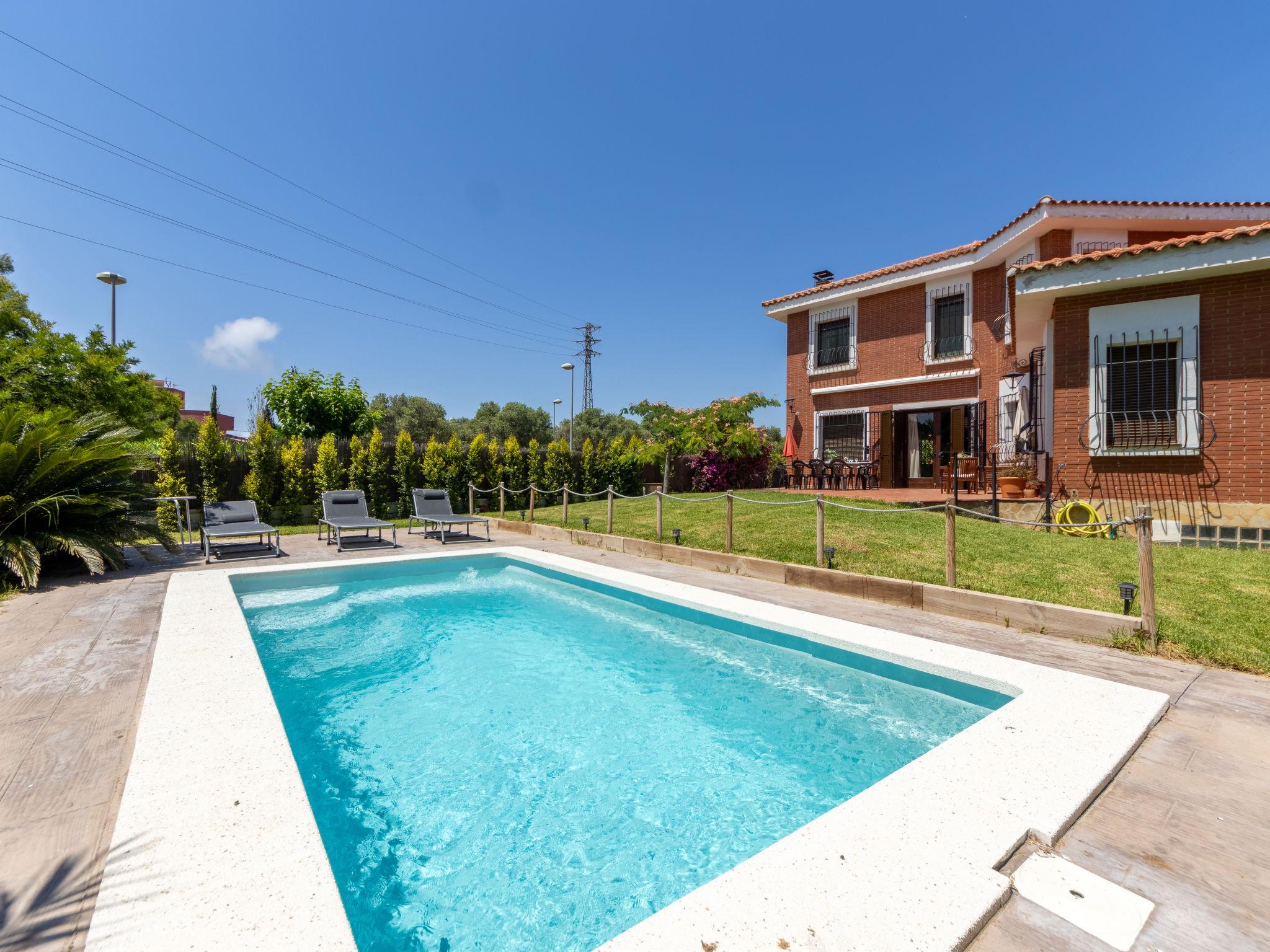Vilafortuny 5 km from Cambrils Centro: Beautiful, rustic single-family house "Alexandra", 2 storeys, built in 2004. In a quiet position residential area (villas), 1 km from the sea, 1 km from the beach. Private: beautiful garden to relax, swimming pool angular (6 x 3 m, seasonal availability: 01.Jan. - 31.Dec.). Terrace, garden furniture, barbecue, parking at the house, public parking on the road. Shop, grocery, supermarket 700 m, shopping centre 2 km, restaurant, bakery, café 700 m, bus stop "montemar" 200 m. Sports harbour 5 km, marina 5 km, golf course (18 hole) 8 km, surf school 5 km, sailing school 5 km, riding stable 8 km. Nearby attractions: Port Aventura 6 km, Aquopolis 6 km, Aquum Spa 6 km, Electric Carting Salou 6 km, Jumpland Ecologic Adventure 3 km. Hiking paths: La Mussara 45 km. Please note: car recommended. Suitable for families. The owner does not accept any youth groups. Loading and unloading of baggage is possible at the holiday house. Neighbourhood highly sensitive to noise. Quietness and good behaviour expected.