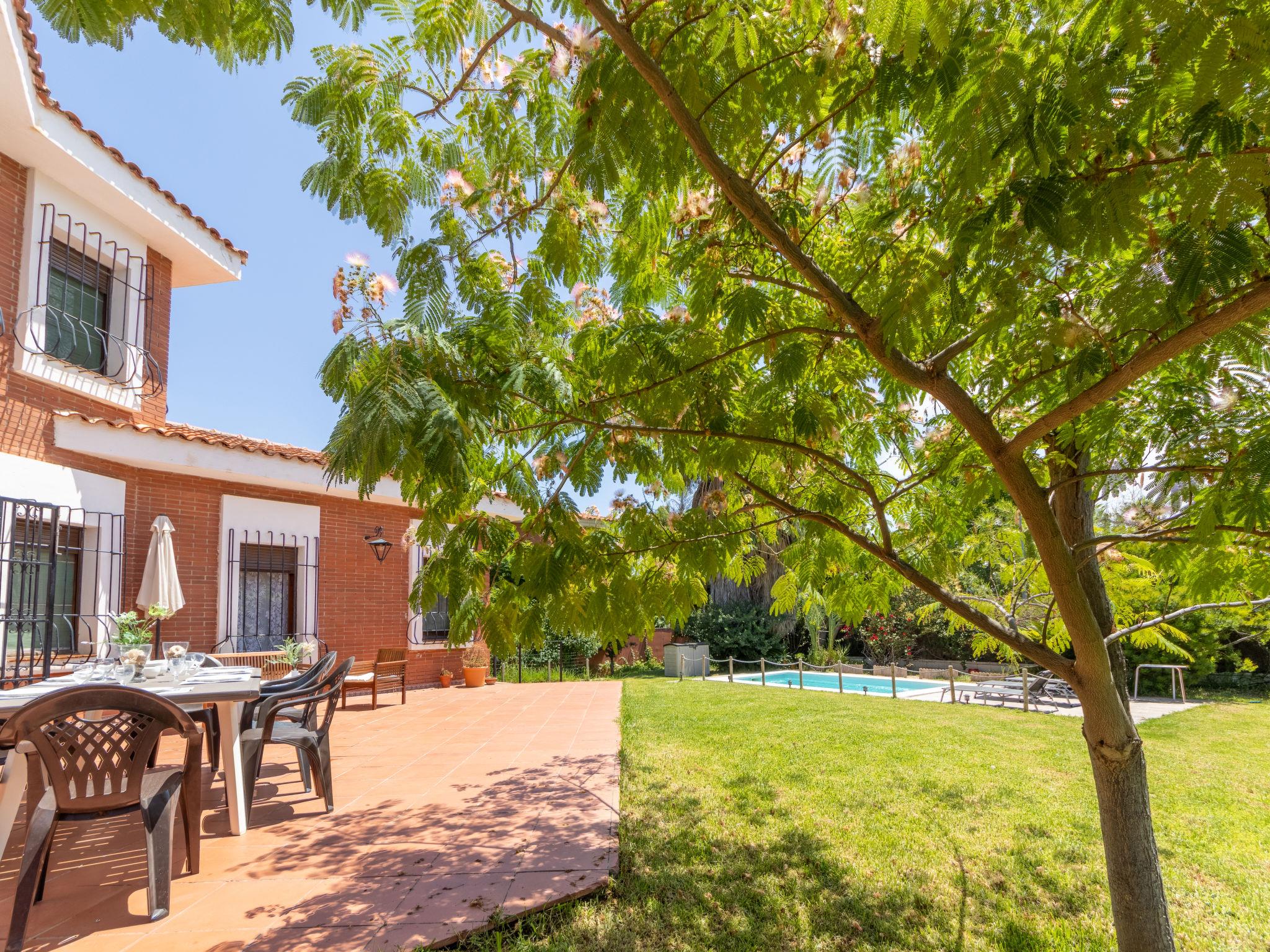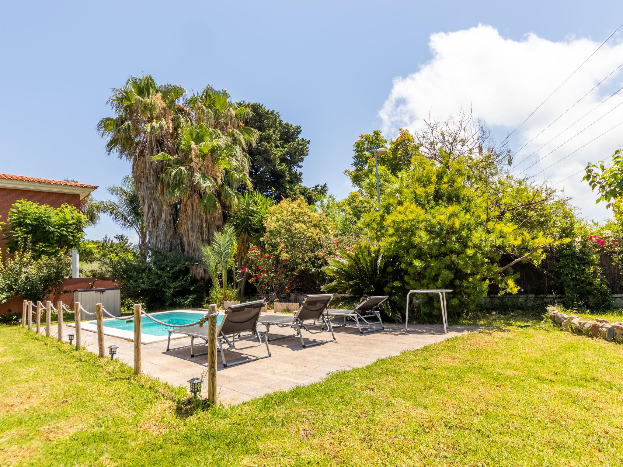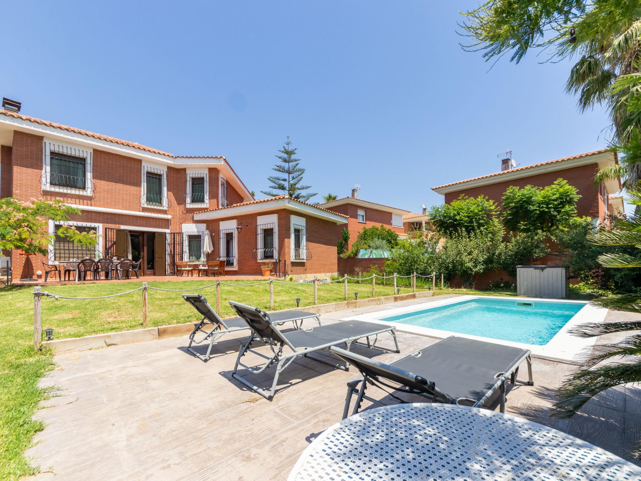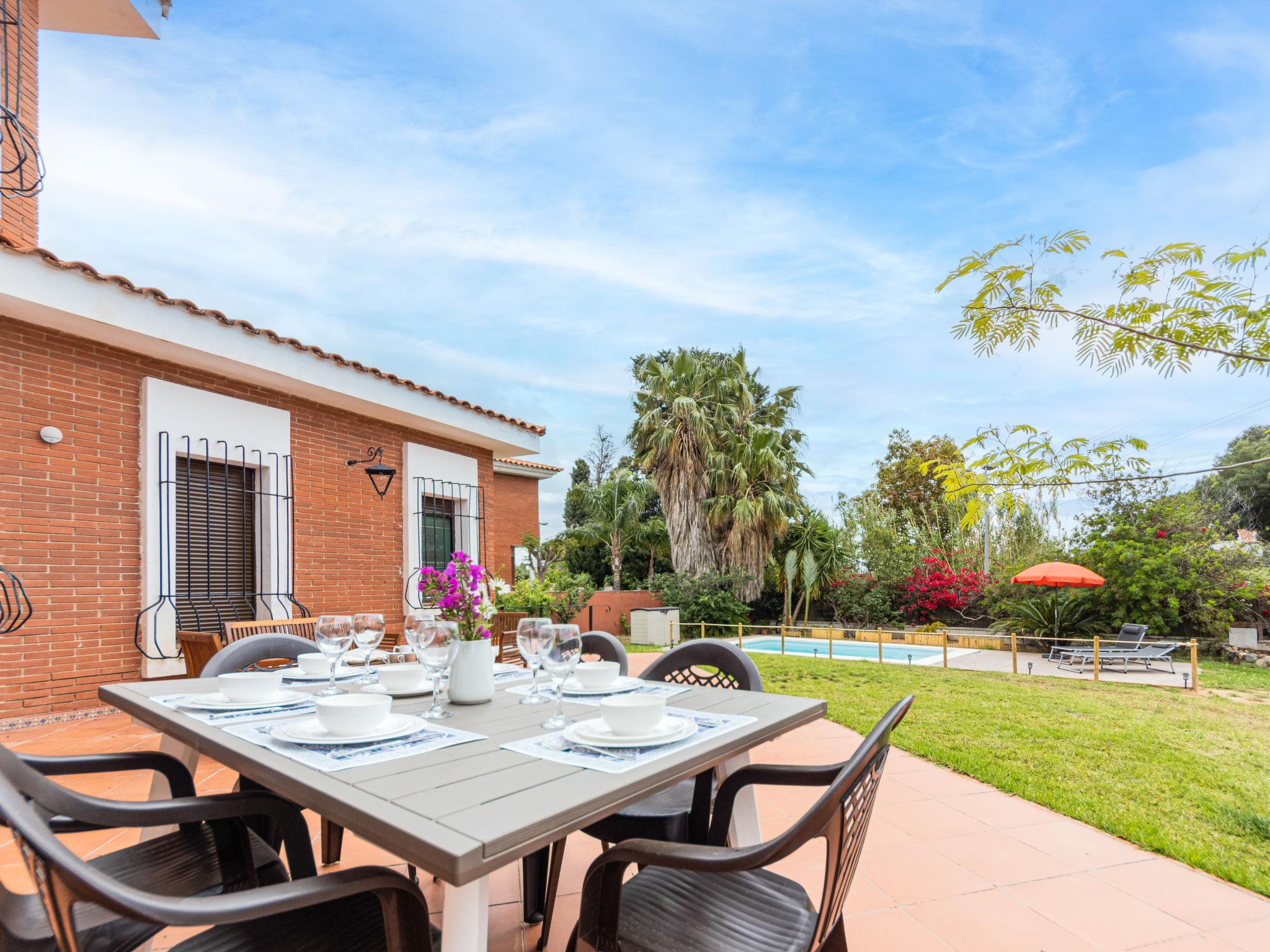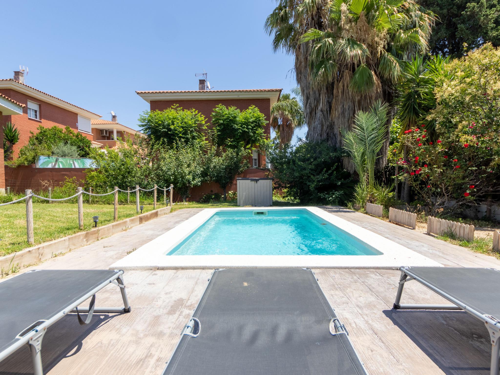 Vilafortuny 5 km from Cambrils Centro: Beautiful, rustic single-family house "Alexandra", 2 storeys, built in 2004. In a quiet position residential area (villas), 1 km from the sea, 1 km from the beach. Private: beautiful garden to relax, swimming pool angular (6 x 3 m, seasonal availability: 01.Jan. - 31.Dec.). Terrace, garden furniture, barbecue, parking at the house, public parking on the road. Shop, grocery, supermarket 700 m, shopping centre 2 km, restaurant, bakery, café 700 m, bus stop "montemar" 200 m. Sports harbour 5 km, marina 5 km, golf course (18 hole) 8 km, surf school 5 km, sailing school 5 km, riding stable 8 km. Nearby attractions: Port Aventura 6 km, Aquopolis 6 km, Aquum Spa 6 km, Electric Carting Salou 6 km, Jumpland Ecologic Adventure 3 km. Hiking paths: La Mussara 45 km. Please note: car recommended. Suitable for families. The owner does not accept any youth groups. Loading and unloading of baggage is possible at the holiday house. Neighbourhood highly sensitive to noise. Quietness and good behaviour expected.