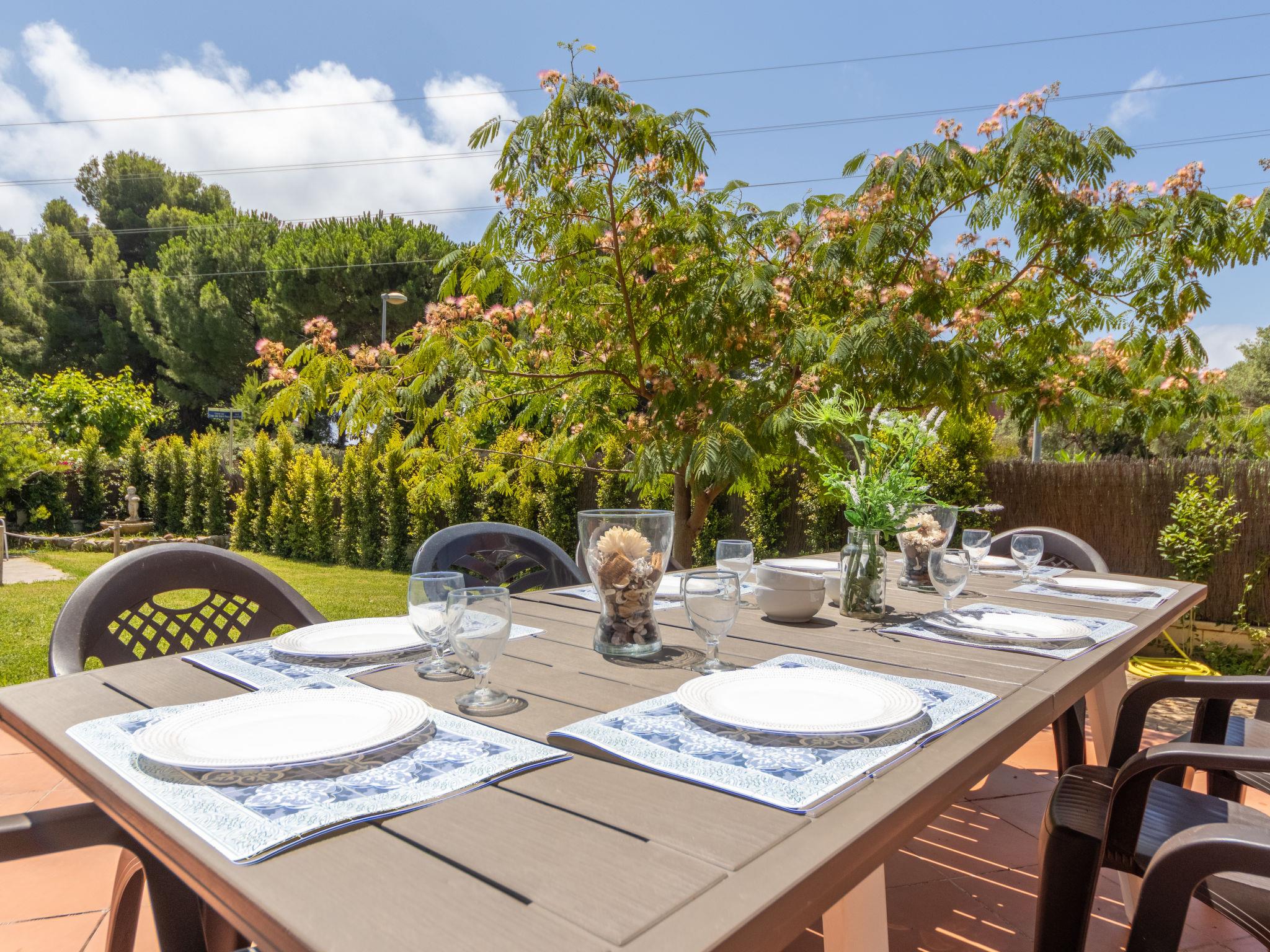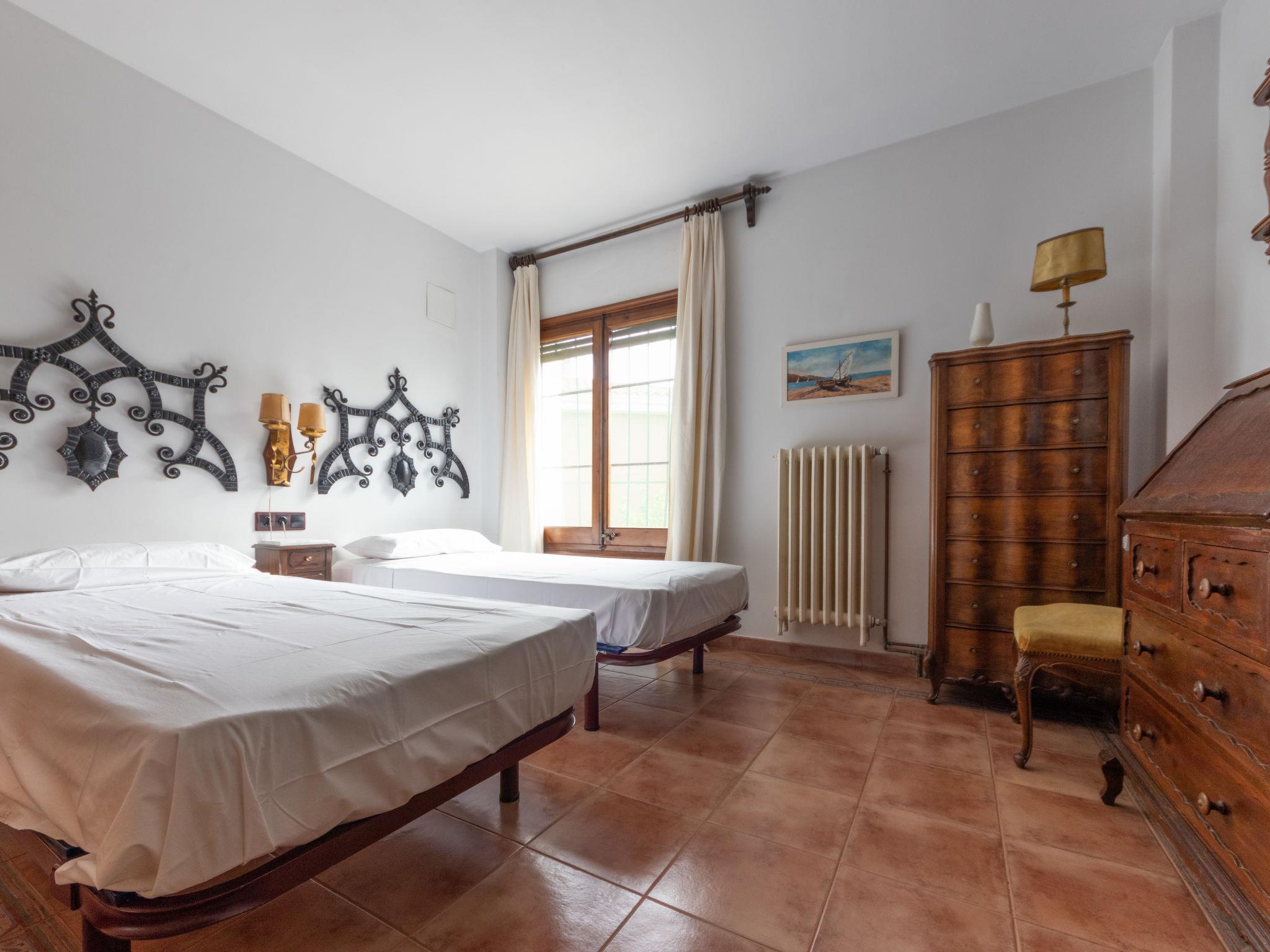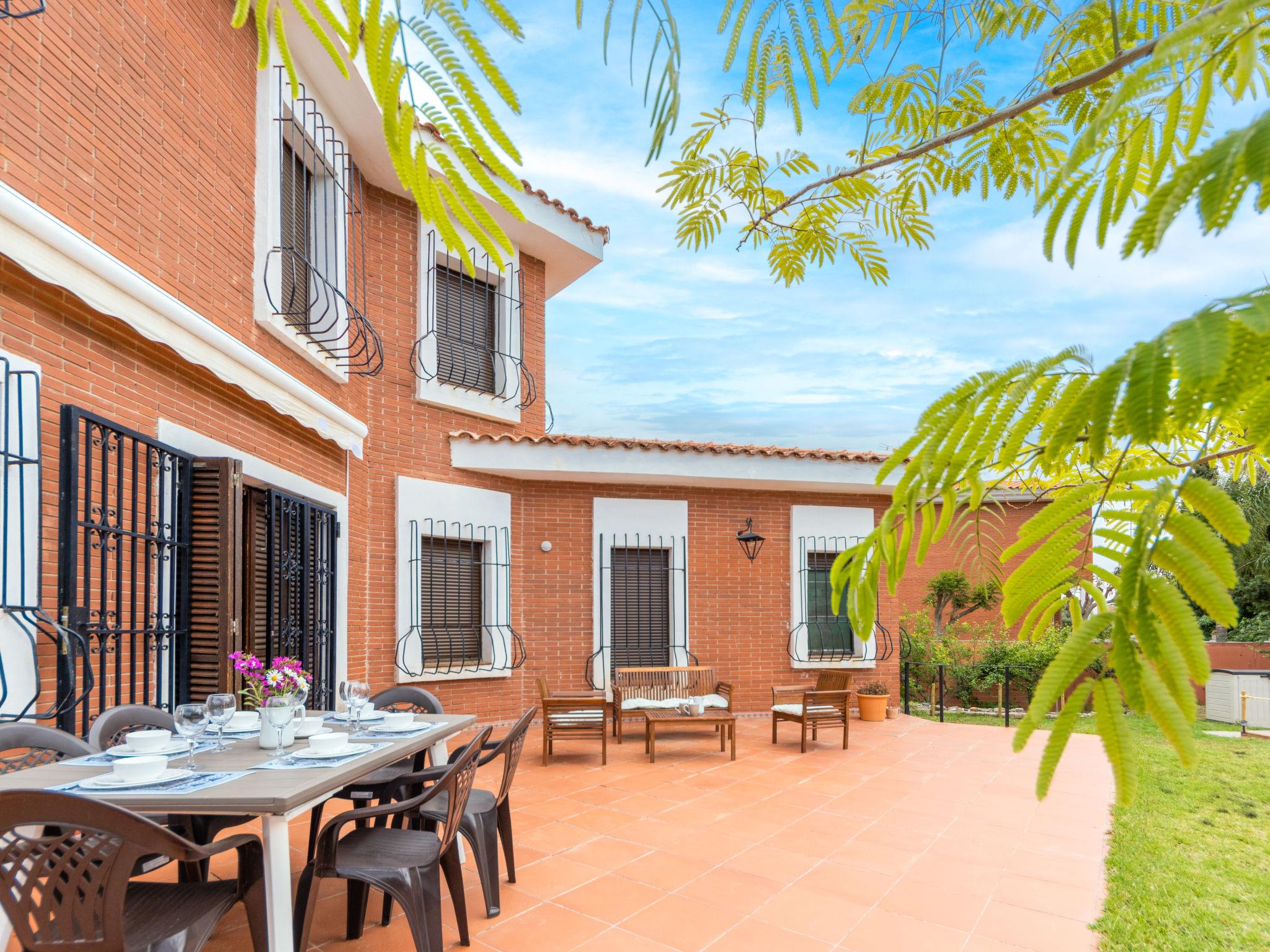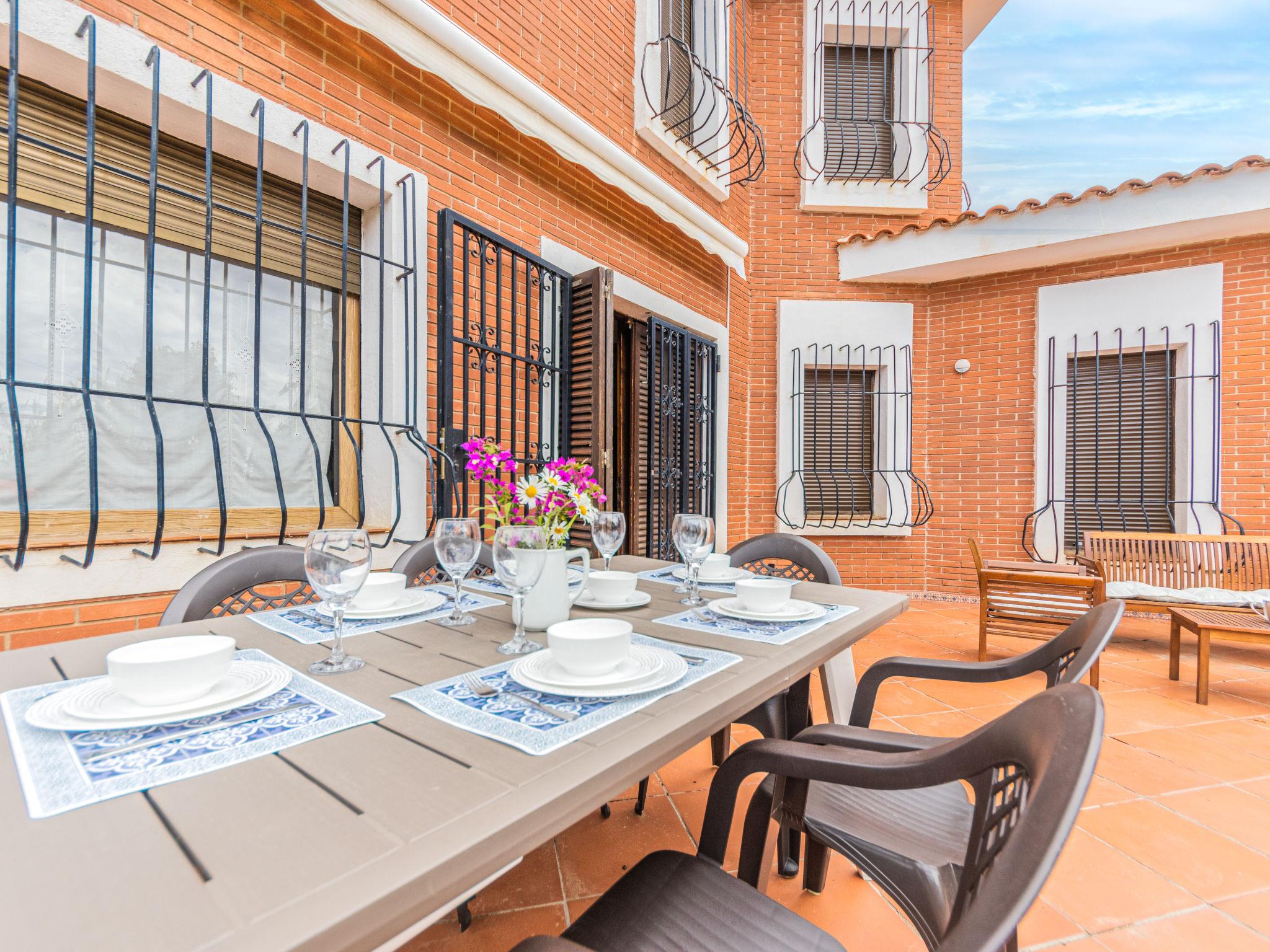 "Casa Alexandra", 5-room house 199 m2. Spacious and bright, practical and rustic furnishings: living/dining room with dining nook, digital TV and flat screen. Exit to the patio. Kitchen (4 hot plates, toaster, kettle, microwave, electric coffee machine). No heating option. Upper floor: 3 rooms, each room with 2 beds. 1 room with 1 french bed. 2 showers/WC. Large patio. Terrace furniture, barbecue, deck chairs (4). View of the garden. Facilities: washing machine, iron. Internet (WiFi, free). Please note: suitable for families. Non-smoking house. HUTT-035393 // Reg. Nr.: ESFCTU00004303100038895400000000000000HUTT-035393-633