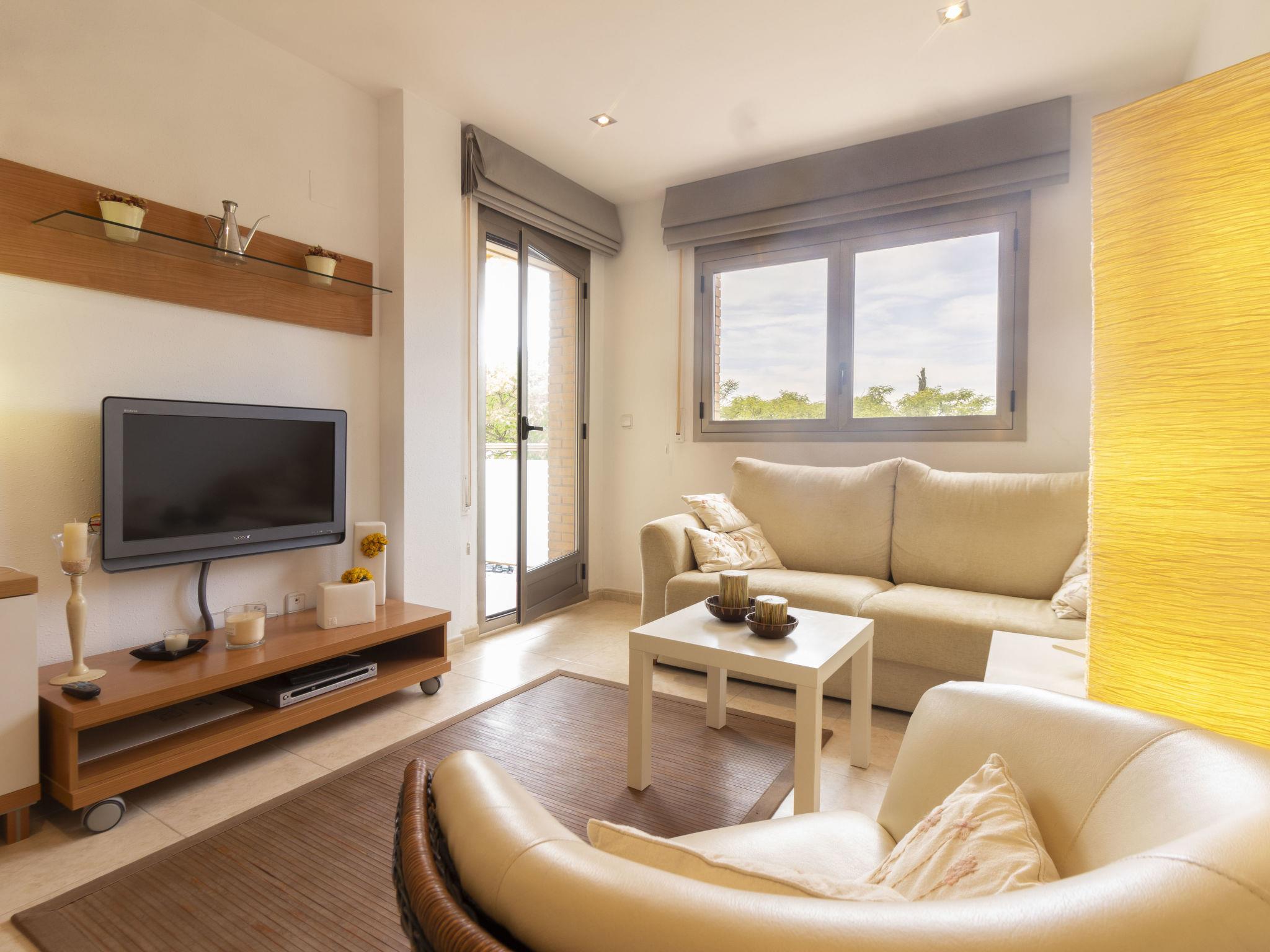 Vilafortuny 4 km from Cambrils puerto: Cosy apartment block "Mas de Clariana", built in 2006. In the district of Vilafortuny, in a quiet position residential area (villas), 1.5 km from the sea, 1.5 km from the beach. For shared use: swimming pool kidney-shaped (depth 90 - 150 cm, seasonal availability: 20.Jun. - 15.Sep.). Outdoor shower, roofed, parking. Grocery, supermarket 400 m, bar 50 m, bakery 400 m, café 50 m, bus stop "castell de vilafortuny" 150 m. Sports harbour 4 km, golf course (18 hole) 9 km. Nearby attractions: Port Aventura / Ferrari Land 10 km, Jumpland 3 km, Aquum Spa 10 km, Aquopolis 10 km. Hiking paths: La Mussara 44 km. Please note: car recommended. Suitable for families. Object suitable for 2 adults + 2 children. The owner does not accept any youth groups. Neighbourhood highly sensitive to noise. Quietness and good behaviour expected.