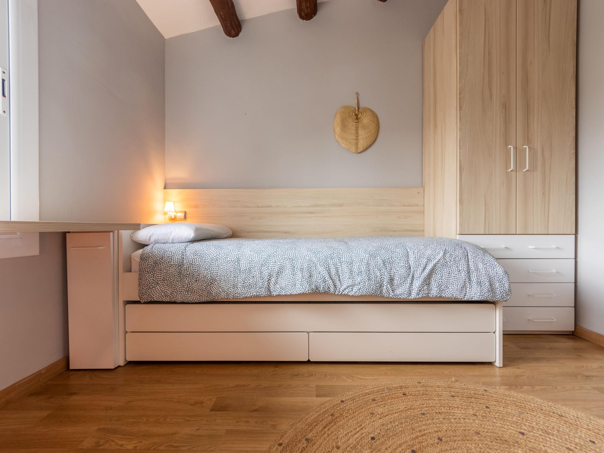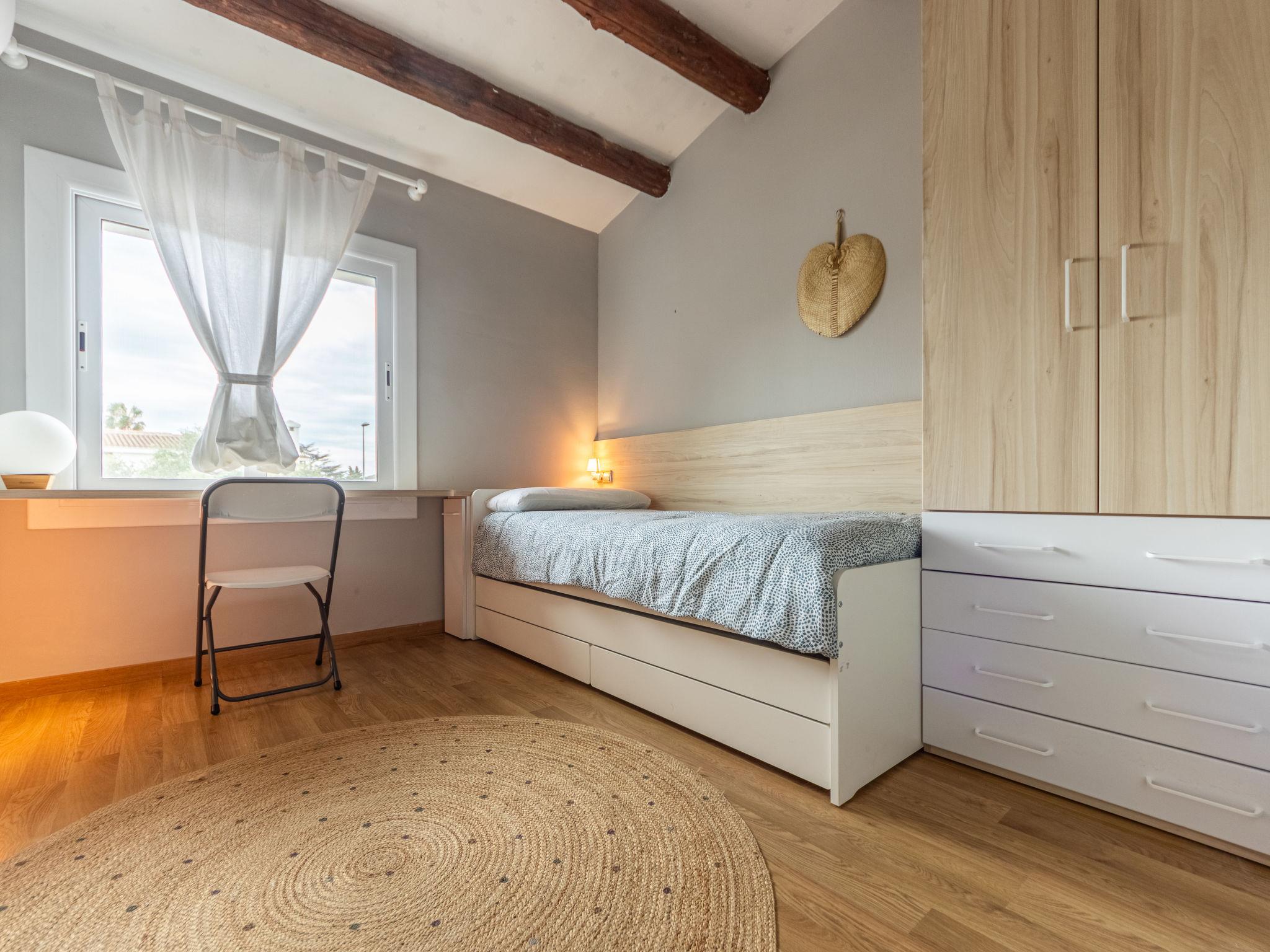 "Villa Jardin", 3-room terraced house 65 m2 on 2 levels. Simple furnishings: living/dining room with 1 sofabed (120 cm, length 240 cm), digital TV and air conditioning. Exit to the garden. Open kitchen (4 hot plates, oven, toaster, kettle, microwave). Upper floor: 1 room with 1 french bed (150 cm, length 190 cm), electric heater and air conditioning. 1 room with 1 pull-out bed (2 x 90 cm, length 190 cm), electric heater and air conditioning. Bath/WC. Heating not available in all rooms. Garden, lawn 35 m2. Terrace furniture, barbecue. Facilities: washing machine, dryer, iron, hair dryer. Internet (WiFi). Garage space n 2. Please note: apartment street side. HUTT-068107 // Reg. Nr.: ESFCTU00004303100011864300000000000000000HUTT-0681078