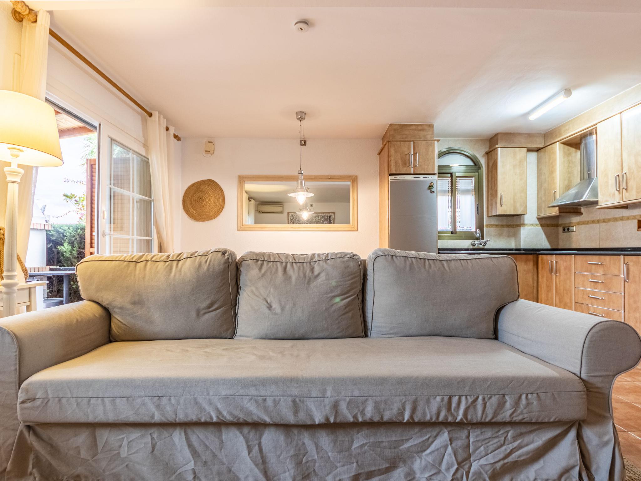 Vilafortuny 3 km from Cambrils: Cosy, simple terraced house, 2 storeys. Outside the resort, 3 km from the centre of Cambrils, 1.5 km from the sea, 1.5 km from the beach, located by a road. For shared use: garden with lawn 500 m2, swimming pool (10 x 15 m, depth 80 - 200 cm, seasonal availability: 15.Jun. - 15.Sep.). Outdoor shower, single garage space n 1 public parking on the road. Supermarket 200 m, restaurant 50 m, bar 50 m, bus stop 100 m, sandy beach 1.5 km. Golf course (18 hole) 1 km. Nearby attractions: Parque temático PORTAVENTURA 5 km, Parque aquático AQUOPOLIS 7 km, Spa AQUUM 7 km, Karting 4 km, Paintball 8 km. Please note: car recommended.
