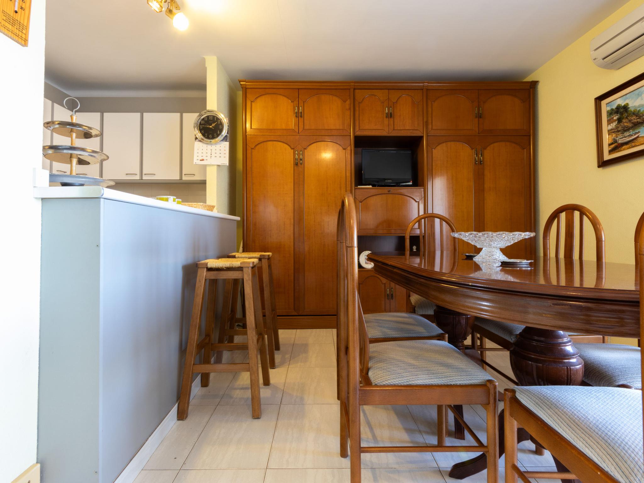 "Tarraco", 3-room apartment 75 m2 on 3rd floor. Practical and comfortable furnishings: living/dining room with digital TV, air conditioning and forced-air heating. Exit to the balcony. 1 room with 1 french bed (135 cm, length 190 cm), bath/bidet/WC, air conditioning and forced-air heating. Exit to the balcony. 1 room with 1 french bed (150 cm, length 190 cm), air conditioning and forced-air heating. Open kitchen (oven, 4 ceramic glass hob hotplates, toaster, kettle, microwave, electric coffee machine) with bar. Bath/bidet/WC. Air-conditioning. No heating option. Terrace. Terrace furniture. View of the sea and the countryside. Facilities: washing machine, iron, hair dryer. Parking space n x. HUTT-003296 // Reg. Nr.: ESFCTU00004303100016640800000000000000HUTT-003296-324