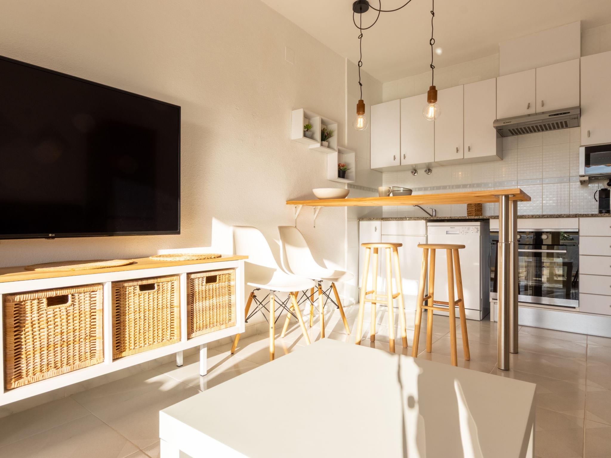 2-room apartment 50 m2. Comfortable and beautiful furnishings: living/dining room with 1 double sofabed (135 cm, length 190 cm), digital TV and air conditioning. Exit to the terrace. 1 room with 1 french bed (150 cm, length 190 cm), fan. Open kitchen (oven, dishwasher, 3 ceramic glass hob hotplates, toaster, kettle, microwave, electric coffee machine, Capsules for coffee machine (Nespresso)) with bar. Bath/WC. Electric heating. Terrace. Terrace furniture. Facilities: washing machine, iron, hair dryer. Parking space n 23. Suitable for families. Maximum 2 pets/ dogs allowed. HUTT-057956-46 // Reg. Nr.: ESFCTU00004303100020382000000000000000HUTT-057956-469