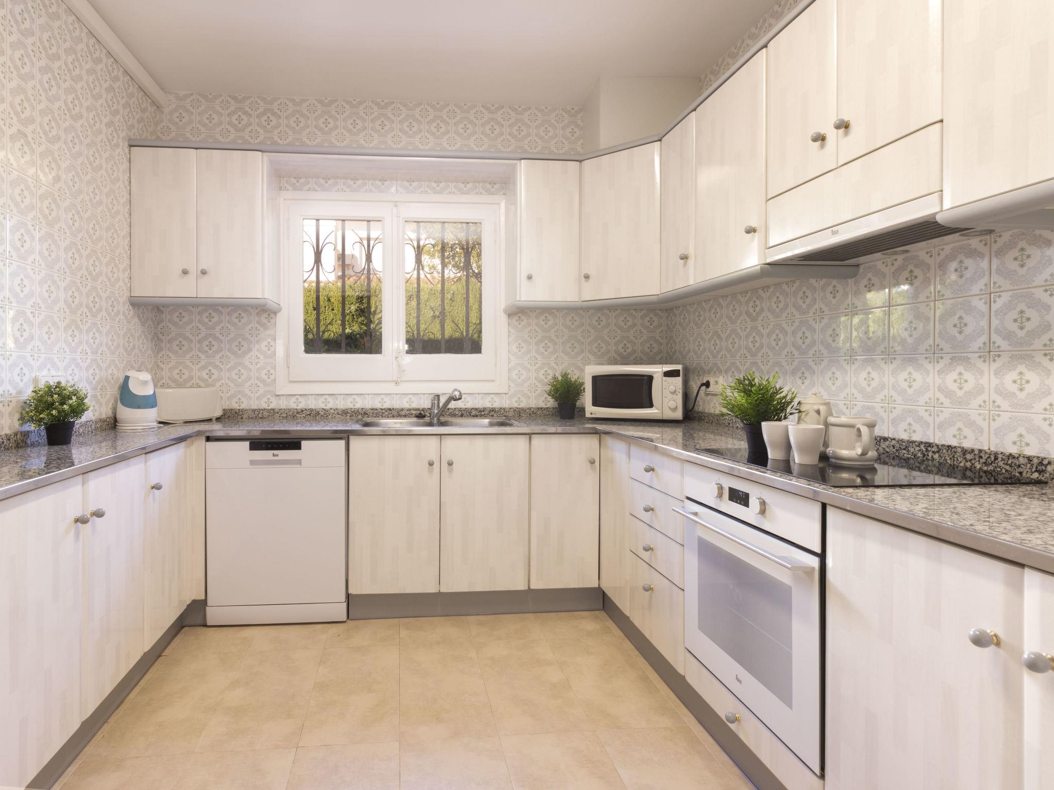 "El Dorada Playa", 4-room house 115 m2, on the ground floor. Comfortable and cosy furnishings: living/dining room with 1 double sofabed and digital TV. Exit to the patio. 3 double bedrooms, each room with 2 beds. Kitchen (oven, dishwasher, 4 ceramic glass hob hotplates, microwave). Bath/bidet/WC, shower/WC. Air-conditioning, boiler (200 litres). No heating option. Large patio. Terrace furniture, barbecue, deck chairs. Facilities: washing machine. Internet (WiFi, free). Parking. Suitable for families. HUTT-014165 // Reg. Nr.: ESFCTU00004303100013318900000000000000000HUTT-0141659