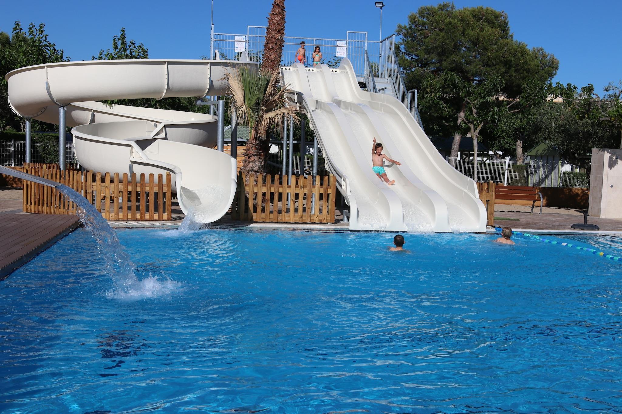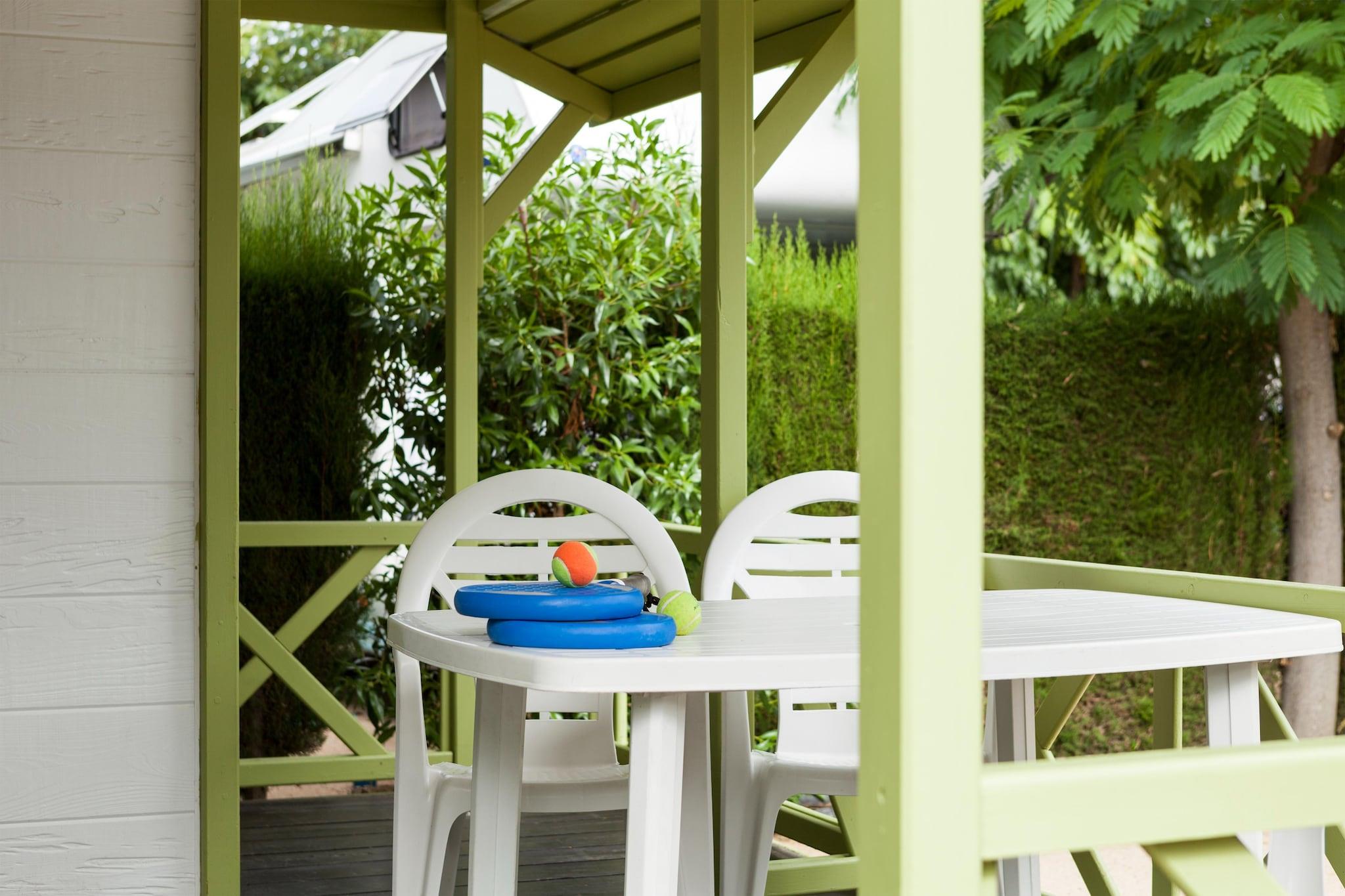 Hyggelig Bungalow Getaway ved kysten Velkommen til Camping Platja Cambrils - din ideelle kystflugt kun 200 meter fra Platja de l'Esquirols gyldne sand! Beliggende i en charmerende, familievenlig feriepark, kan denne bungalow med 2 soveværelser komfortabelt rumme op til 5 gæster. Indenfor finder du et veludstyret åbent køkken, badeværelse med bruser og en lys opholdsstue perfekt til at slappe af efter en dag på stranden. Træd ud på din private, overdækkede terrasse med havemøbler – perfekt til morgenkaffe eller aftensamtaler under stjernerne. Perfekt beliggenhed for sol og udforskning Beliggende kun 1 km fra Cambrils centrum, er du en afslappet spadseretur eller hurtig cykeltur fra pulserende lokal kultur, butikker og attraktioner. Stranden er praktisk talt lige uden for døren og tilbyder nem adgang til solbadning, svømning og familiesjov uden besværet med lange pendlerture. Campingpladsen har også en forfriskende fælles swimmingpool, ideel til både børn og voksne, der ønsker at køle af og slappe af. Foodie-fund og kystnære lækkerier i nærheden Madelskere vil elske de mange restauranter i nærheden, der serverer alt fra traditionelle spanske tapas til friske skaldyrs-paella. Uanset om du nyder at spise ved stranden eller snupper en hurtig bid i byen, tilbyder Cambrils smagsoplevelser til enhver trang. Selvom denne bungalow ikke tillader kæledyr, er den perfekt til familier eller par, der leder efter et rent, fredeligt tilflugtssted ved Middelhavet.