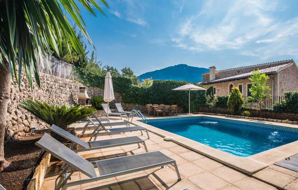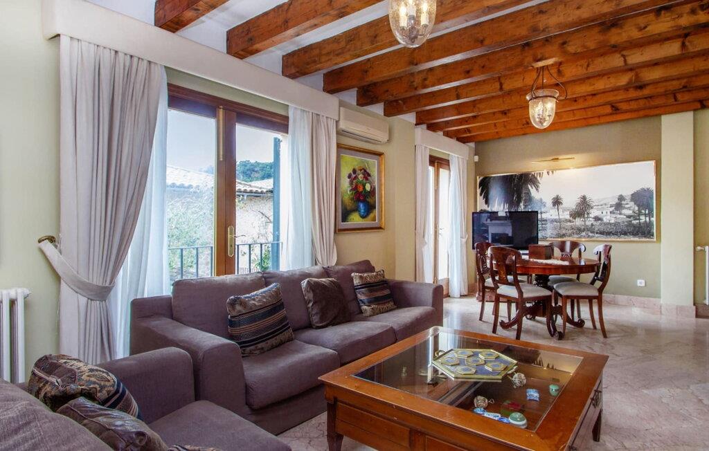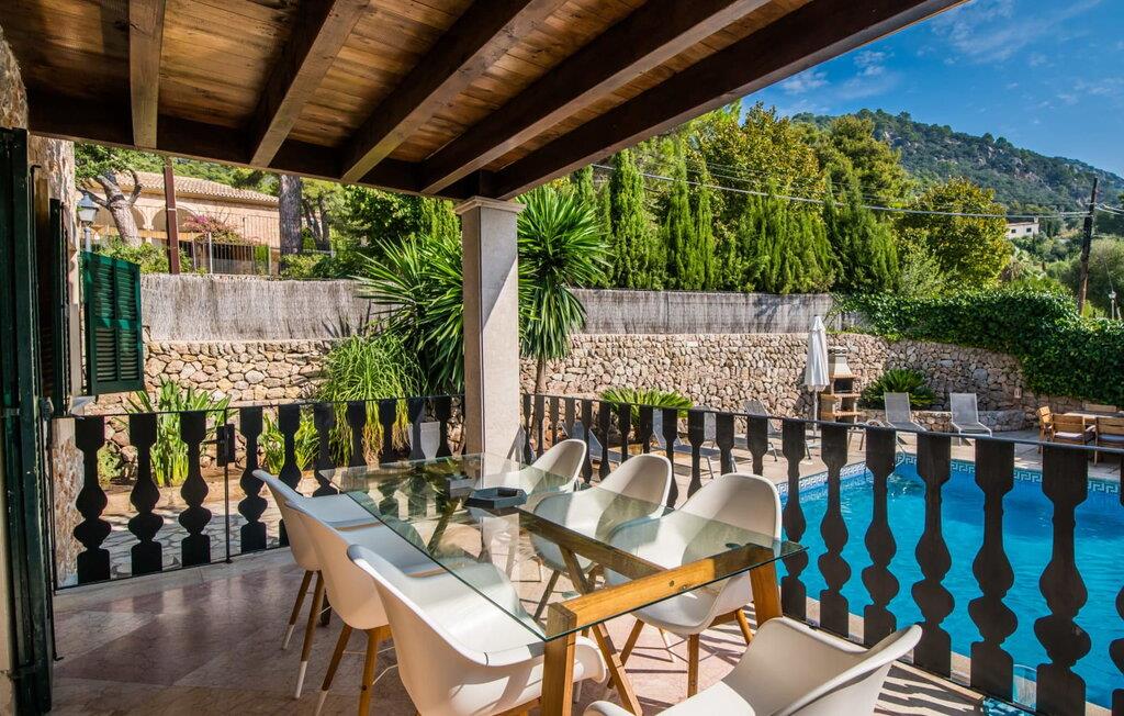 Denne yderst charmerende villa har en malerisk beliggenhed i udkanten af den smukke by Valldemossa på den vestlige del af øen. Det er beliggende på en forhøjet grund på cirka 600 m² og tilbyder enestående panoramaudsigt, som er det enestående træk ved denne bolig. Fra denne ejendom kan I nyde udsigten over Valldemossa og det omkringliggende bjerglandskab i denne region på Mallorca. Villaens udvendige areal byder på en lille have og en 7 m lang pool, som er tilgængelig via en lille trappe og sørger for, at I holder jer behageligt kølig på varme sommerdage. Solterrassen omkring poolen byder på liggestole og et hvidt bord med siddepladser og er perfekt til lange timers afslapning under den mallorcanske sol - tag et øjeblik på at slappe af og nyde en enestående ferie! På husets overdækkede terrasse har I en fremragende udsigt til poolen og børnene, der leger omkring den, og I kan nyde rolige sommeraftener med en lækker grill og en fantastisk udsigt over det berømte Valldemossa kloster og regionens skovklædte bjerglandskab. Ved indgangen til villaen bemærker gæsterne straks den omhyggelige og smagfulde indretning, som skaber en imødekommende atmosfære med møbler af høj kvalitet og masser af klare linjer og former. Rummelige opholdsområder med høje, klassiske synlige bjælkelofter og elegante gulvfliser bidrager til den harmoniske overordnede atmosfære og kombinerer moderne accenter med traditionel hygge. Husets øverste etage byder på et soveværelse med en dobbeltseng (2 x 2 m) og privat badeværelse, et soveværelse med to enkeltsenge og en terrasse, et soveværelse med en dobbeltseng (1,35 x 1,9 m) og en terrasse, en enkeltværelse med en enkeltseng (0,8 x 1,8 m) og to badeværelser med bruser og toilet. I stueplan er der endnu et soveværelse med dobbeltseng (1,5 x 2 m), badeværelse med badekar, bruser og toilet samt køkken med keramisk kogeplade, ovn, kombineret køle/fryseskab, opvaskemaskine, mikroovn, elkedel og kaffemaskine, brødrister og indendørs spiseplads til fælles måltider. For at sikre, at hverdagen på ferien forløber så smidigt som muligt, har I adgang til vaskemaskine, tørretumbler, strygebræt og strygejern. I den hyggelige stue med ekstra spiseplads, luksuriøs sofa og pejs, vil I med sikkerhed finde jeres personlige yndlingssted til afslappende timer. Satellit-tv, cd- og dvd-afspillere, en PlayStation 2 og højhastighedsinternet sikrer, at I har al den underholdning, I har brug for. Selve ejendommen ligger kun omkring 300 m fra Valldemossas gamle bydel, så barer, restauranter og dagligdags indkøb kan nås på få minutter til fods. Byens ugentlige markeder finder sted om søndagen. Betragtet som den smukkeste landsby i hele Spanien, byder Valldemossa på en række charmerende små gader, kunstnerstudier og caféer. Byens centrum er domineret af en imponerende kuppelkirke. Fra huset har I en vidunderlig udsigt over dette smukke og unikke stykke arkitektur. To badebugter kan også nås på få minutter i bil fra villaen: Den første er Cala Deiá med krystalklart vand og en stærkt anbefalet fiskerestaurant lige ved stranden. Den anden er den mindre stenstrand i Port de Valldemossa. Puerto de Sóller, omkring 12 km væk, byder på den nærmeste sandstrand. Den smagfulde villa "Camila" er et stort hus lavet af natursten over den lille kunstnerby Valldemossa og byder på en majestætisk udsigt over selve landsbyen og de omkringliggende bjerge. Bygningen ligger på en 600 m² stor grund og er smukt omgivet af en tæt bestand af træer. Valldemossa ligger blot et par minutters gang væk, hvis I vil shoppe, og den lille bugt Cala Deía med krystalklart vand og nærliggende fiskerestaurant ligger blot yderligere 8 km væk.