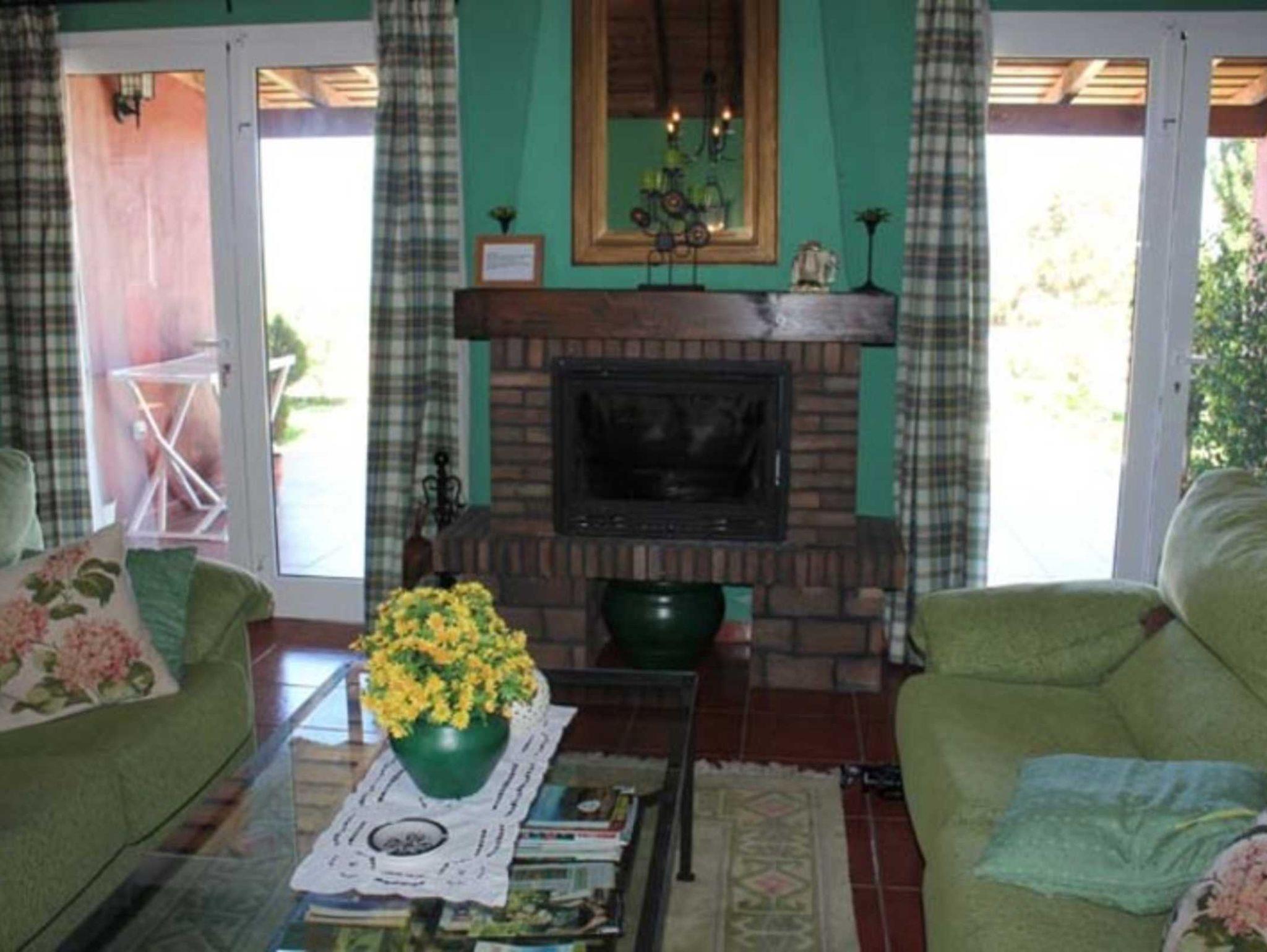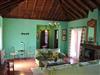 Im großzügigen Wohnraum mit kanarischem Holzgiebeldach befindet sich ein Kamin. 2 Sofas laden zu einem gemütlichen Abend vor dem Fernseher oder am Kamin ein. Auch eine kleine Leseecke wurde eingerichtet.