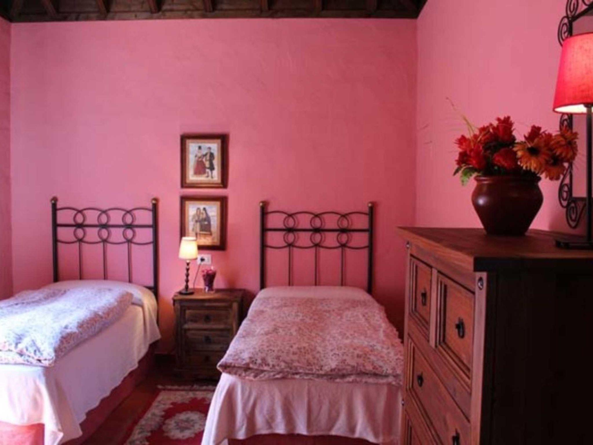 Cerca Roja verfügt über 3 Schlafzimmer. Alle Räume haben ihr eigenes Farbkonzept und daher hat jeder Raum sein eigenes Flair. Möbel im rustikalen kanarischen Stil und passende Wanddekoration runden das Gesamtbild ab. Das apricot-farbene Schlafzimmer mit Doppelbett verfügt über ein en-suite Bad mit Badewanne/Dusche. Die anderen beiden Schlafzimmer verfügen jeweils über 2 Einzelbetten und sind in rosa und blau gehalten.