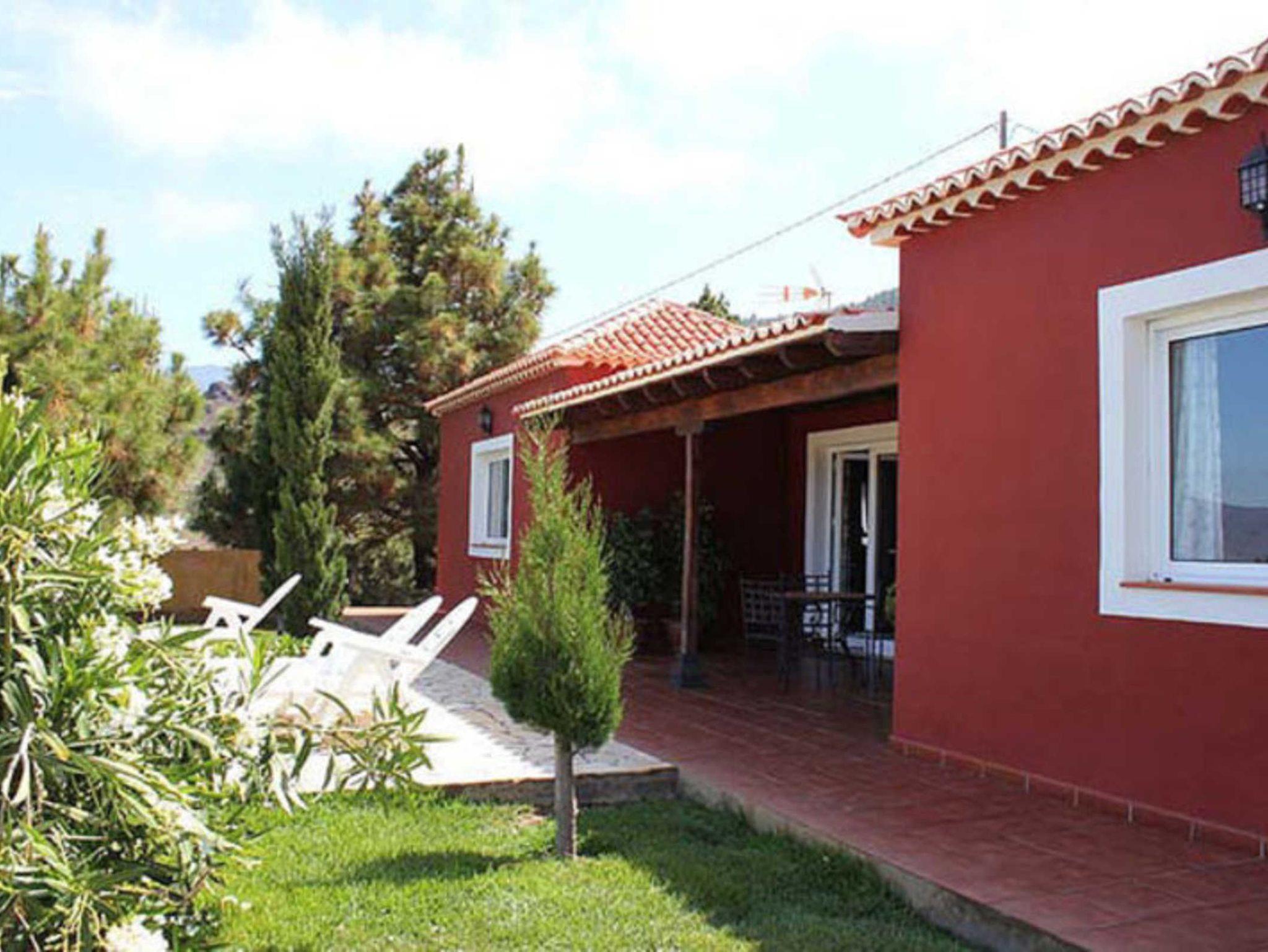 Cerca Roja liegt zusammen mit Casa Cerca Azul auf der unteren Ebene und hat daher von der Terrasse aus einen Blick aufs Meer und seitlich auf das Aridanetal und Los Llanos. Hinter dem Haus blickt man auf ein herrliches Bergpanorama.