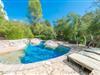 Ejendommens ydre er simpelthen fortryllende. Swimmingpoolen - delvist hugget ind i den naturlige klippe - er et af dens mest betagende træk: et roligt hjørne, der inviterer dig til at slappe af og koble fra. Med en størrelse på 6 x 5 meter og en maksimal dybde på 1,80 meter tilbyder den en forfriskende dukkert i hjertet af naturen. En rummelig, møbleret terrasse giver de ideelle rammer for udendørs måltider eller stille læsestunder i træernes skygge. En elektrisk grill er tilgængelig (da brug af ild er forbudt i sommermånederne). Ved ankomst vil gæsterne blive mødt af Miquelet, et venligt æsel, der bor på den tilstødende grund. Takket være sin afsondrede beliggenhed og det omkringliggende skovområde garanterer ejendommen fuldstændig privatliv - det perfekte sted for en autentisk og rolig landlig flugt. Indenfor har huset bevaret den hyggelige karakter af traditionelle mallorcanske landhuse med stenvægge, synlige træbjælker og varm, funktionel indretning. Den indbydende stue har satellit-tv og centralvarme, hvilket gør det til et komfortabelt valg selv i de køligere måneder. Det åbne køkken, udstyret med keramisk kogeplade, passer perfekt ind i spiseområdet og indeholder alt, hvad du behøver for at tilberede hjemmelavede måltider. Der er to soveværelser – et med en dobbeltseng og det andet med to enkeltsenge – begge med loftsventilatorer og varme. Badeværelset har bruser, og alle rum er designet til at tilbyde komfort i enkle, naturlige omgivelser. For ekstra bekvemmelighed tilbyder huset en vaskemaskine, strygejern og strygebræt samt en barneseng og højstol til familier, der rejser med en baby. Kæledyr er ikke tilladt. Afholdelse af arrangementer er forbudt. Der er udendørs parkering til 2 biler.