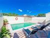 Stue, spisestue, Køkken(komfur, kaffemaskine, ovn), soveværelse(2x enkeltseng), soveværelse(enkeltseng, enkeltseng), soveværelse(enkeltseng, enkeltseng), soveværelse(enkeltseng, enkeltseng), badeværelse, badeværelse, mikrobølgeovn, opvaskemaskine , køle-fryseskab, bruser, bruser, håndvask, håndvask, toilet, toilet, have, havemøbler, 8x solstole, grill, Parasol, swimmingpool, barneseng, barnestol