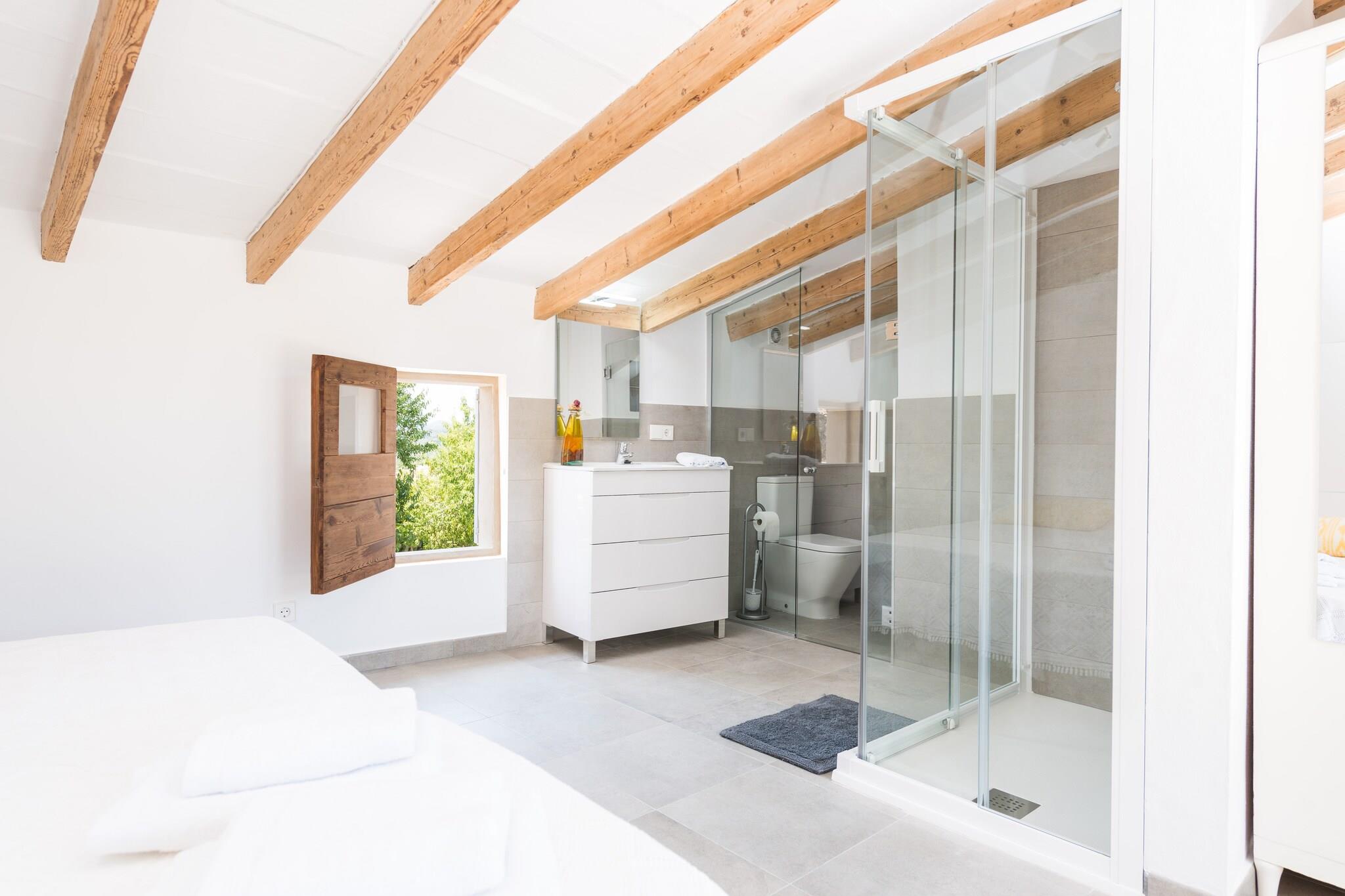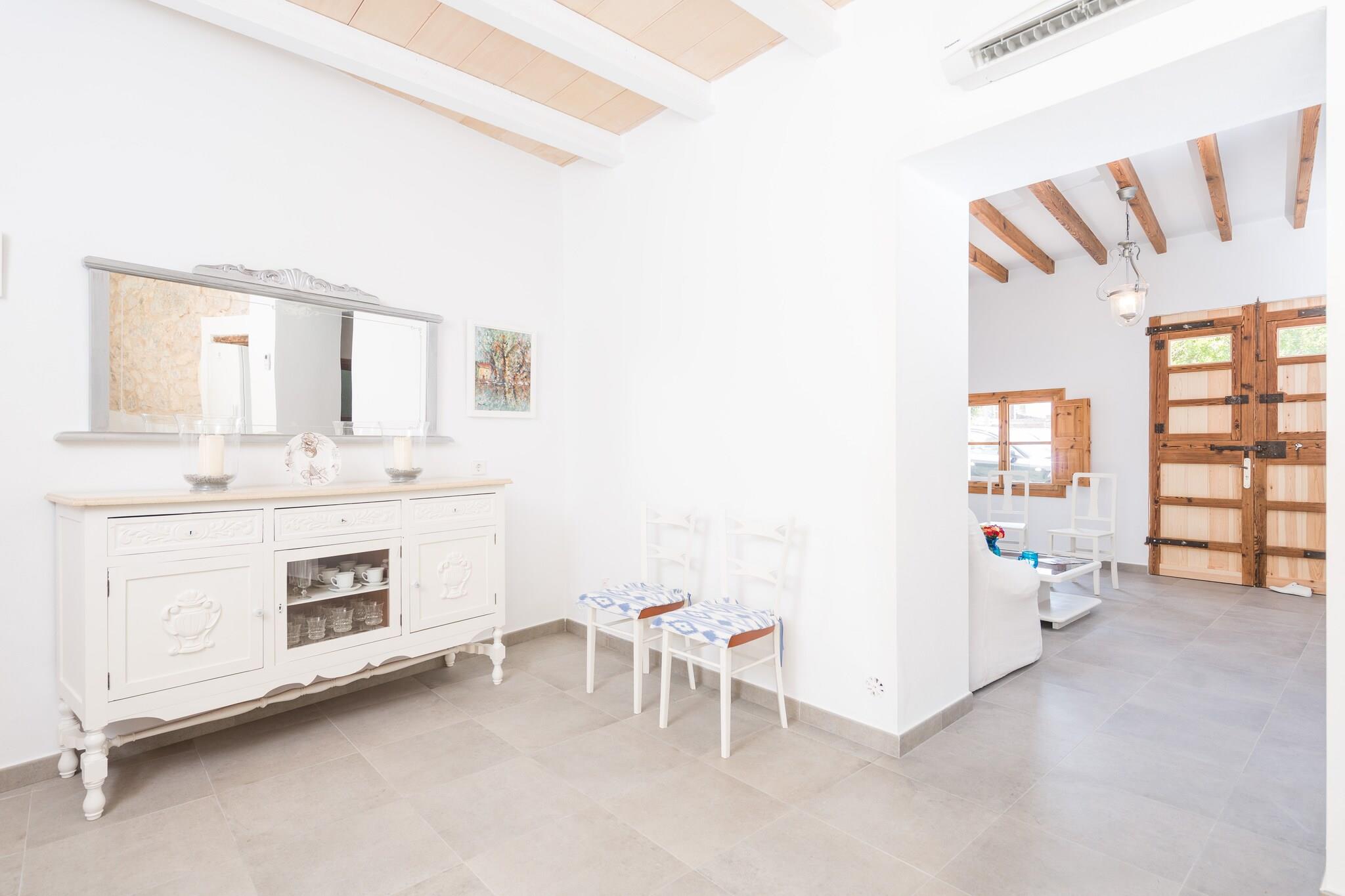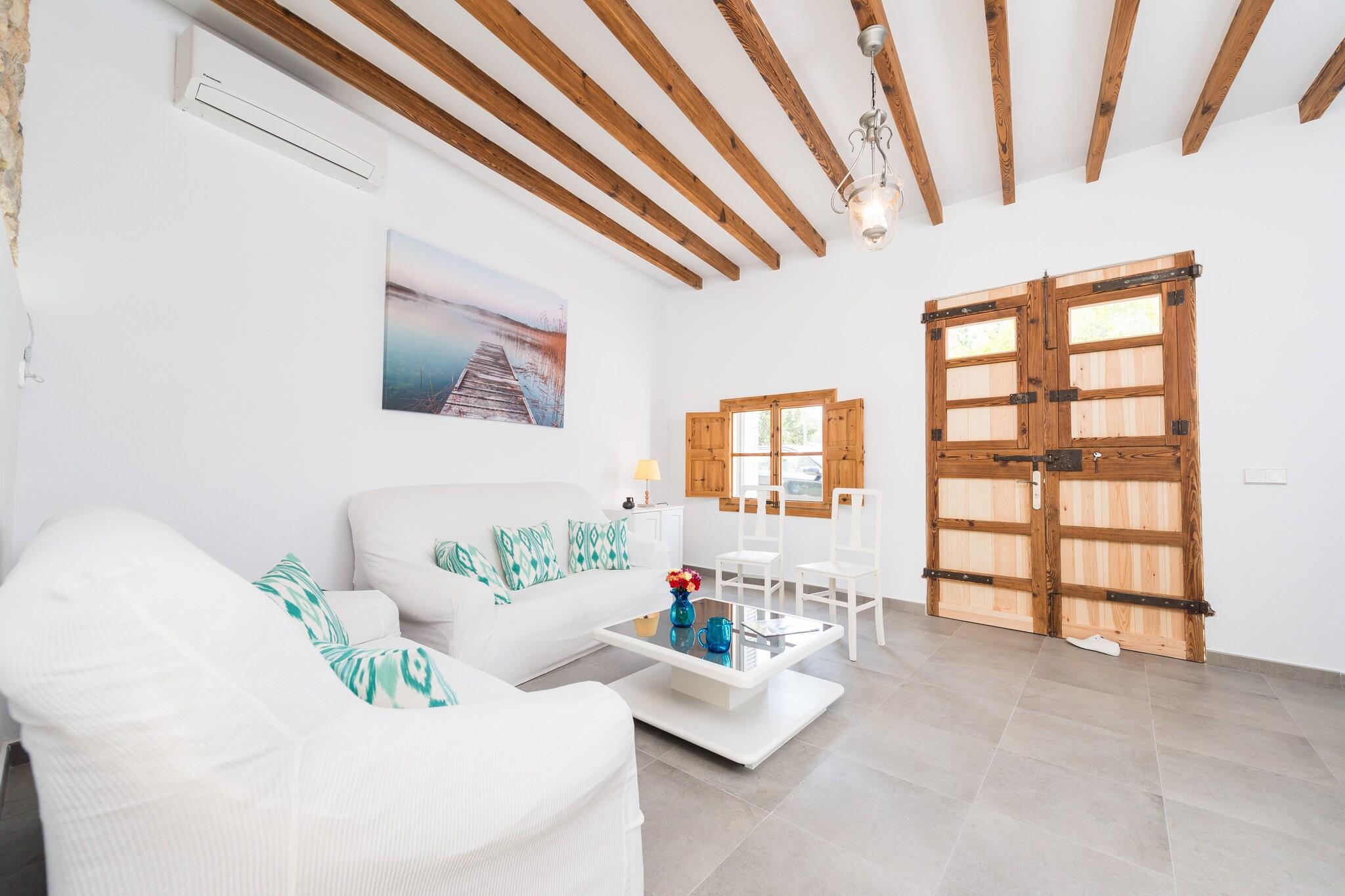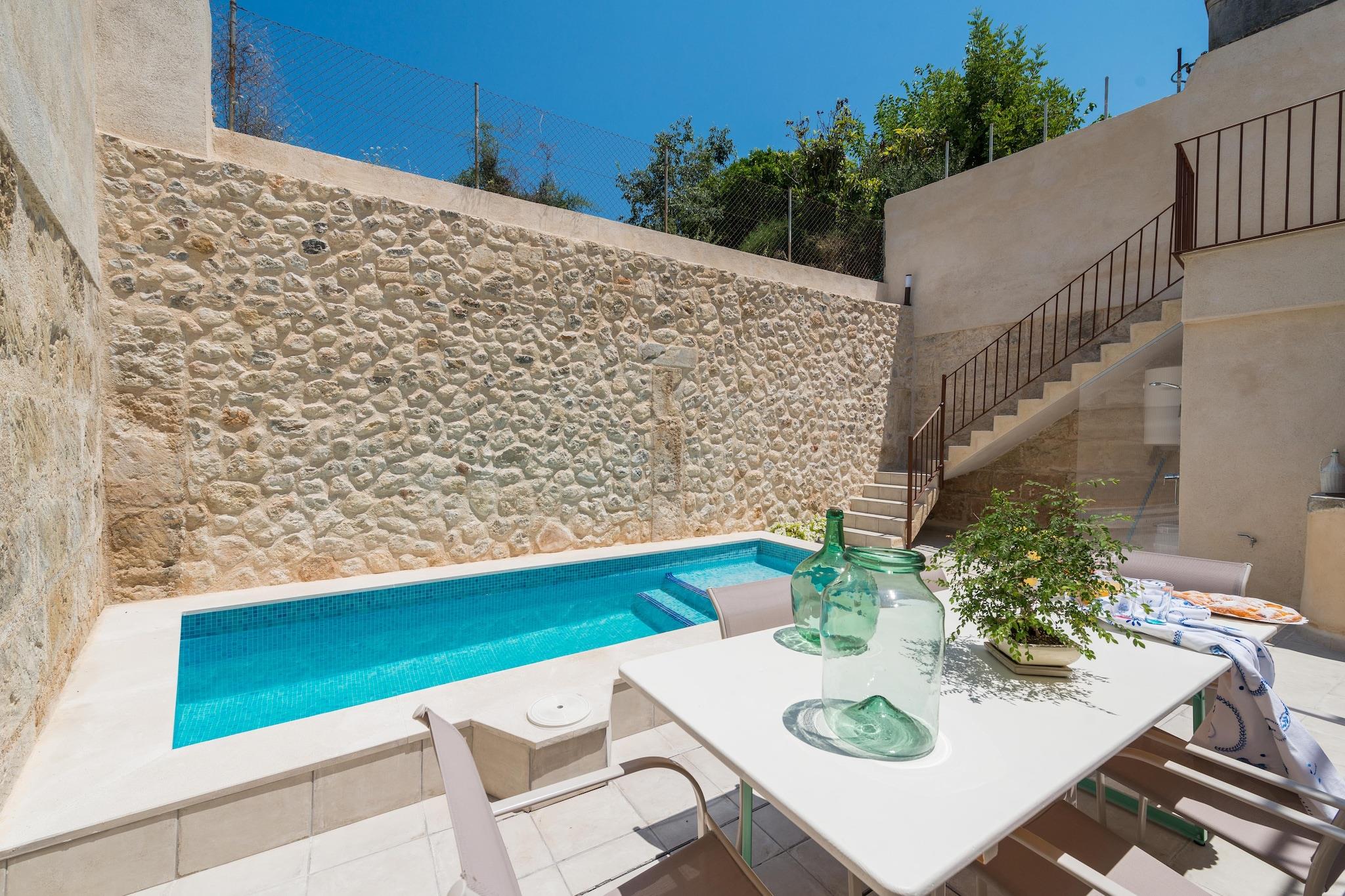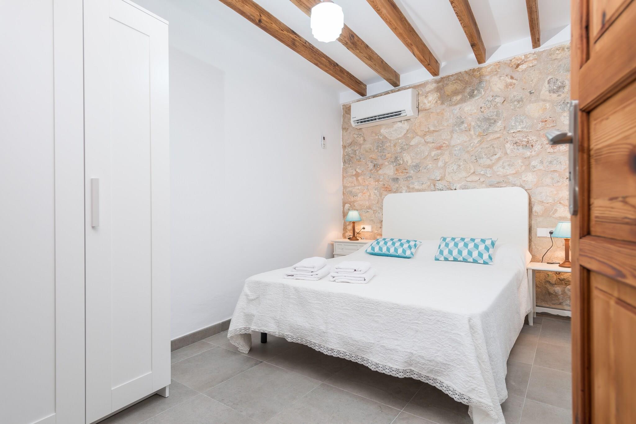 Dit prachtige herenhuis verrast met een met stenen omzoomde patio waar de hoofdrolspeler van het huis is: een klein maar volledig privé zoutzwembad. Het heeft een afmeting van 5m x 2m en een diepte van 0,3m tot 1,5m en is omgeven door een terras waar u kunt barbecueën. Een buitendouche is ideaal om af en toe af te koelen. Het terras op de eerste verdieping is met vier hangmatten de favoriete plek van alle zonaanbidders. Het perceel is omheind en omdat het huis in de stad ligt, zijn er buren naast de deur. Deze accommodatie biedt een tweede huis van 120m2 en twee verdiepingen en is begin 2017 volledig gerenoveerd. De inrichting van de kamers is zeer mediterraan, zonder details van de Mallorcaanse structuur te vergeten, zoals houten balken of natuurstenen muren. De mooie woonkamer nodigt uit om een ??film te kijken op satelliettelevisie (kanalen in het Duits en Spaans). Er is hier airconditioning zodat u het in de zomer niet warm krijgt. Het eetgedeelte met uitzicht op het zwembad staat in open verbinding met de goed uitgeruste keuken, inclusief een keramische kookplaat, vaatwasser, keukengerei, wasmachine, strijkijzer en strijkplank. De slaapkamer met een tweepersoonsbed bevindt zich op de begane grond en heeft geen raam, maar is zeer comfortabel. Een badkamer met douche bedient de begane grond. Boven vinden we nog twee slaapkamers, beide met twee eenpersoonsbedden en toegang tot het terras. Eén heeft een en-suite badkamer met douche. Als u met een baby reist, maken wij een wieg en een kinderstoel klaar. Alle slaapkamers zijn voorzien van airconditioning. Het huis ligt in het centrum van Campanet en is ideaal voor gasten die willen genieten van de lokale cultuur, de natuur en de charme van een stad. Op dinsdag kun je naar het plein gaan en over de markt lopen, lokale producten kopen, wat tapas en een biertje drinken. In het centrum van het dorp zijn Mallorcaanse restaurants, cafés, een supermarkt en een bank. Omdat het naast de bergen ligt, kunt u wandelen en fietsen. Meer diensten zijn te vinden in Sa Pobla of aan de kust, bijvoorbeeld in Can Picafort of Puerto de Alcúdia - tegelijkertijd twee fantastische plekken om een ??dagje aan het strand door te brengen. Voor eventuele extra kosten kunt u contact opnemen met de adverteerder. Wij accepteren geen huisdieren. Het vieren van evenementen is niet toegestaan. Afstanden Strand: 17,2 km - Port d'Alcúdia Luchthaven: 41,4 km - Aeroport Son Sant Joan Golfbaan: 12,9 km - Golf Pollença Stad: 0 km - Campanet Treinstation: 7,8 km - station Sa Pobla Bushalte: 0,75 km - Carrer de Llorenç Riber, Campanet Veerboot: 21,4 km - Port d'Alcúdia Ziekenhuis: 9 km - Comarcal d'Inca-ziekenhuis Toeristenvergunning: ETV/10462 Op de Balearen geldt een toeristenbelasting, Ecotasa genaamd, die door de gast moet worden betaald. Het bedrag varieert tussen EURO 0,55 / per nacht per persoon in het laagseizoen en EURO 2,2 / per nacht per persoon in het hoogseizoen. Vanaf de negende dag wordt het met de helft verminderd. Personen onder de 16 jaar uitgesloten.