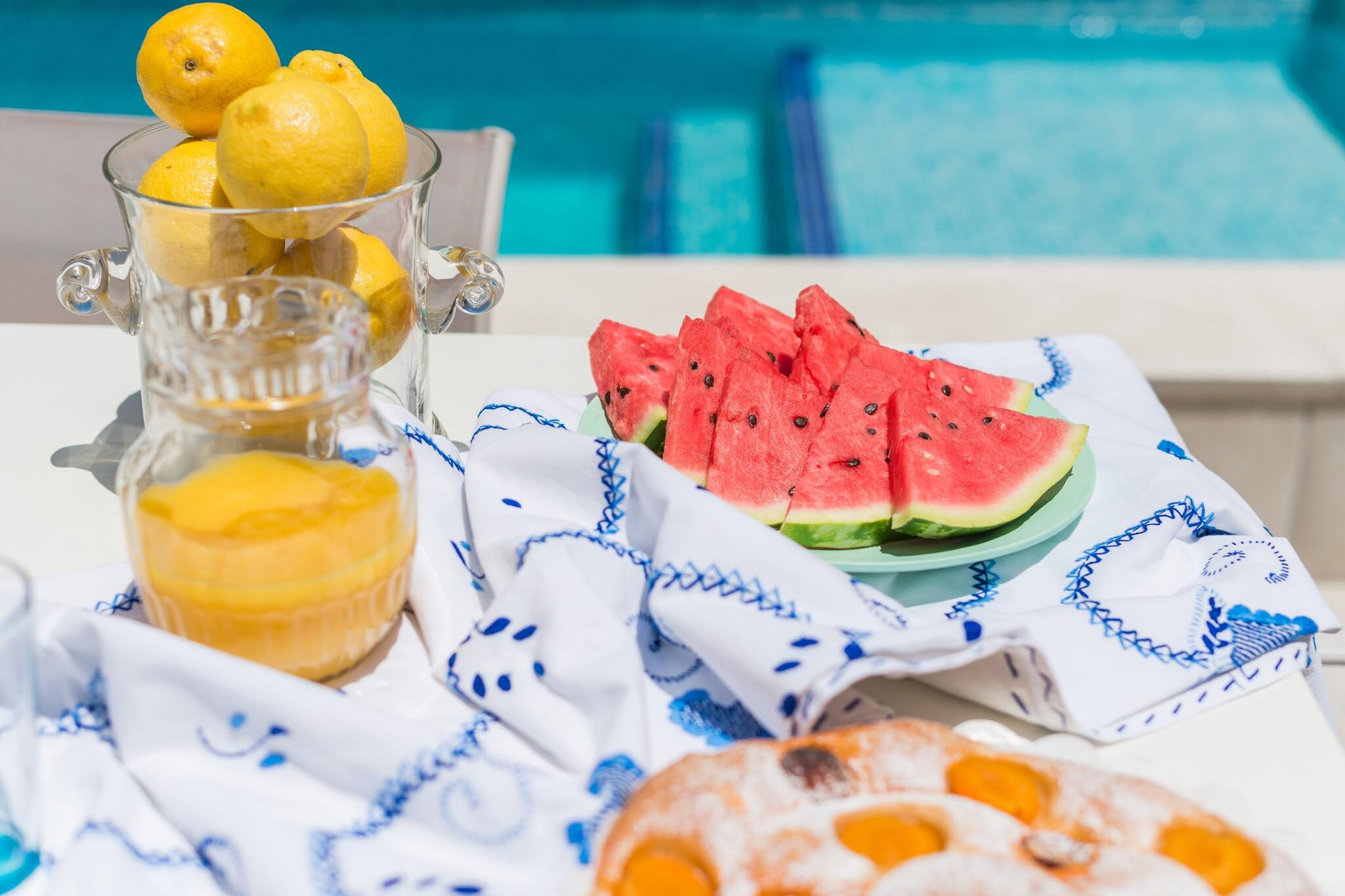 Stue, Køkken(komfur, kaffemaskine, ovn), soveværelse(2x enkeltseng), soveværelse(enkeltseng, enkeltseng), soveværelse(dobbeltseng), badeværelse, badeværelse, mikrobølgeovn, opvaskemaskine , køle-fryseskab, bruser, bruser, håndvask, håndvask, toilet, toilet, klimaanlæg, klimaanlæg, klimaanlæg, grill, swimmingpool, barneseng, barnestol