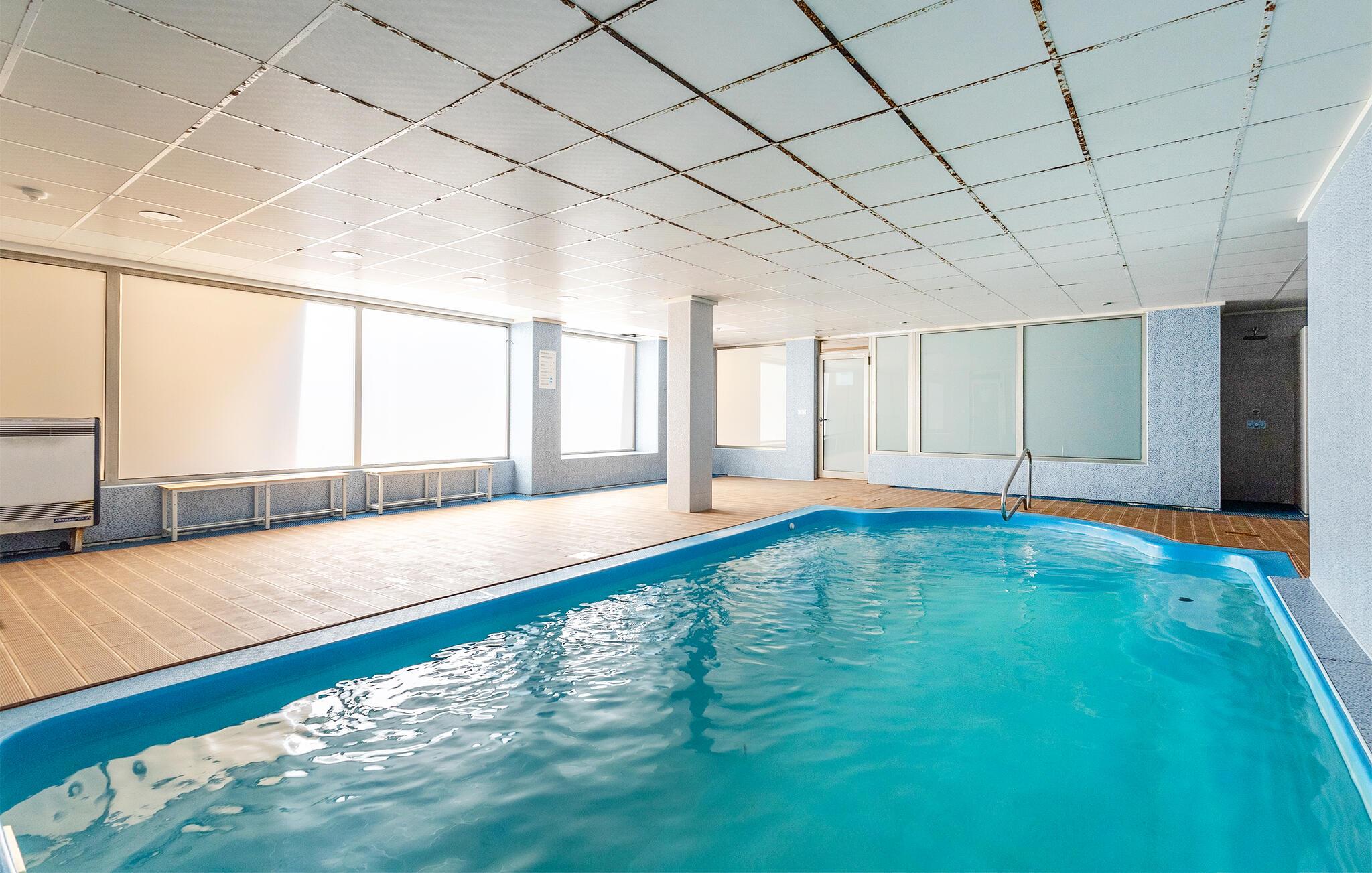 Nyd solen, så meget I vil på terrassen. Afbryd blot ferienlæsning for at svømme et par baner i den fælles pool.