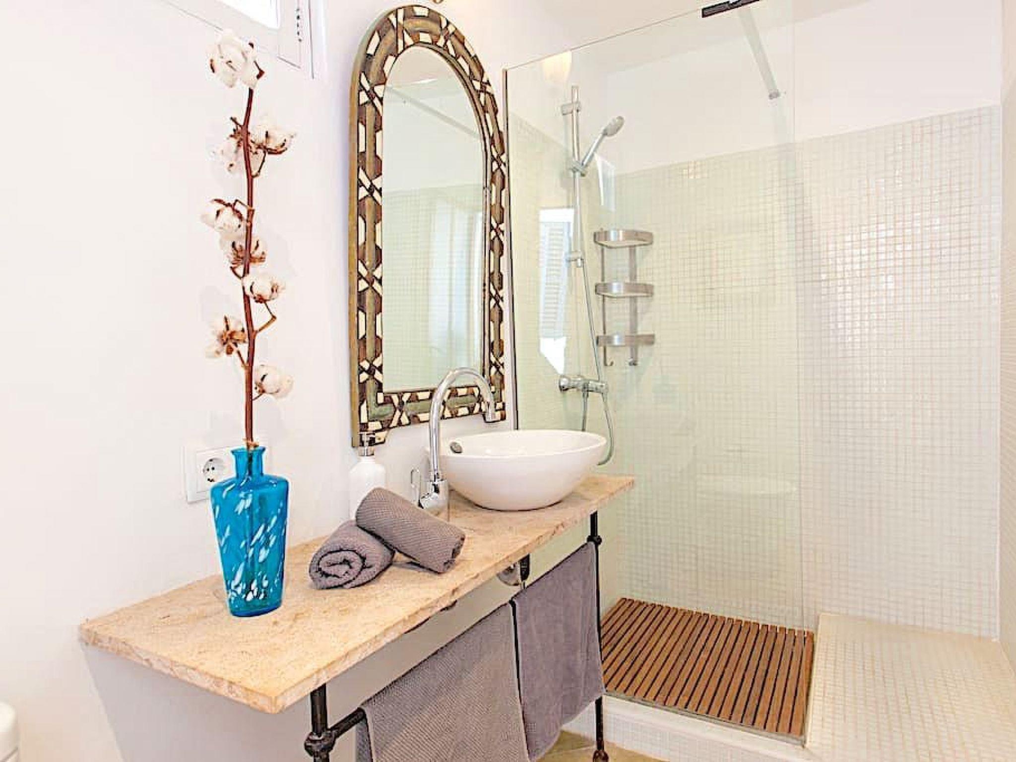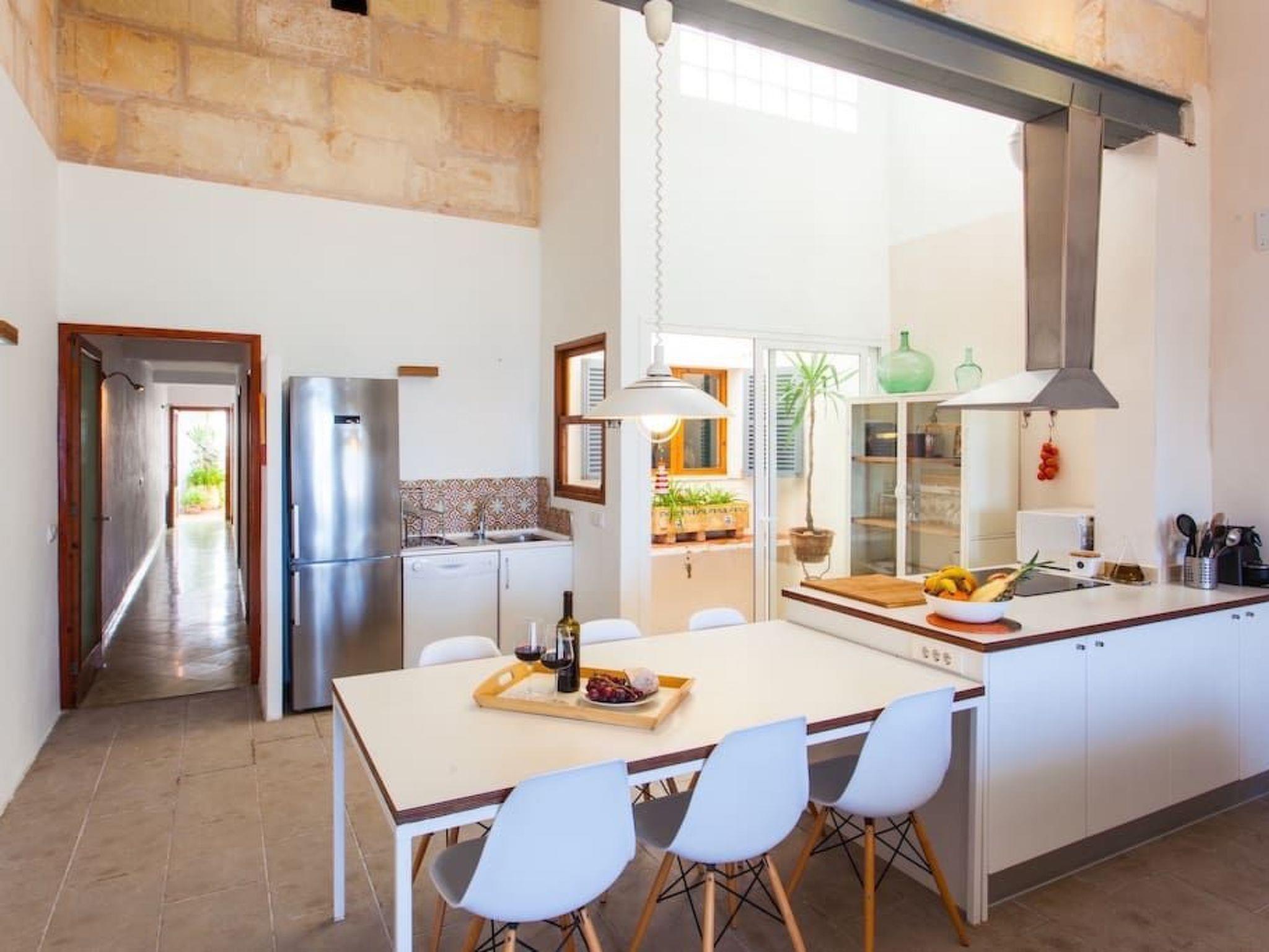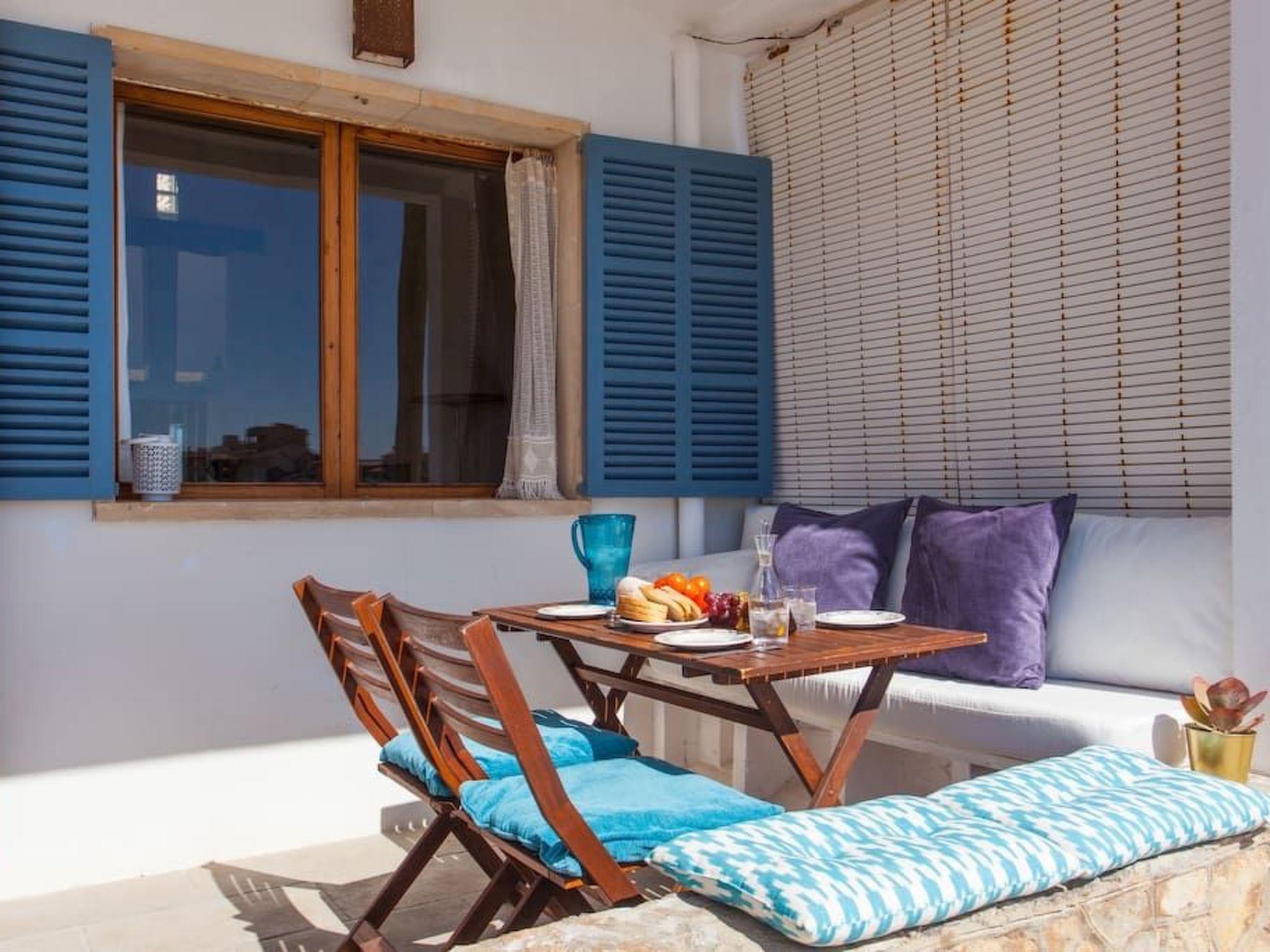 The restored Mallorcan fisherman's house Casa Gaviota is located directly on the promenade and just a few metres from the small sandy beach of Cala Galiota and offers space for six people and has been completely renovated to create a charming holiday home with a stylish atmosphere. At the front is a typical fisherman's house terrace with a barbecue and dining area. From here you can enjoy the wonderful view of the Colonia Sant Jordi lighthouse and the small sandy beach. The interior of the house is bright and friendly and has numerous amenities. There is a fireplace in the living room for the low season and the bedrooms are also heated.The location of the house is perfect if you want to enjoy the advantages of Colonia Sant Jordi. Numerous restaurants are within easy walking distance - we particularly recommend Laos, Cassai Beach and Sal de Coco directly in the harbour.Sports: numerous water sports such as kayaking, water skiing and sailing are possible. The nearest golf course is only 30 minutes away by car.