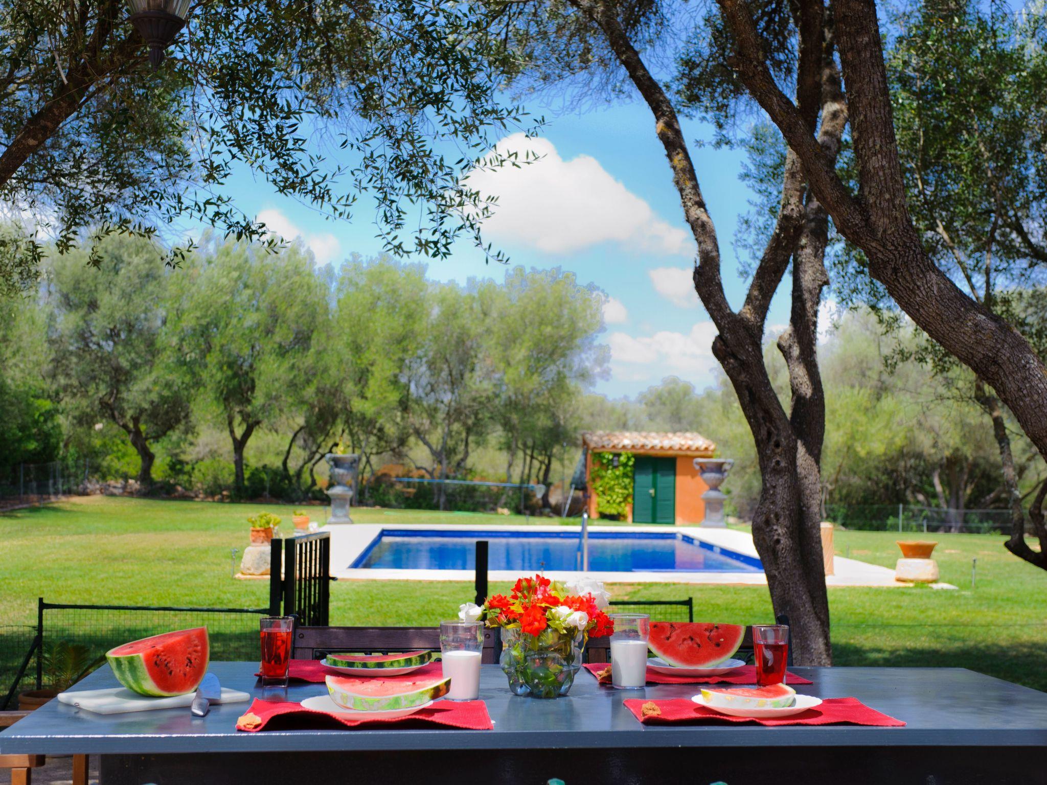 The natural stone holiday home "Gallicant" is located in the south of Mallorca, between the villages of Campos and Santanyí. It is surrounded by a very large plot of land (20 ha) and 1 km from the road, which promises peace and quiet. The beautiful sandy beach of Es Trenc and the beautiful beaches of the Cala Mondragó nature park can be reached by car in just 15 minutes. The capital Palma is only 30 minutes away. Santanyi, with its charming weekly market (Saturdays), is just 10 minutes away and Cala D'Or, the well-known tourist resort, can be reached in 15 minutes.