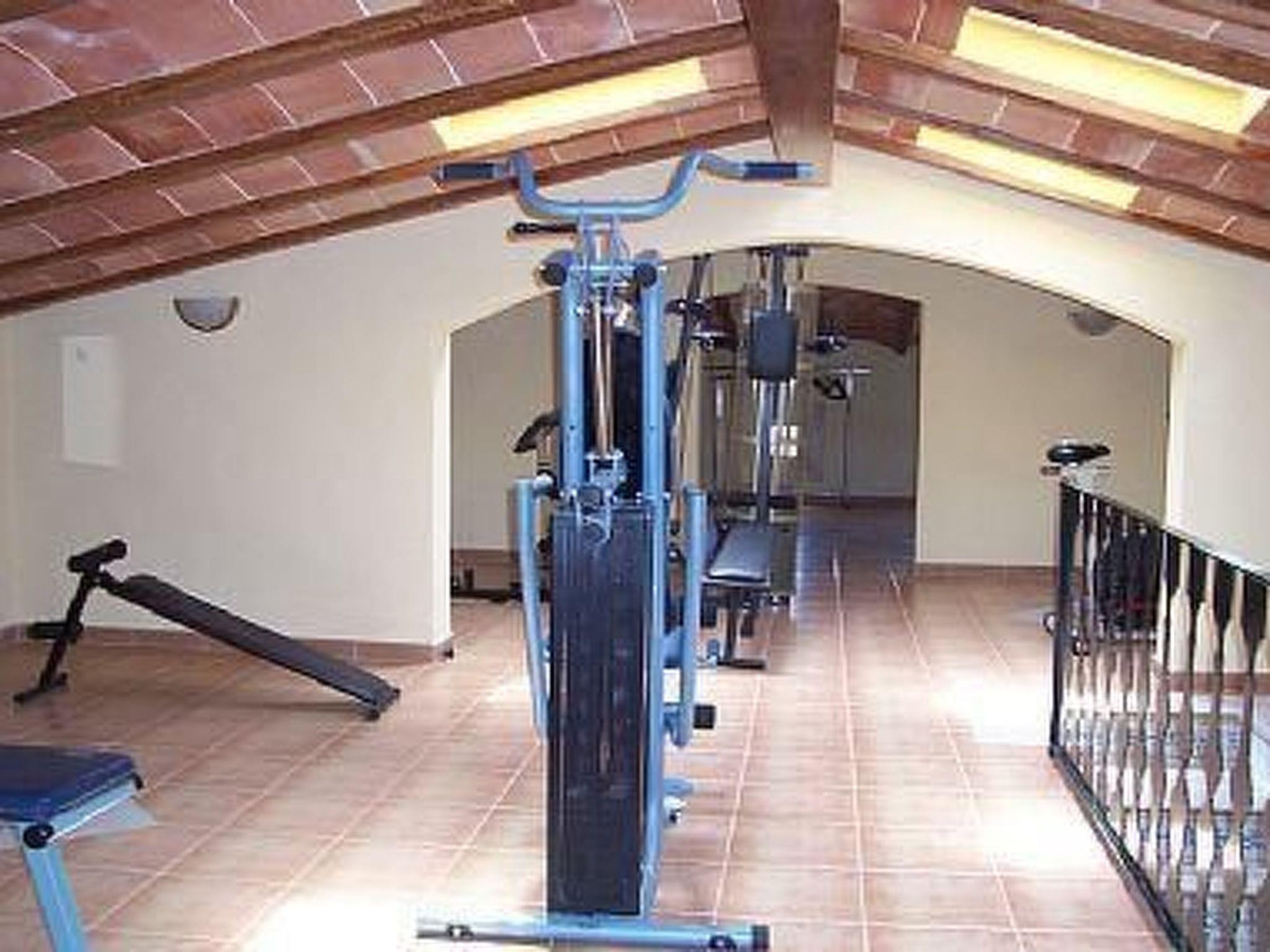 On the first floor there is a gym and two quadruple bedrooms (one with a double bed and two single beds, the other with three single beds and a large sofa bed) with shared bathroom with shower.