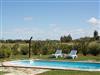 From the dining room/kitchen or the bedroom there is access to the sunny patio (78m²) with a table for six and a fig tree for shade, also from the kitchen/dining room there is access to the front terrace (62m²) with a dining table for six under a canopy and an uncovered part with a barbecue and six sun loungers. In front of this is the lawned area with pool (3.25 x 7.50m) and a shower. From the kitchen there is access to the large laundry/storage room with washing machine and from there to the covered car parking area and the entrance to the finca.