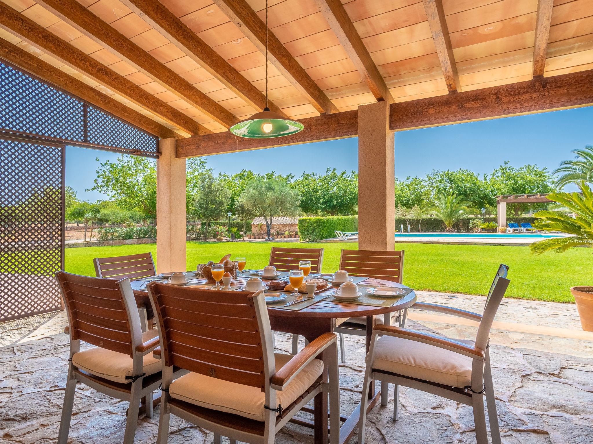 "Son Viquet", 5-room house 200 m2 on 2 levels. Beautiful furnishings: living room with open-hearth fireplace (only for decoration), satellite TV, digital TV and radio. Exit to the terrace. Kitchen (oven, dishwasher, 5 gas rings, toaster, microwave, freezer, electric coffee machine) with dining table. Exit to the terrace. Bath/WC. Upper floor: living room. 1 room with 1 french bed (180 cm), shower/WC. 1 room with 2 beds. 1 room with 1 french bed (180 cm). Bath/WC, double hand-basin. Heating, oil heating, air-conditioning. Terrace roofed. Terrace furniture, barbecue, deck chairs. Facilities: washing machine, iron, children's high chair, baby cot, hair dryer. Internet (WiFi, free). Please note: non-smoking house. Fire extinguisher. ETV/1394 // Reg. Nr.: ESFCTU00000700800086394900000000000000000000ETV/13945