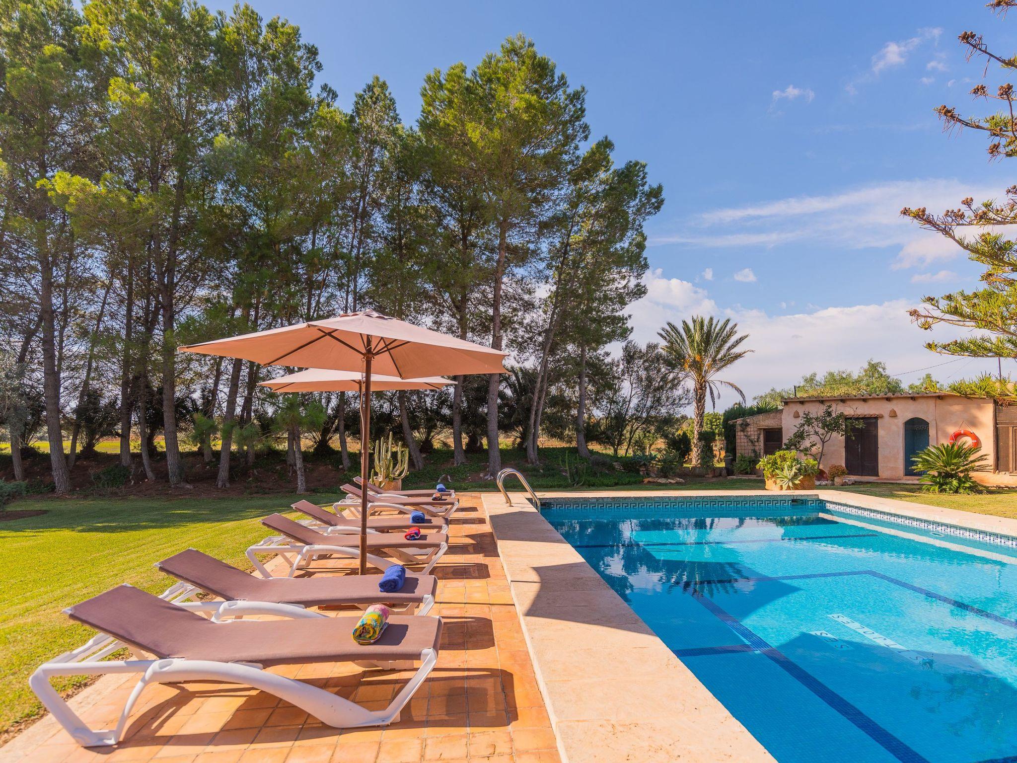 The holiday home Sitjoles is located between Campos and Sa Rapita, on an enclosed plot of approx. 2500 m2 in the neighbourhood of a few other houses and has a lovingly landscaped garden. It is approx. 75 km to Campos with shopping facilities and restaurants. The popular and well-known white sandy beach Es Trenc is about 10 km away. The island's capital Palma de Mallorca with its many sights can be reached in approx. 30 minutes by car.