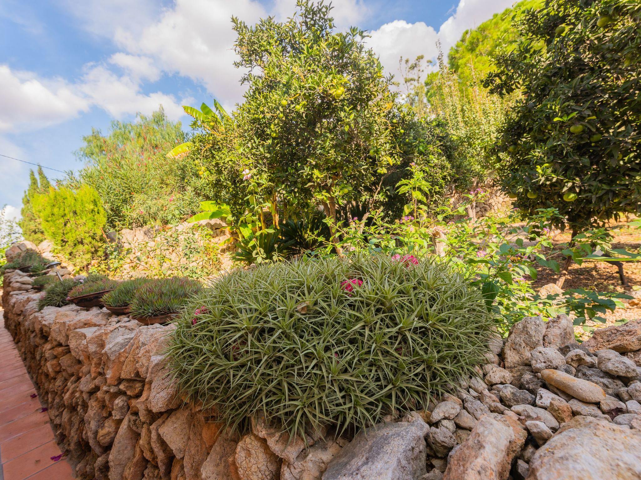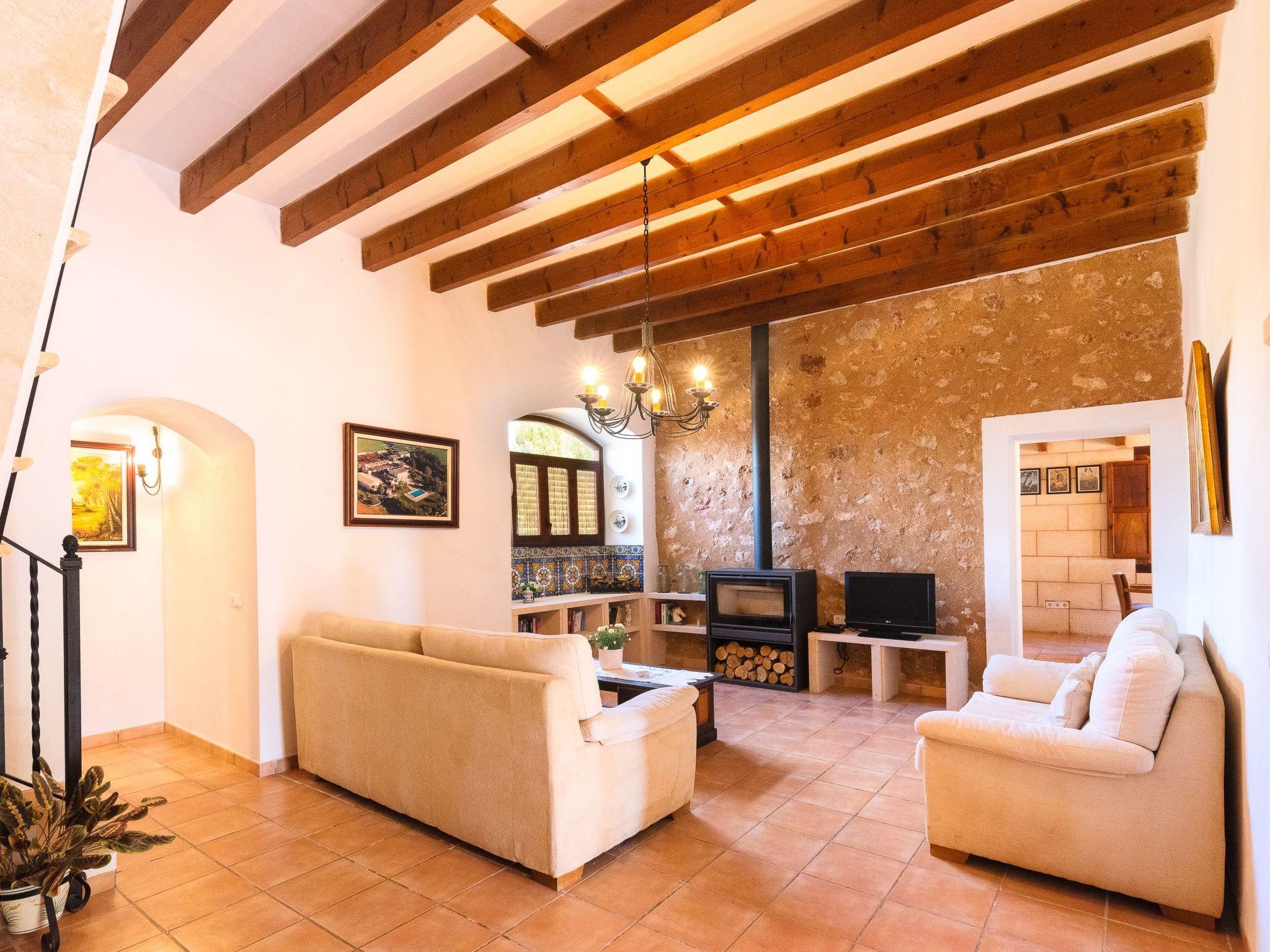 The house is partly furnished in a romantic Mallorcan style, while more recent styles, such as natural walls, create a cosy atmosphere and the bathrooms are of course modern. On the ground floor there is a living room with a seating area and open fireplace, which can be used on cooler evenings. A step leads to the fully equipped kitchen. There is also a dining room and three bedrooms, two of which have double beds and the third has two single beds. There is also a full bathroom and a shower room. One of the bedrooms has access to the beautiful garden. The upper floor of the house is not in use.