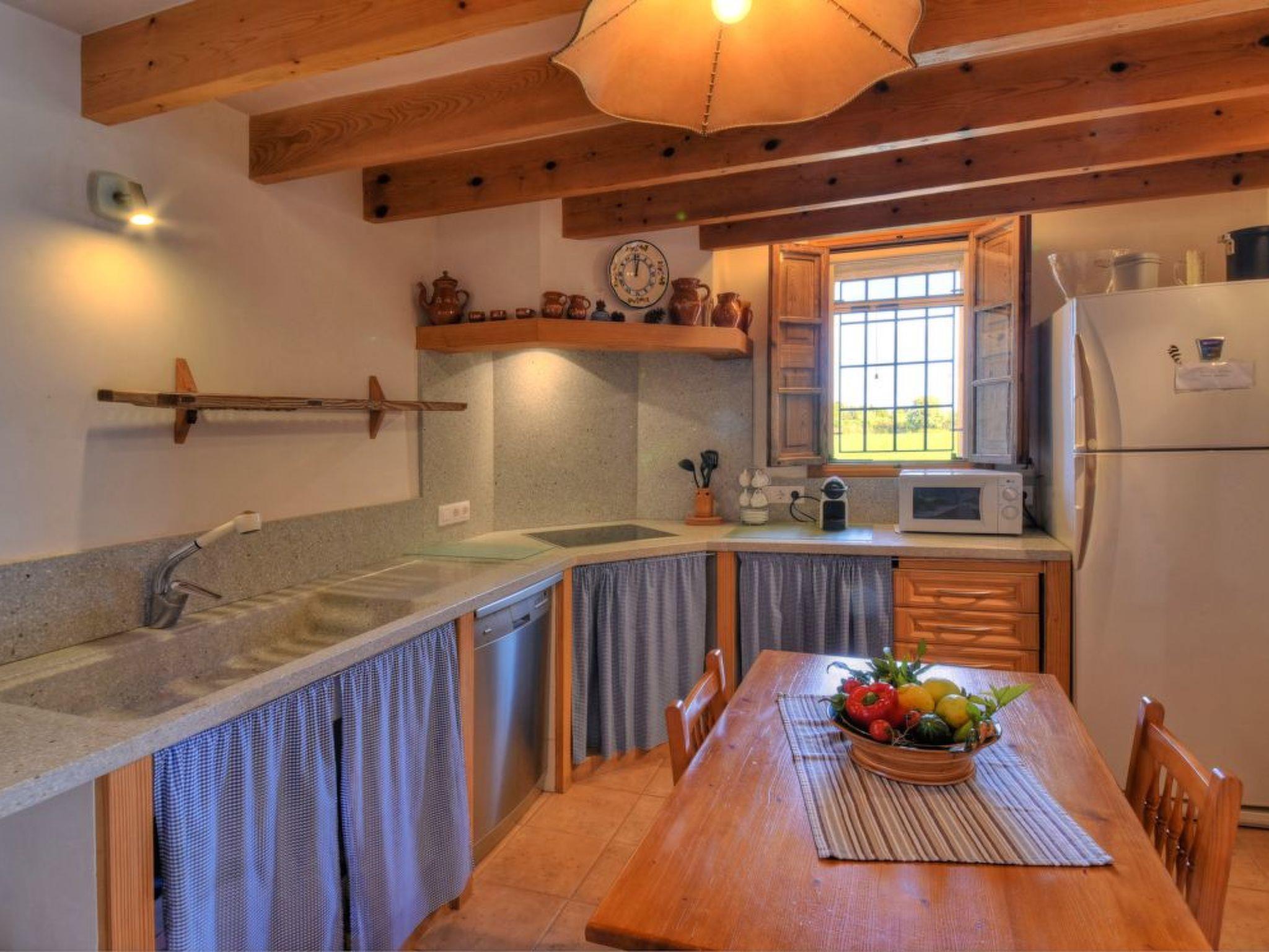Two-storey finca. The living/dining area impresses with its beautiful arched stone ceiling. From here you have direct access to the covered terrace with BBQ and the pool area. The kitchen also offers access to the covered terrace. There is also a single bedroom with en suite shower room on the ground floor. The upper floor has a double and a twin bedroom. These bedrooms share a separate shower room.