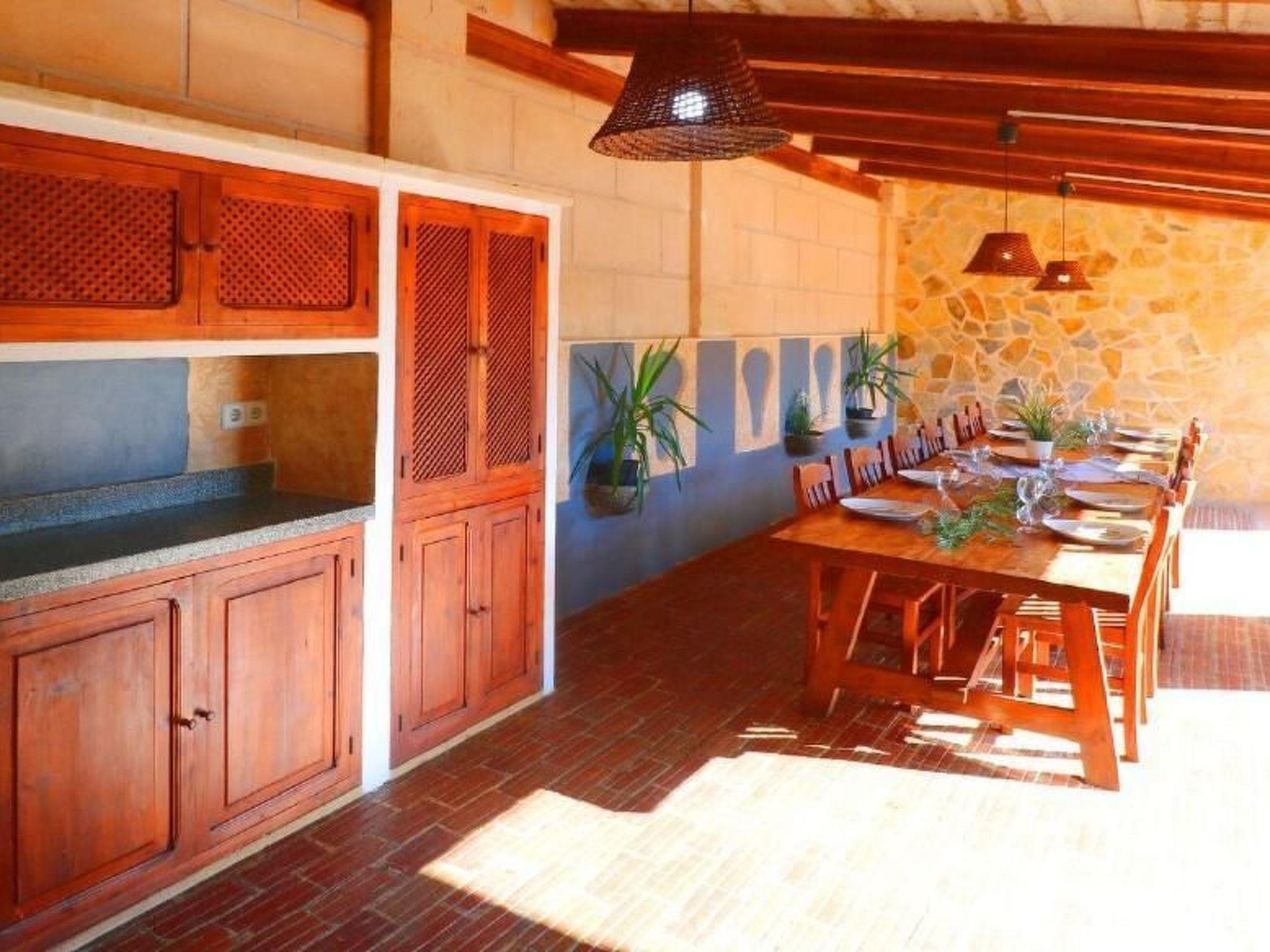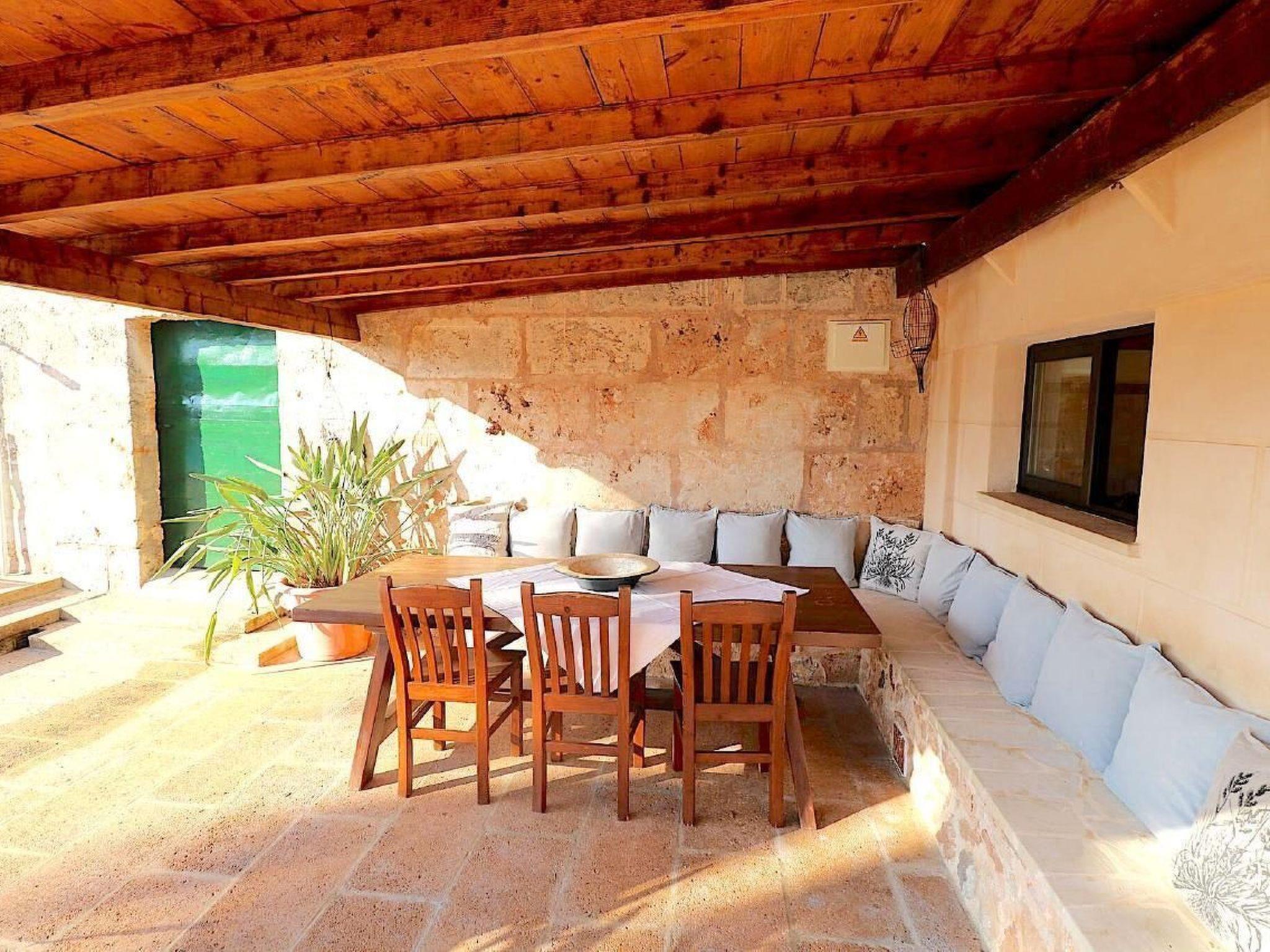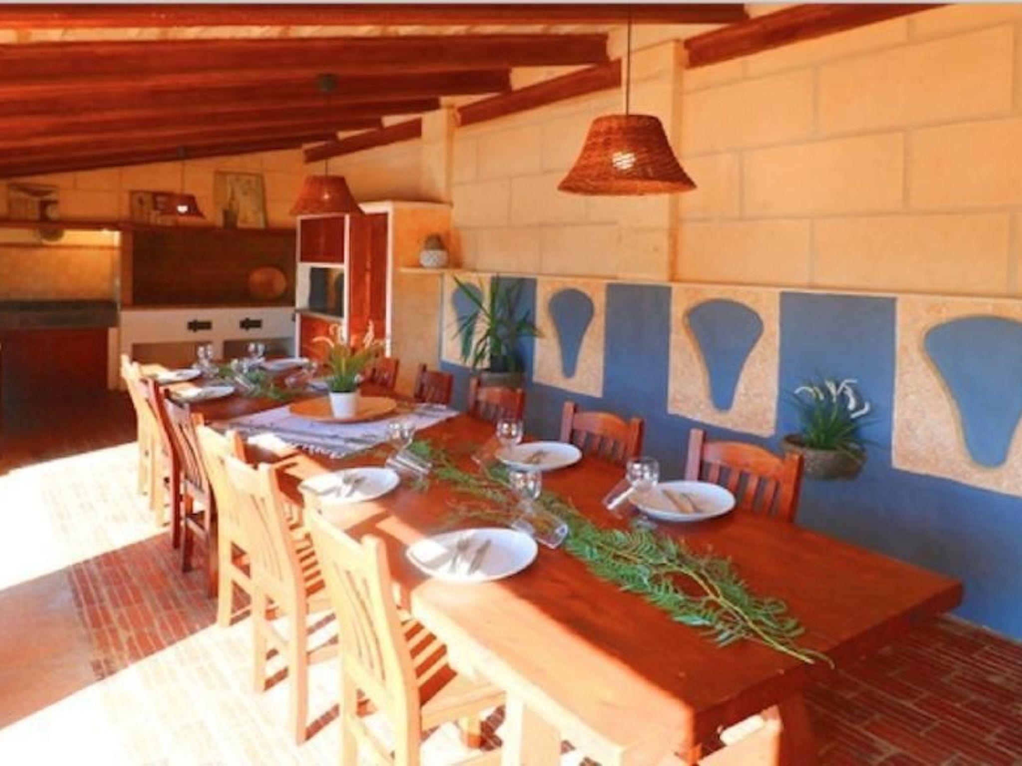 Finca Esmaeralda - situated in the countryside near Campos, is the ideal holiday home if you need a lot of space. The residential buildings consist of a main house and a casita and offer space for up to 9 people. There are two separate flats in the main house, which can be separated if required to create two self-sufficient accommodation units. one of the flats in the main house of Finca Esmeralda consists of a bathroom and two bedrooms, one of which is equipped with a bunk bed and the other with a double bed (150x200). This flat also has a kitchen and a spacious living and dining area with TV/SAT and fireplace, while the other flat has two bathrooms and three bedrooms, one of which has an extra single bed and the other two have double beds. This flat also has a kitchen with an adjoining living area with SAT TV. In the grounds of Finca Esmeralda there is a pool with terrace and sun loungers. A special highlight of Finca Esmeralda is the covered outdoor kitchen, which has a brick barbecue and a cooking area. A dishwasher and fridge are also included, making it the ideal place for extended barbecues.