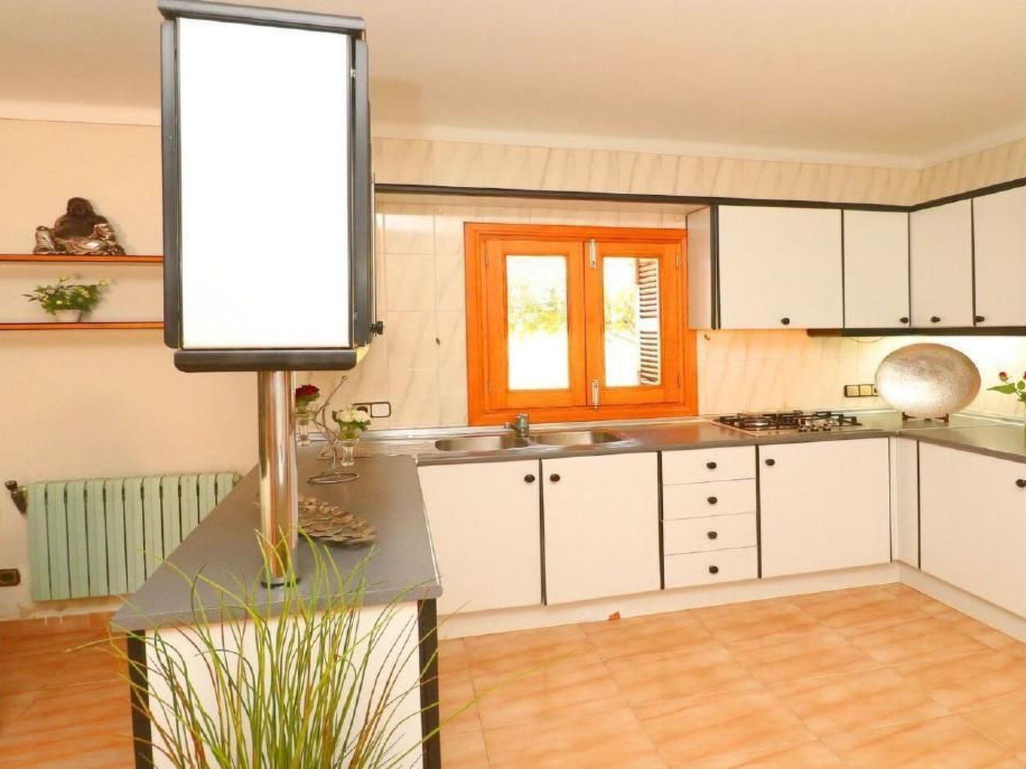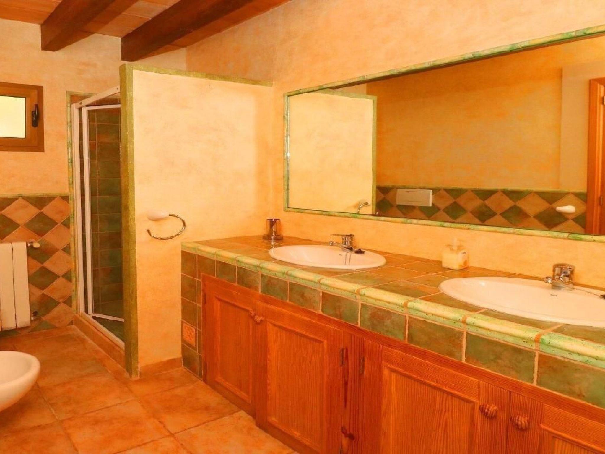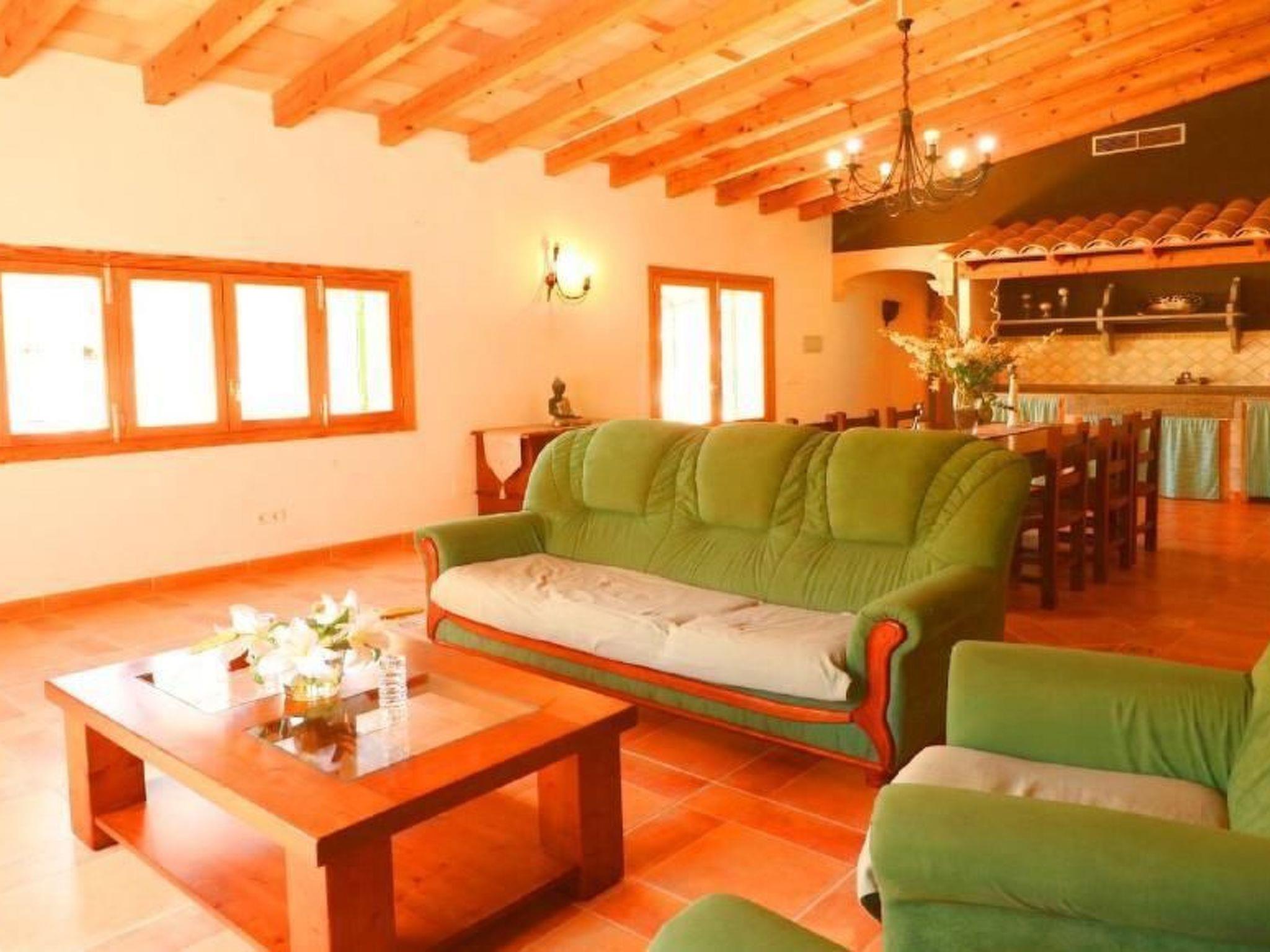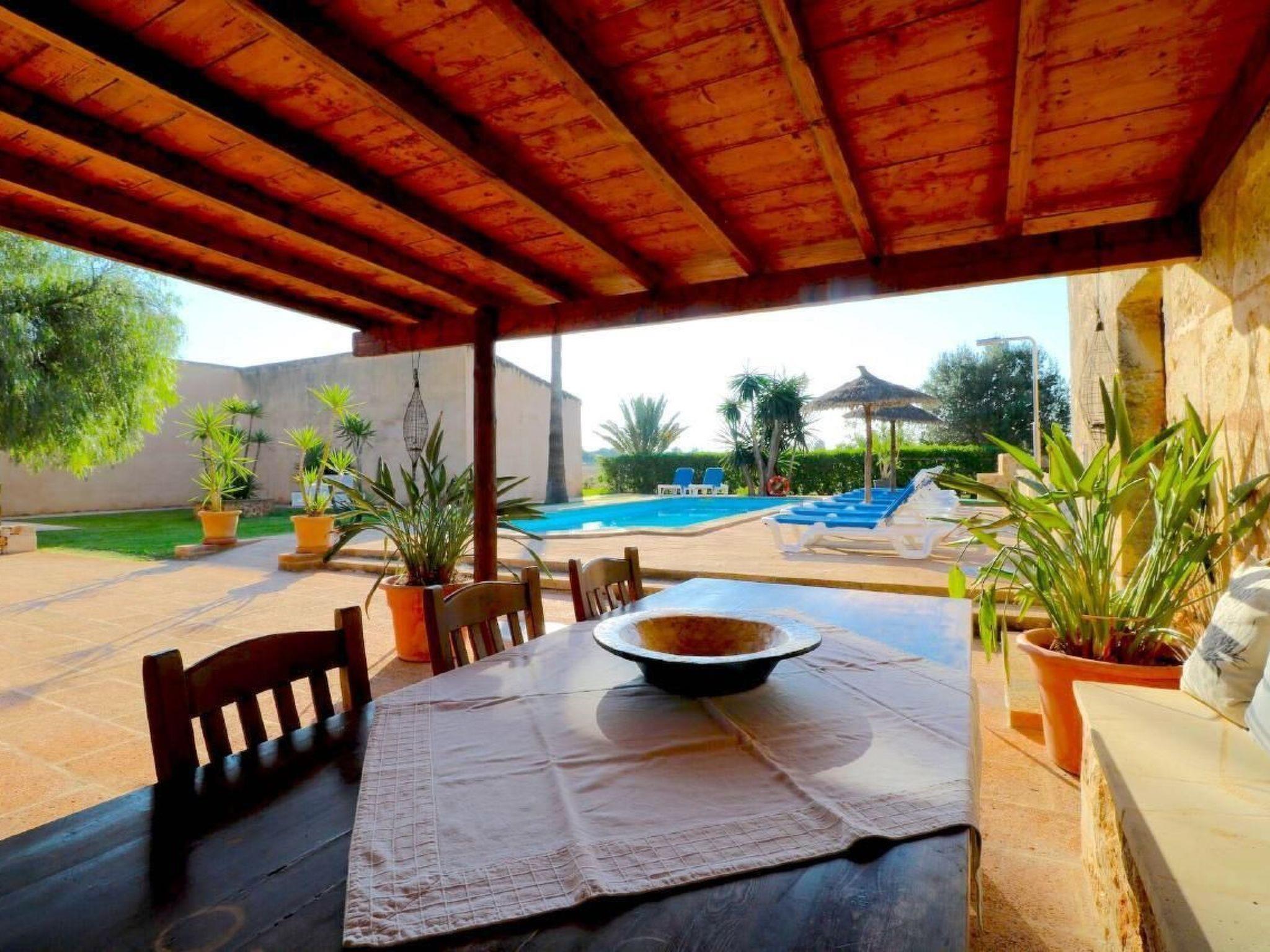 Finca Esmaeralda - situated in the countryside near Campos, is the ideal holiday home if you need a lot of space. The residential buildings consist of a main house and a casita and offer space for up to 9 people. There are two separate flats in the main house, which can be separated if required to create two self-sufficient accommodation units. one of the flats in the main house of Finca Esmeralda consists of a bathroom and two bedrooms, one of which is equipped with a bunk bed and the other with a double bed (150x200). This flat also has a kitchen and a spacious living and dining area with TV/SAT and fireplace, while the other flat has two bathrooms and three bedrooms, one of which has an extra single bed and the other two have double beds. This flat also has a kitchen with an adjoining living area with SAT TV. In the grounds of Finca Esmeralda there is a pool with terrace and sun loungers. A special highlight of Finca Esmeralda is the covered outdoor kitchen, which has a brick barbecue and a cooking area. A dishwasher and fridge are also included, making it the ideal place for extended barbecues.