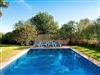 Finca Can Algarrobo is nestled in the rolling hills of the Campos area and surrounded by almond and carob trees. It offers 210 square metres of living space on two floors and is suitable for up to six people. The rustic-style house is cosily furnished and equipped with AC in all rooms; on the ground floor there is a spacious kitchen, which is furnished in typical Mallorcan style with a large dining table. A large fireplace in the kitchen completes the traditional décor. All rooms on the ground floor have direct access to the large terrace which adjoins the pool area, while on the upper floor there are two further bedrooms, one with a double bed and en suite bathroom and one with two single beds.The entire plot is more than 20,000 square metres in size. In the landscaped garden is the pool (10 m x 5 m) with terrace and sunbathing area. The house is surrounded by oleanders and the palm trees in the garden are visible from afar. The covered terrace is furnished and has an outdoor barbecue that can be used in all weathers.