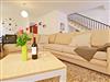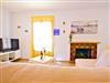 Das Wohnzimmer bietet mit einem großen Sofa genügend Platz für gemütliche Abende. Hier können Sie fernsehen oder den Abend vor dem Kamin ausklingen lassen.