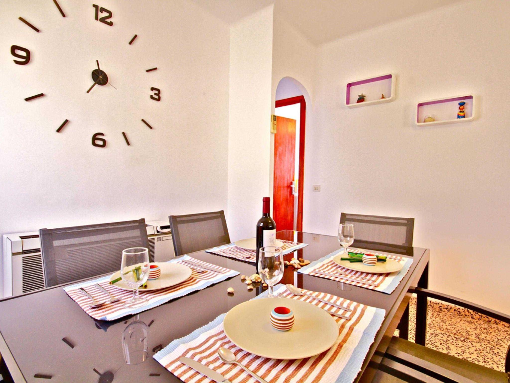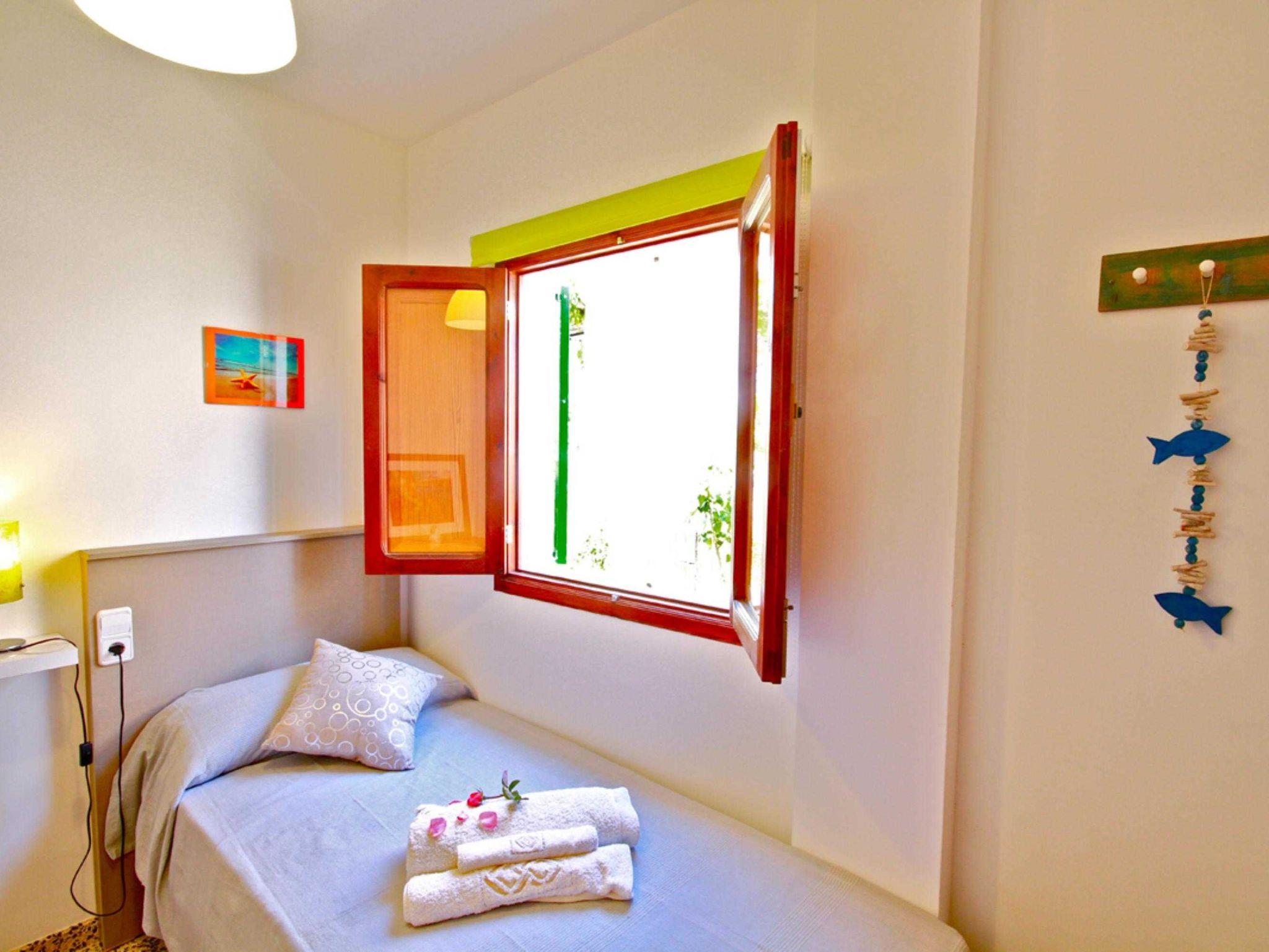 Das Dorfhaus Casa delfín liegt ca. 300 m vom Meer entfernt und bietet Platz für bis zu 6 Erwachsene und ein Baby. Die Wohnfläche beträgt insgesamt 190 qm und ist aufgeteilt in 4 Schlafzimmer, Wohn-Esszimmer, 2 Bäder und eine voll ausgestattete moderne Küche. Drei der Schlafzimmer befinden sich im Obergeschoss. Zwei davon haben ein Doppelbett von 180x200cm oder 160x200cm. Das dritte Schlafzimmer im Obergeschoss ist mit zwei Einzelbetten (90x200cm) ausgestattet und ist für Kinder geeignet. Das vierte Schlafzimmer befindet sich im Untergeschoss und bietet eine weitere Schlafmöglichkeit für eine Person.