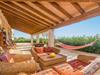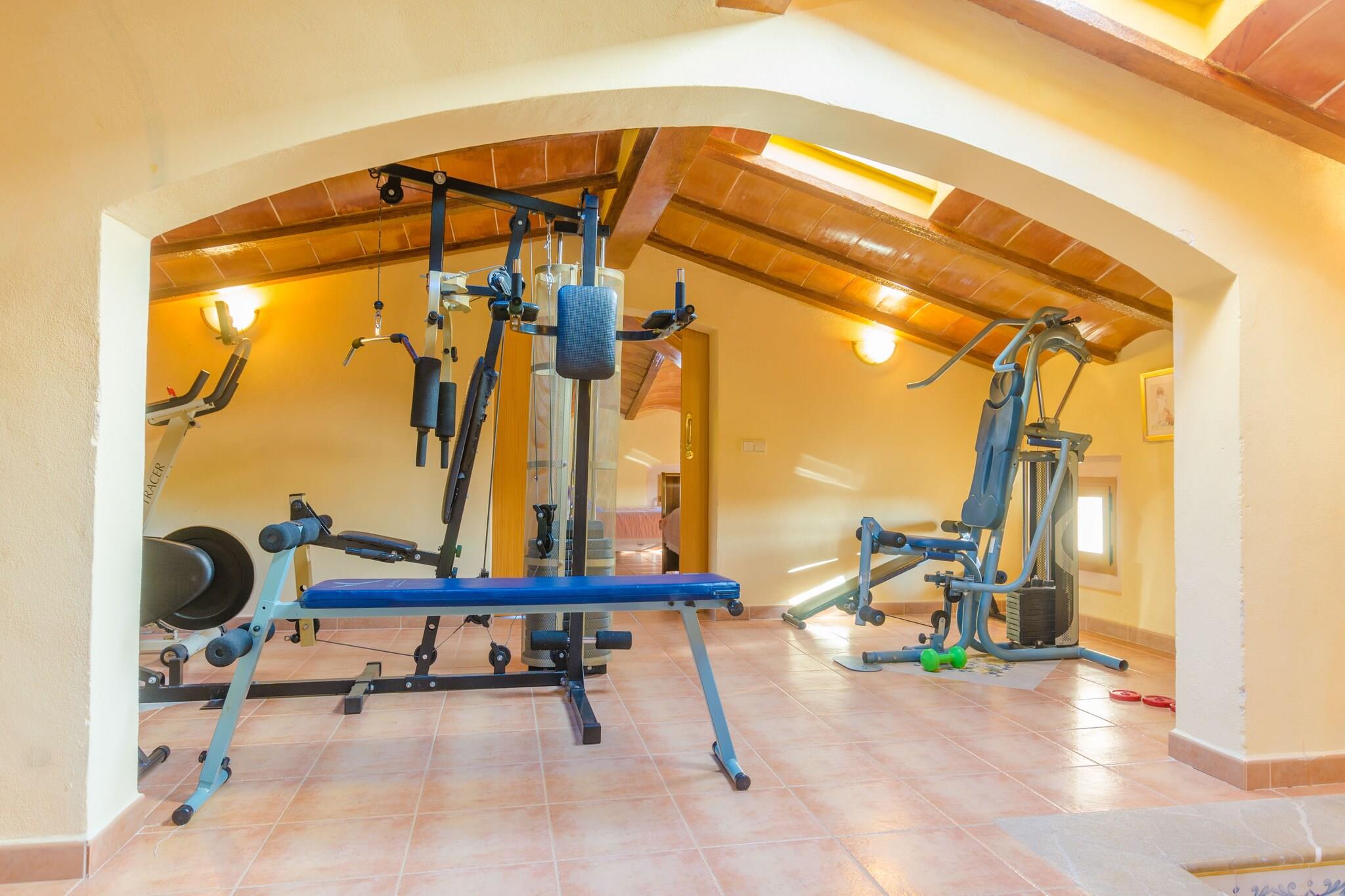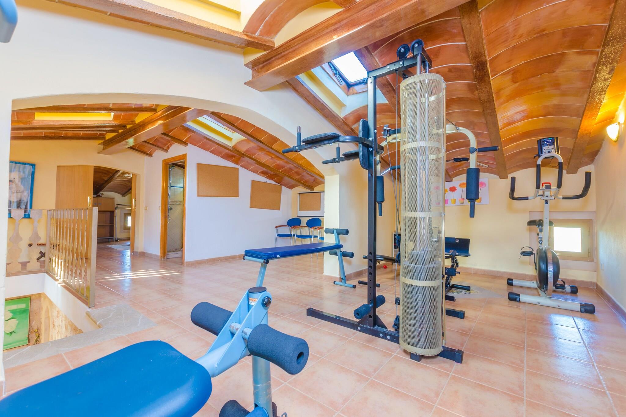 De buitenkant van deze villa is onverslaanbaar. Het privé chloorzwembad is werkelijk spectaculair door zijn afmeting van 20 x 10 m en de diepte van 0,5 tot 3 m. Daaromheen hebben ze een groot terras met 11 hangmatten om ook van de zon te genieten. De veranda is ideaal om te ontspannen na een lekker bad. Er zijn verschillende tafels en stoelen waar u iets kunt drinken of buiten kunt genieten van een heerlijke barbecue. Het perceel is omheind en de privacy is totaal. Het huis biedt drie verdiepingen. Op de begane grond hebben ze een grote woonkamer met satelliet-tv, cd- en dvd-speler. Vervolgens komt u in de eetkamer en vervolgens in de keuken, uitgerust met een keramische kookplaat. Direct ernaast heb je de uitgang naar de wasruimte, waar zich 2 wasmachines, 2 drogers, strijkijzer en strijkplank bevinden. Op dit niveau zijn er 2 slaapkamers, één met een tweepersoonsbed en de andere met twee eenpersoonsbedden, en 2 badkamers met ligbad. Een tweede woonkamer bevindt zich naast de trap die naar de eerste verdieping leidt. Hier hebben ze nog 3 andere kamers met een tweepersoonsbed en een eigen badkamer, twee met douche en één met ligbad. Op de bovenste verdieping hebben ze een fitnessruimte, een badkamer met douche en 2 slaapkamers, één met een tweepersoonsbed en twee eenpersoonsbedden, en de andere met twee eenpersoonsbedden en een onderschuifbed. Er zijn 2 kinderbedjes en 2 kinderstoelen. De woonkamer, eetkamer en 6 slaapkamers zijn voorzien van airconditioning. De boerderij ligt op slechts 4,7 km van de stad Campos waar u alle noodzakelijke voorzieningen vindt zoals supermarkten, restaurants, bars enz. Elke donderdag is er een groenten- en fruitmarkt, en op zaterdag is er een markt met allerlei producten in de straten van het centrum. Het dichtstbijzijnde strand is Es Trenc, op 13,5 km afstand, een van de beste op Mallorca vanwege het witte zand en het kristalheldere water. Voor eventuele extra kosten kunt u contact opnemen met de adverteerder. Huisdieren zijn welkom. Het vieren van evenementen is niet toegestaan. Er is buiten parkeergelegenheid voor 8 auto's. Afstanden Strand: 13,5 km - Es Trenc Luchthaven: 38 km - Son Sant Joan Golfbaan: 25,2 km - Vall d'Or Stad: 4,7 km - Velden Treinstation: 45 km - Manacor Bushalte: 4 km - Avinguda Nicolau Oliver Fullana Veerboot: 44,8 km - Palma Ziekenhuis: 30,1 km - Manacor Toeristenvergunning: VT/1567Bij de ingang dient u de Ecotasa (toeristenbelasting van de Balearen) contant te betalen. Het bedrag varieert tussen EURO 0,55 / per nacht per persoon in het laagseizoen en EURO 2,2 / per nacht per persoon in het hoogseizoen. Vanaf de negende dag wordt het met de helft verminderd. Personen onder de 16 jaar uitgesloten. Bij de ingang dient u de borg rechtstreeks aan de eigenaar te betalen. Elektriciteit (januari - december): 0,40 EUR/Kw (verplicht)
