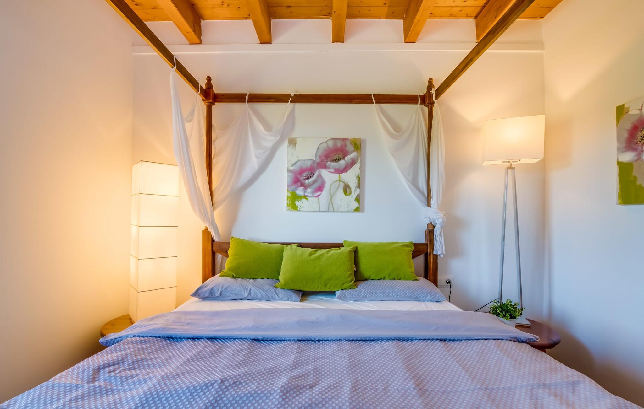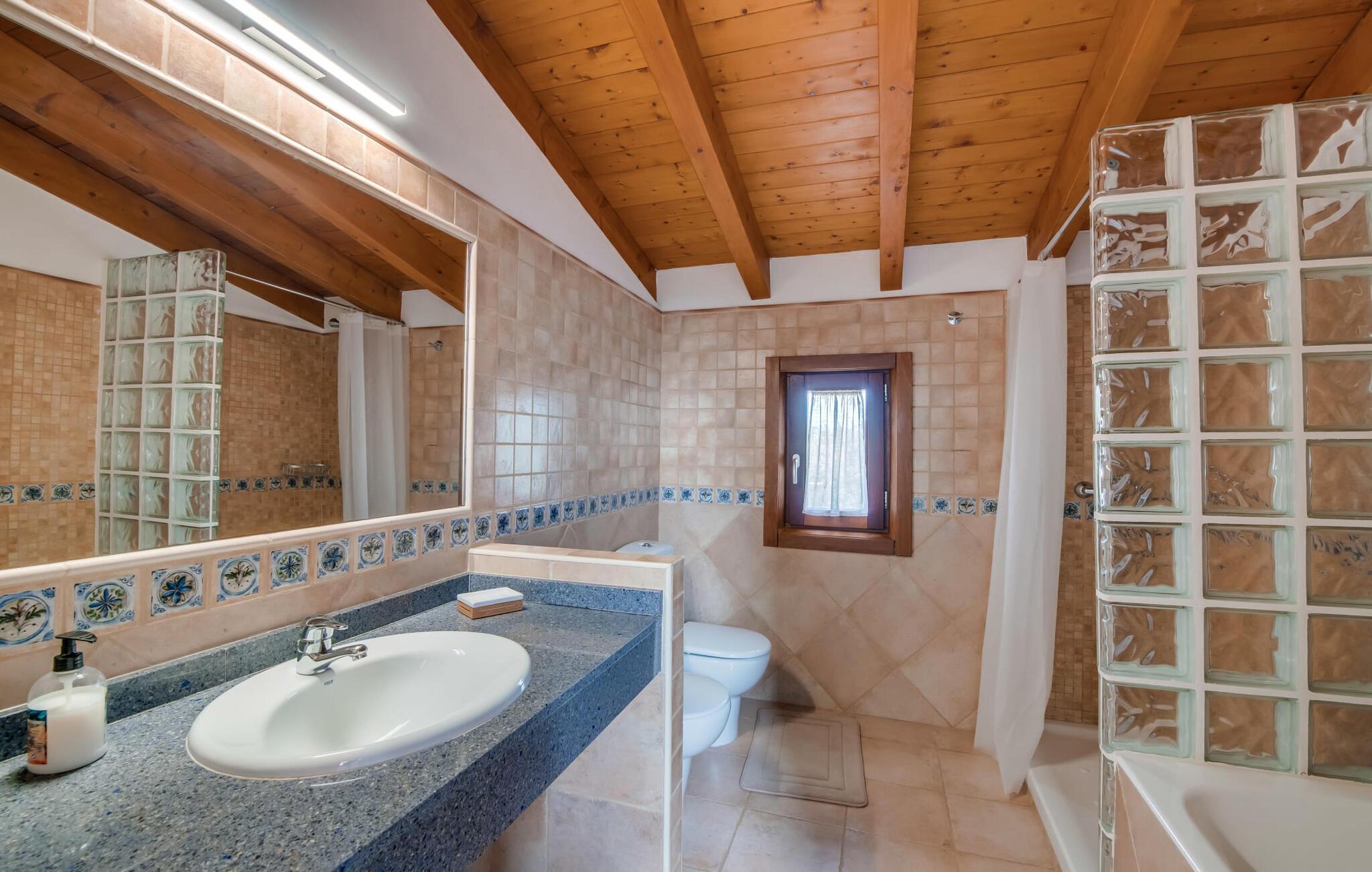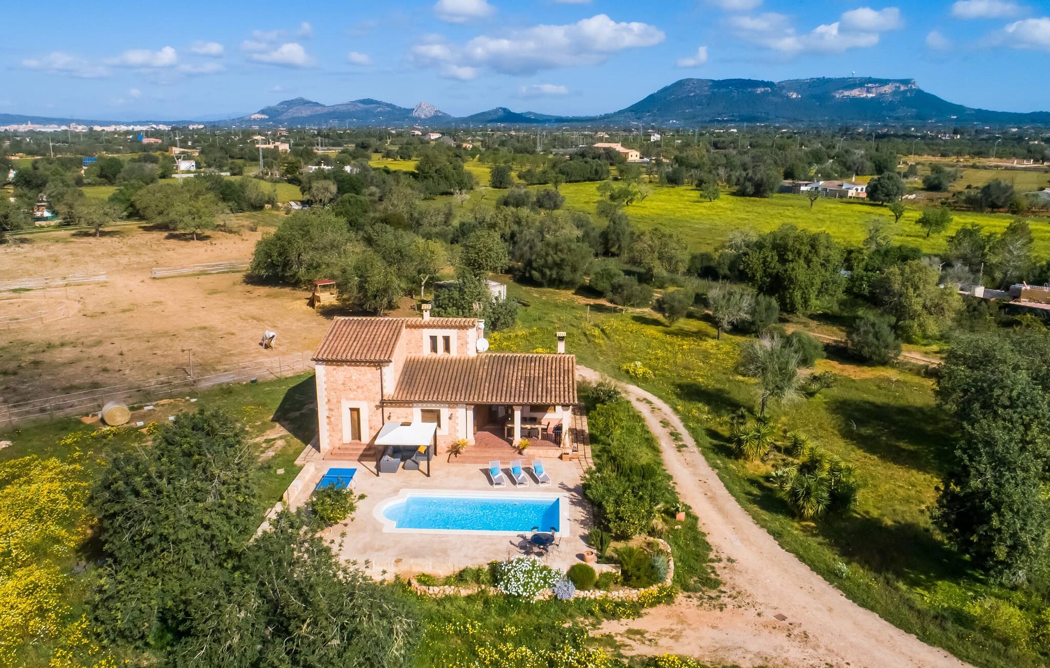 Masser af plads, fred og ro, natur, masser af muligheder for aktive familier og meget mere: Det er, hvad fincaen "Can Alba de Llucmajor" byder på for op til seks personer, et smukt feriehus på det sydlige Mallorca. Fincaen med pool er beliggende på en stor, grøn ejendom i en rolig beliggenhed uden direkte naboer. jeres finca har et meget velholdt, rummeligt og delvist overdækket terrasseområde: Her kan I enten nyde frisk grillet mad sammen ved spisebordet, sætte jer i den behagelige udendørs sofa med en god bog, nyde det lange og rigelige solskin på sol liggestole ved poolen takket være den sydvendte orientering eller spil et spil bordtennis ved husets bord. Fincaen byder velkommen i en klassisk middelhavsstil med et moderne islæt, venligt og lyst Mange vinduer, trælofter og en smagfuld indretning præger den meget velholdte, hyggelige atmosfære. Indretningen lader heller ikke tilbage at ønske: I stueetagen er der ikke kun en rummelig, åben stue og spisestue med pejs, som skaber en hyggelig atmosfære, men også et stort køkken med endnu et spisebord, hvor I kan sidde hyggeligt sammen. og få en vidunderlig morgenmad. De tre dobbeltværelser i huset lover afslappende nætter, et i stueetagen og to på øverste etage. Et moderne badeværelse nedenunder og ovenpå afrunder boligkomforten på jeres drømmefinca på Mallorca. Mallorcas landliv parret med masser af komfort inde og ude: Dette er fincaen "Can Alba de Llucmajor" i den solrige sydlige del af øen. På trods af den rolige beliggenhed på en kæmpe ejendom, ligger jeres feriehus kun 4 km fra Llucmajor. Den charmerende landsby med mange butikker, restauranter og caféer kan nemt nås via landevejen, som kan høres akustisk afhængig af vindretningen. Strande som S'Arenal eller Racó de S'Arena ligger henholdsvis kun 16 og 18 km væk. Bemærk venligst, at denne ejendom ikke accepterer ungdomsgrupper eller polterabender. En ungdomsgruppe på denne ejendom består af personer på 28 år eller derunder. Book ikke denne ejendom, hvis I er en ungdomsgruppe eller en polterabendgruppe, da jeres reservation vil blive afvist, når den er booket, hvilket også kan være tilfældet ved ankomst til ejendommen eller under jeres ophold, og I vil ikke modtage en refusion.