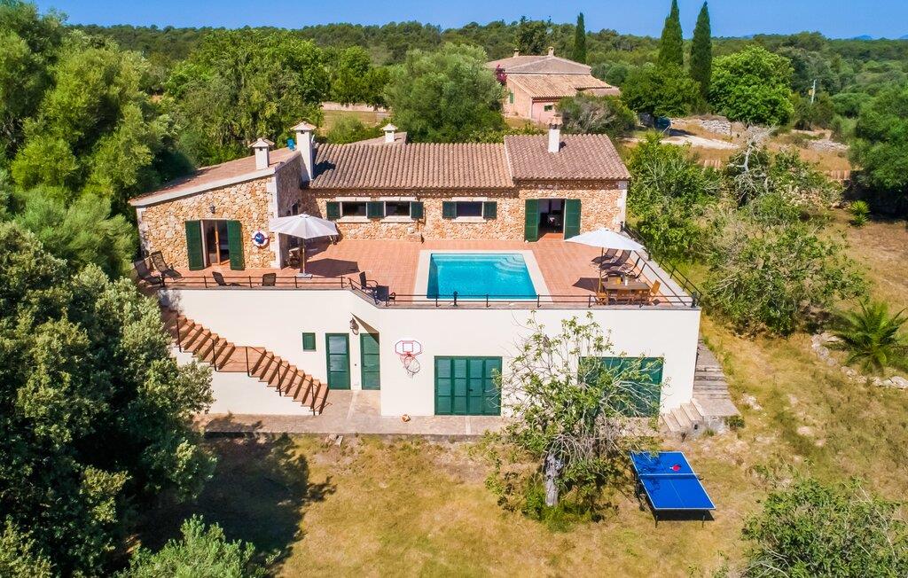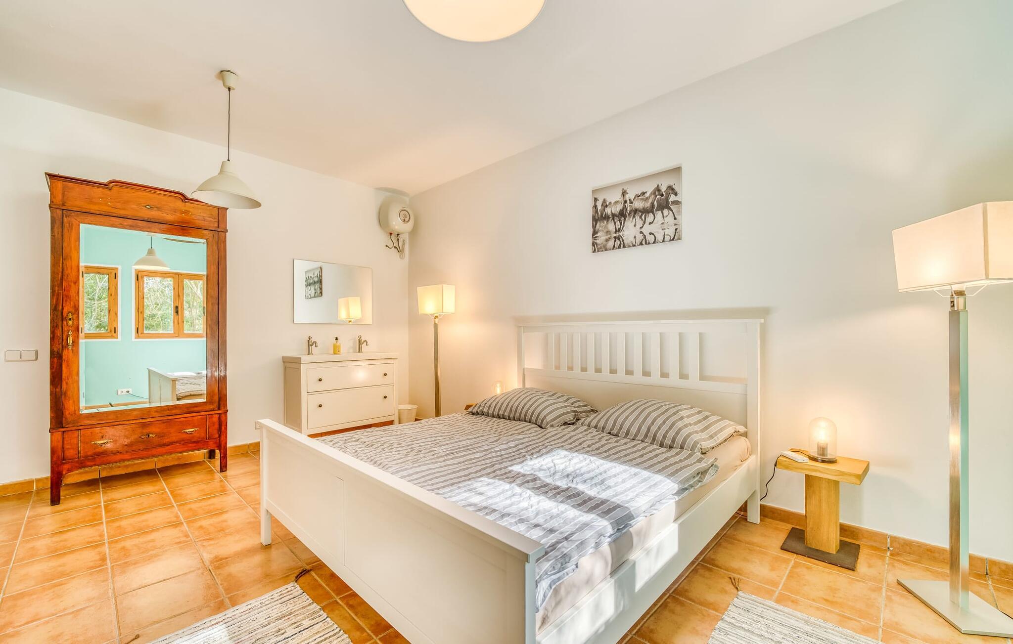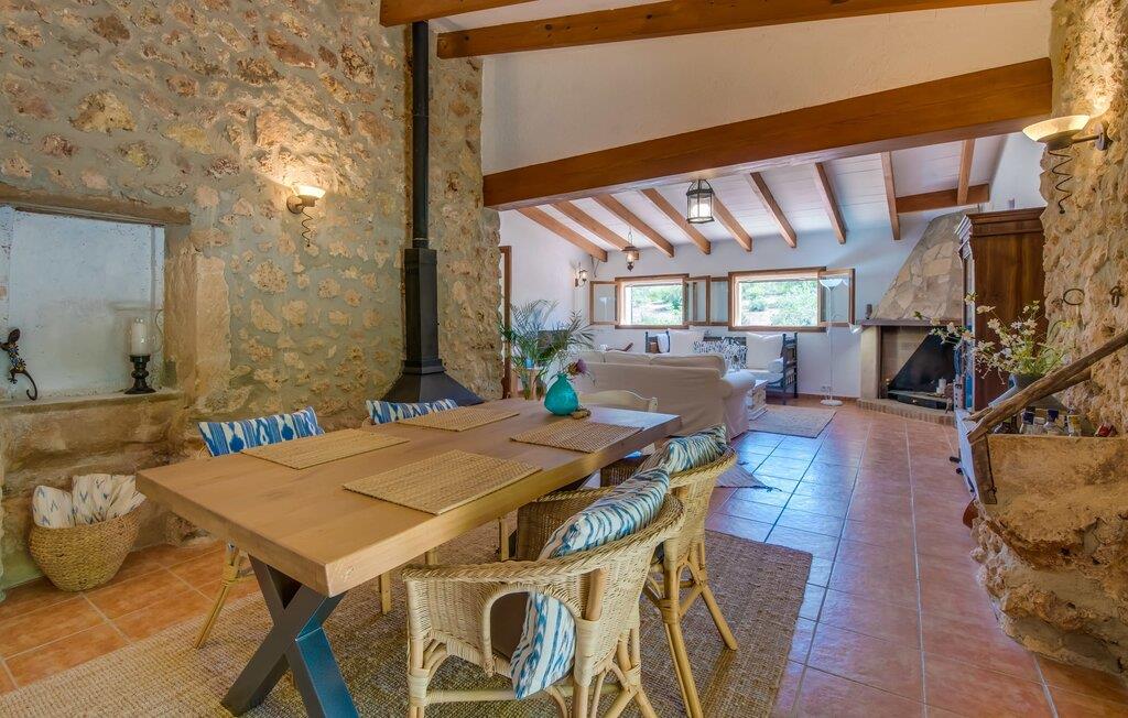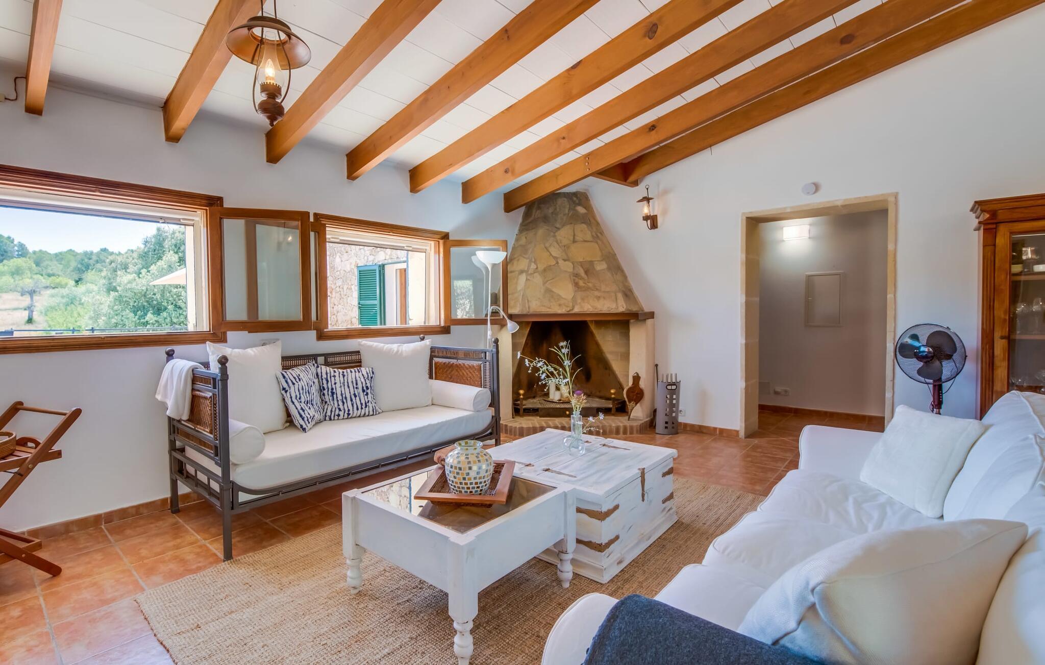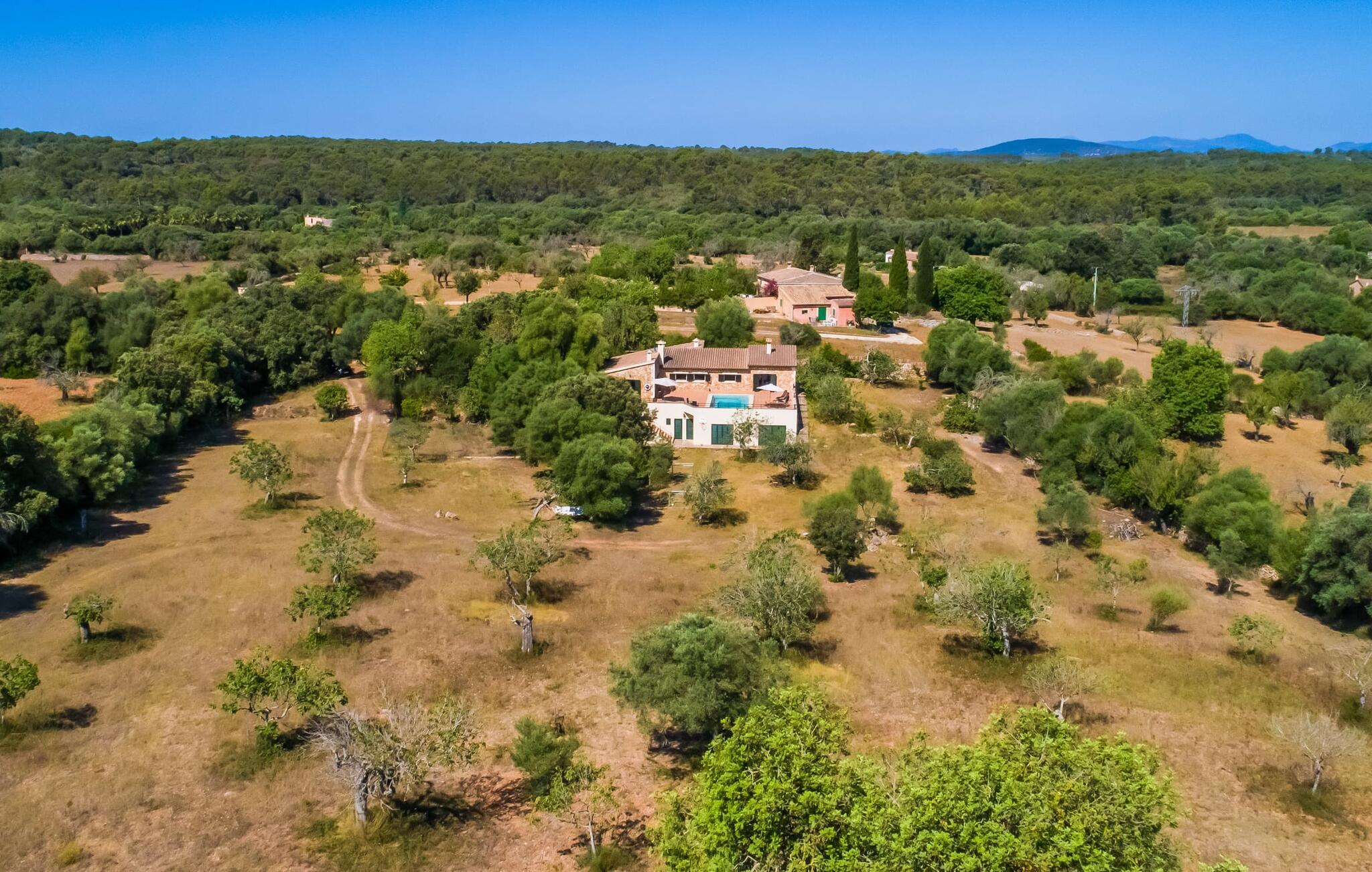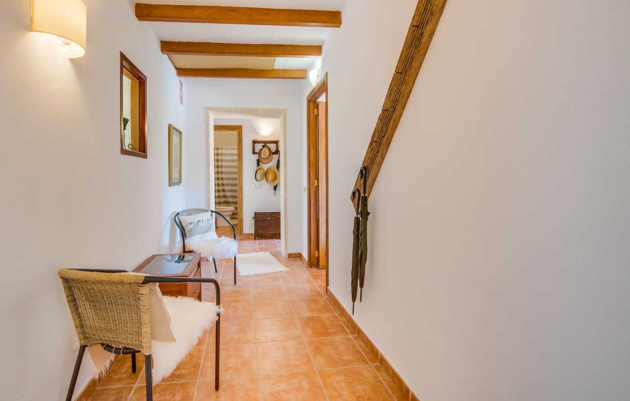 Beliggende på en svag skråning tilbyder feriehuset "Can Baldo" et fortryllende tilflugtssted i hjertet af Mallorca. Det primære opholdsområde har en charmerende naturstensfacade og byder på en betagende udsigt over det omkringliggende landskab med fyrretræer og marker. Den ekspansive poolterrasse er perfekt til at nyde smukke solopgange og private solbadningsøjeblikke. Hyggelige naturstenterrasser på bagsiden inviterer jer til at slappe af i skyggen. Ejendommen har en stor have med fodboldmål, en basketballkurv og et bordtennisbord. Det primære opholdsrum har en lys, åben grundplan med en hyggelig stue med pejs og direkte adgang til terrassen ved poolen. En indbydende spiseplads forbinder en af naturstensterrasserne, mens det lyse køkken har egen spiseplads og adgang til poolen. På dette niveau er der tre soveværelser med dobbeltsenge, hvoraf to har en-suite badeværelser, og et separat badeværelse. Fra haven er der adgang til et fjerde soveværelse med dobbeltseng og håndvask. Huset er udstyret med aircondition og varme, hvilket gør "Can Baldo" ideel til to familier eller venner, der ønsker at tilbringe en afslappende ferie sammen. Denne meget hyggelige bondegård ligger kun 6 km sydøst for den rolige landsby Sencelles. I en vidunderlig rolig beliggenhed er det et ideelt udgangspunkt for at udforske det mangfoldige Mallorca. Sencelles er ideel til daglige indkøb, og det ugentlige marked på Placa Nova med sine friske produkter er også et besøg værd. De fine sandstrande på den sydlige del af øen, herunder Cala Estancia, Platja de Palma og Cuidad Jardin, er omkring 30 minutter væk i bil.