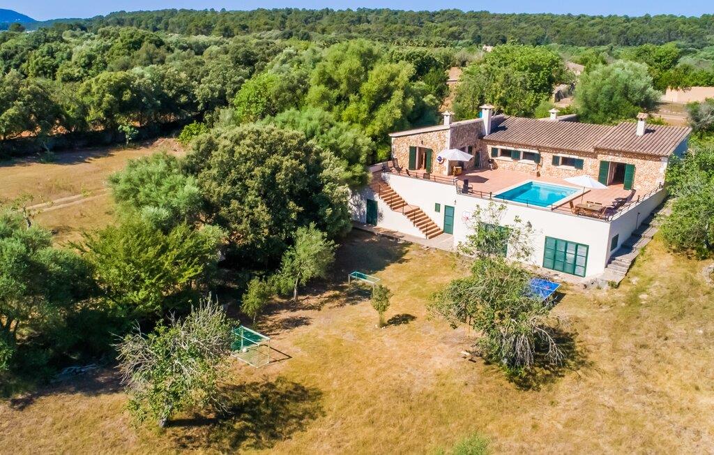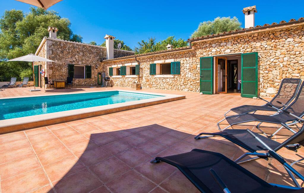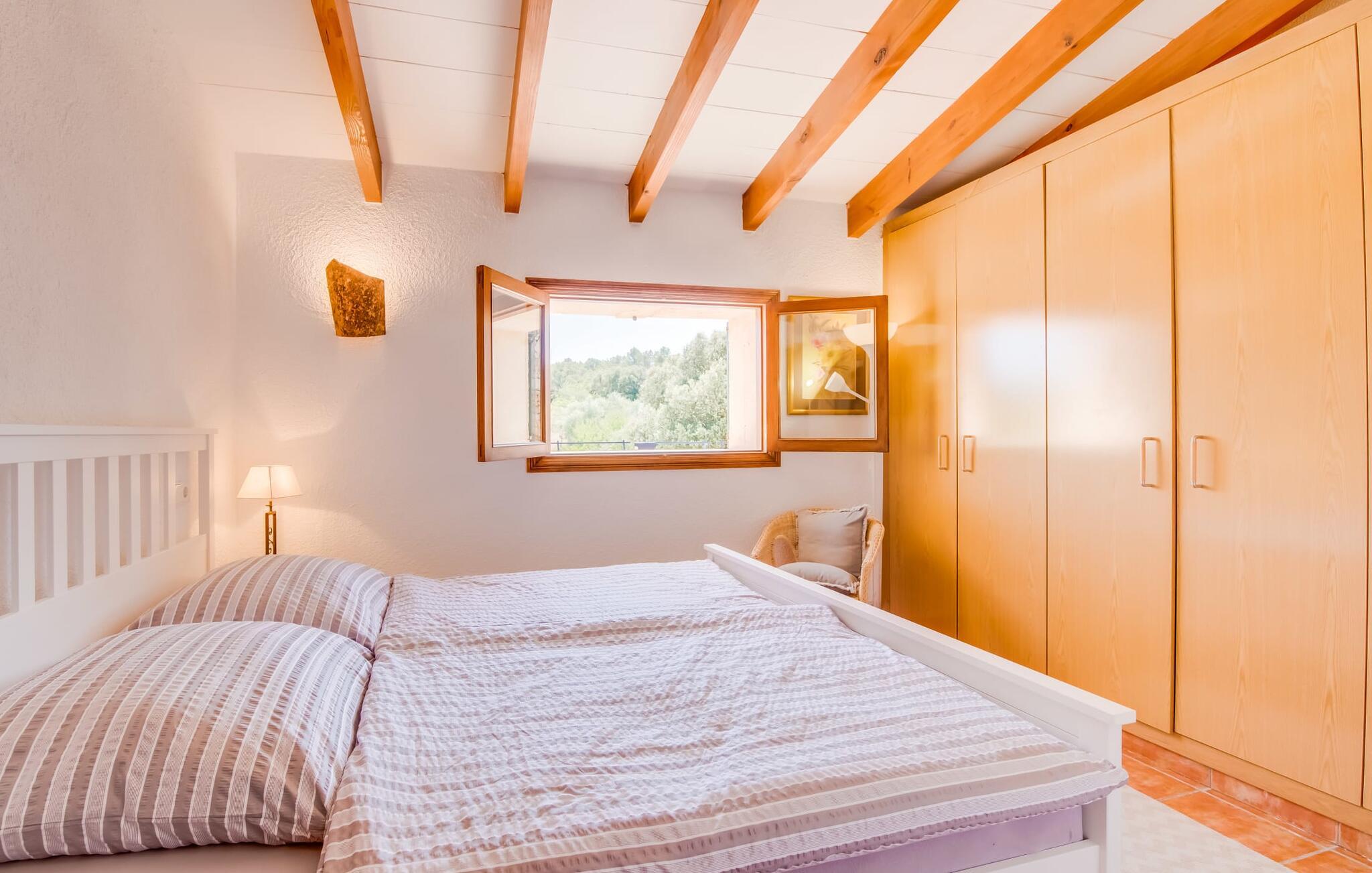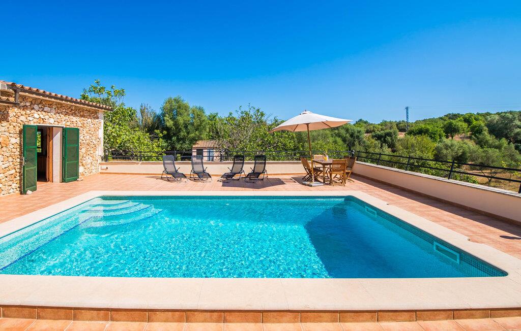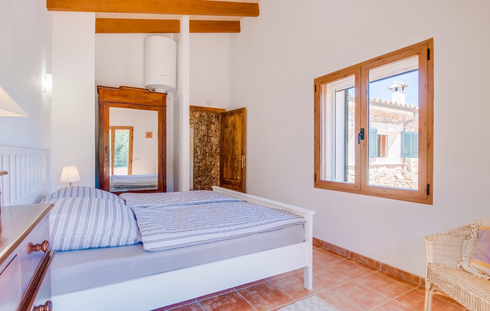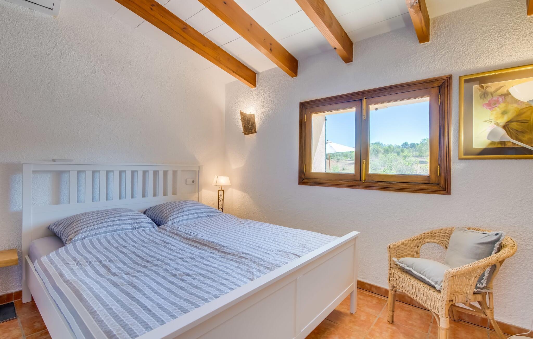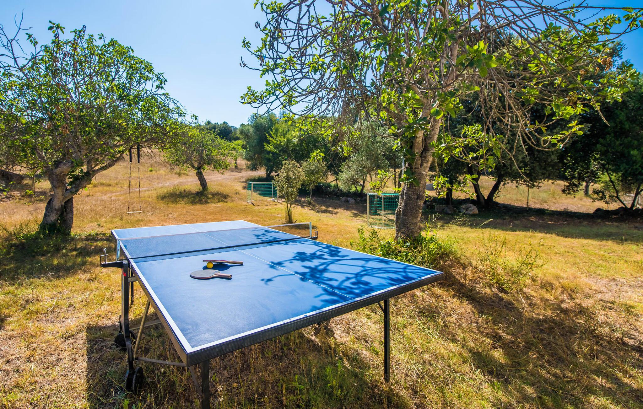 Beliggende på en svag skråning tilbyder feriehuset "Can Baldo" et fortryllende tilflugtssted i hjertet af Mallorca. Det primære opholdsområde har en charmerende naturstensfacade og byder på en betagende udsigt over det omkringliggende landskab med fyrretræer og marker. Den ekspansive poolterrasse er perfekt til at nyde smukke solopgange og private solbadningsøjeblikke. Hyggelige naturstenterrasser på bagsiden inviterer jer til at slappe af i skyggen. Ejendommen har en stor have med fodboldmål, en basketballkurv og et bordtennisbord. Det primære opholdsrum har en lys, åben grundplan med en hyggelig stue med pejs og direkte adgang til terrassen ved poolen. En indbydende spiseplads forbinder en af naturstensterrasserne, mens det lyse køkken har egen spiseplads og adgang til poolen. På dette niveau er der tre soveværelser med dobbeltsenge, hvoraf to har en-suite badeværelser, og et separat badeværelse. Fra haven er der adgang til et fjerde soveværelse med dobbeltseng og håndvask. Huset er udstyret med aircondition og varme, hvilket gør "Can Baldo" ideel til to familier eller venner, der ønsker at tilbringe en afslappende ferie sammen. Denne meget hyggelige bondegård ligger kun 6 km sydøst for den rolige landsby Sencelles. I en vidunderlig rolig beliggenhed er det et ideelt udgangspunkt for at udforske det mangfoldige Mallorca. Sencelles er ideel til daglige indkøb, og det ugentlige marked på Placa Nova med sine friske produkter er også et besøg værd. De fine sandstrande på den sydlige del af øen, herunder Cala Estancia, Platja de Palma og Cuidad Jardin, er omkring 30 minutter væk i bil.