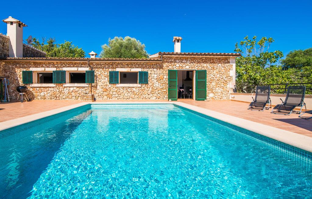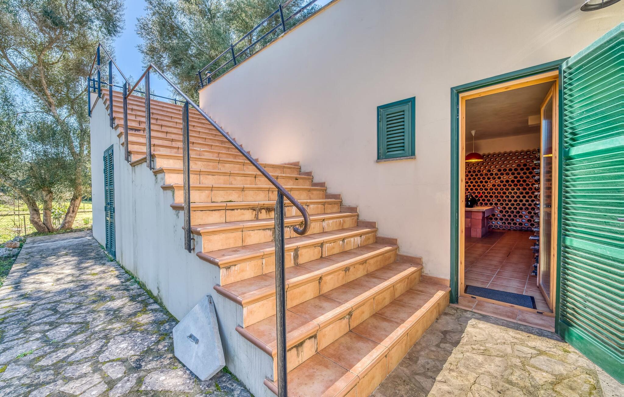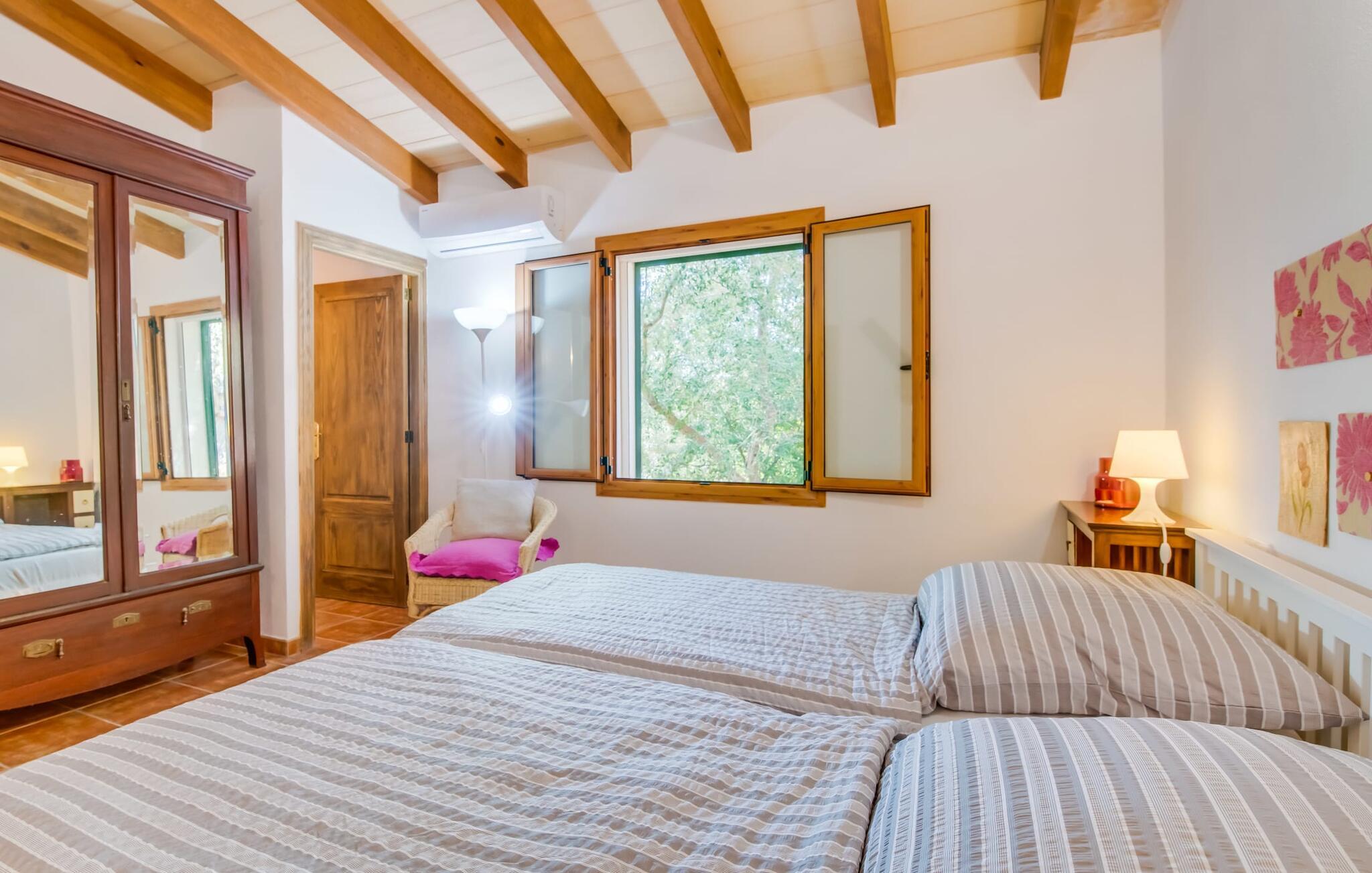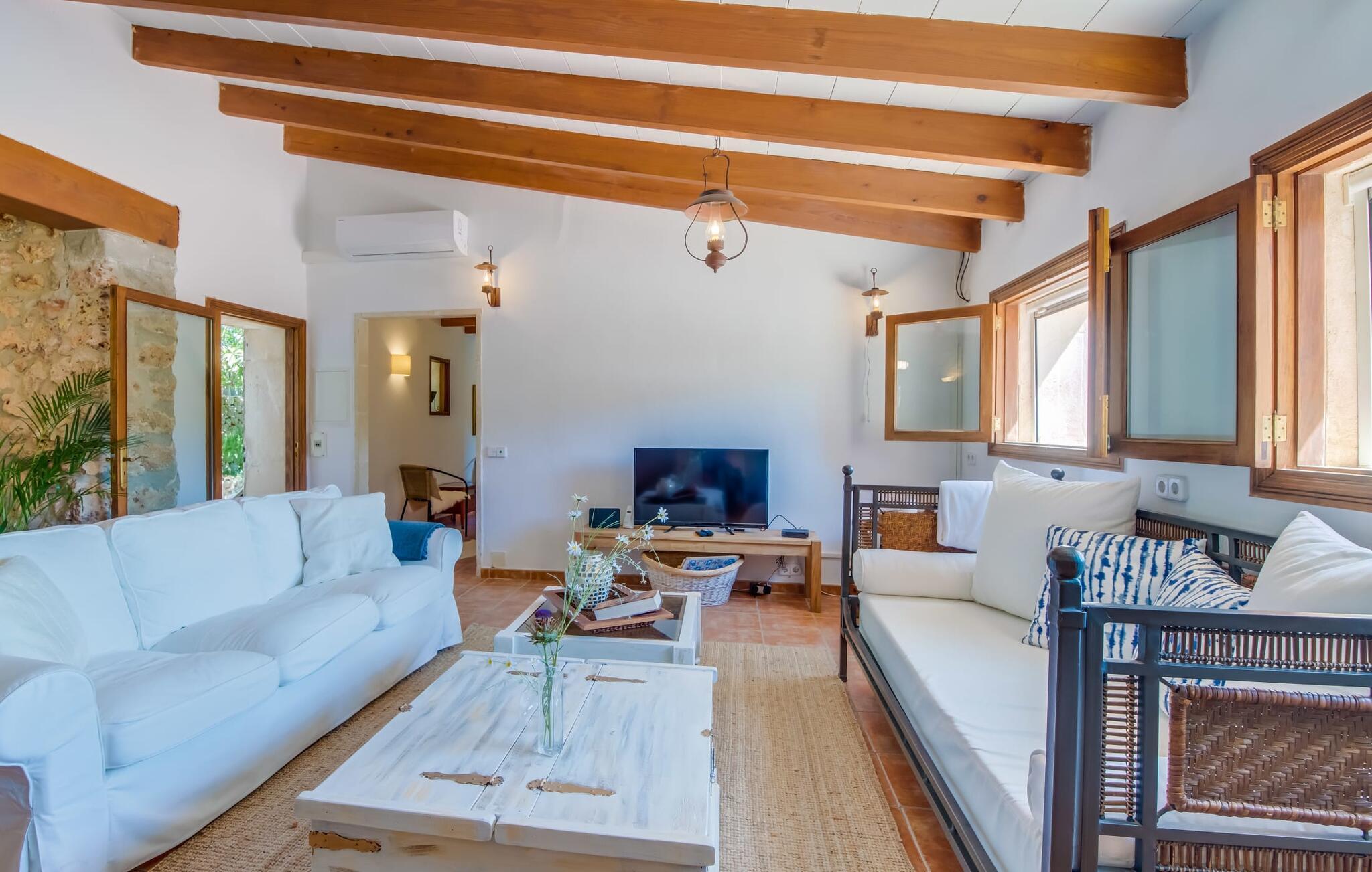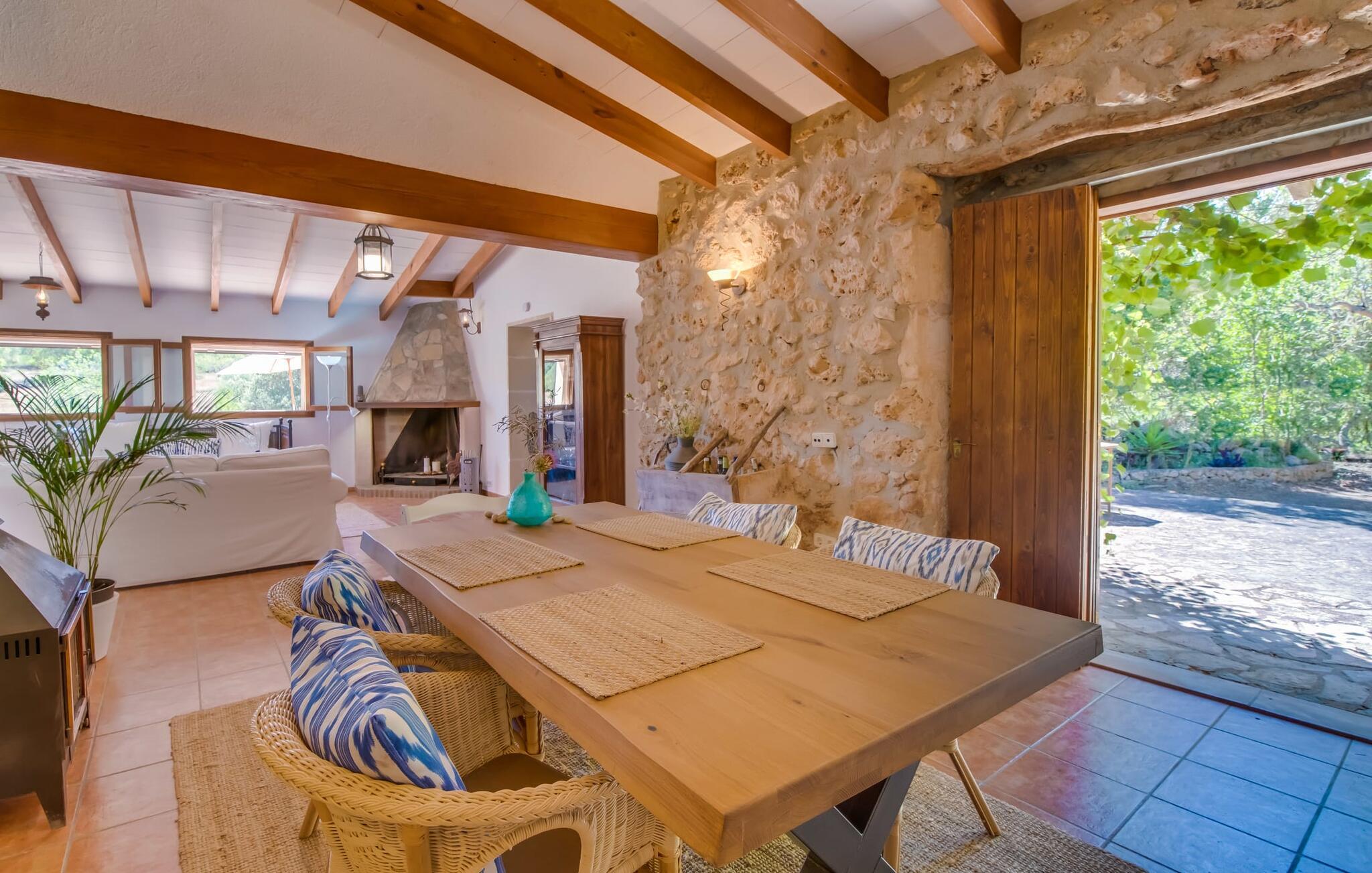 Beliggende på en svag skråning tilbyder feriehuset "Can Baldo" et fortryllende tilflugtssted i hjertet af Mallorca. Det primære opholdsområde har en charmerende naturstensfacade og byder på en betagende udsigt over det omkringliggende landskab med fyrretræer og marker. Den ekspansive poolterrasse er perfekt til at nyde smukke solopgange og private solbadningsøjeblikke. Hyggelige naturstenterrasser på bagsiden inviterer jer til at slappe af i skyggen. Ejendommen har en stor have med fodboldmål, en basketballkurv og et bordtennisbord. Det primære opholdsrum har en lys, åben grundplan med en hyggelig stue med pejs og direkte adgang til terrassen ved poolen. En indbydende spiseplads forbinder en af naturstensterrasserne, mens det lyse køkken har egen spiseplads og adgang til poolen. På dette niveau er der tre soveværelser med dobbeltsenge, hvoraf to har en-suite badeværelser, og et separat badeværelse. Fra haven er der adgang til et fjerde soveværelse med dobbeltseng og håndvask. Huset er udstyret med aircondition og varme, hvilket gør "Can Baldo" ideel til to familier eller venner, der ønsker at tilbringe en afslappende ferie sammen. Denne meget hyggelige bondegård ligger kun 6 km sydøst for den rolige landsby Sencelles. I en vidunderlig rolig beliggenhed er det et ideelt udgangspunkt for at udforske det mangfoldige Mallorca. Sencelles er ideel til daglige indkøb, og det ugentlige marked på Placa Nova med sine friske produkter er også et besøg værd. De fine sandstrande på den sydlige del af øen, herunder Cala Estancia, Platja de Palma og Cuidad Jardin, er omkring 30 minutter væk i bil.