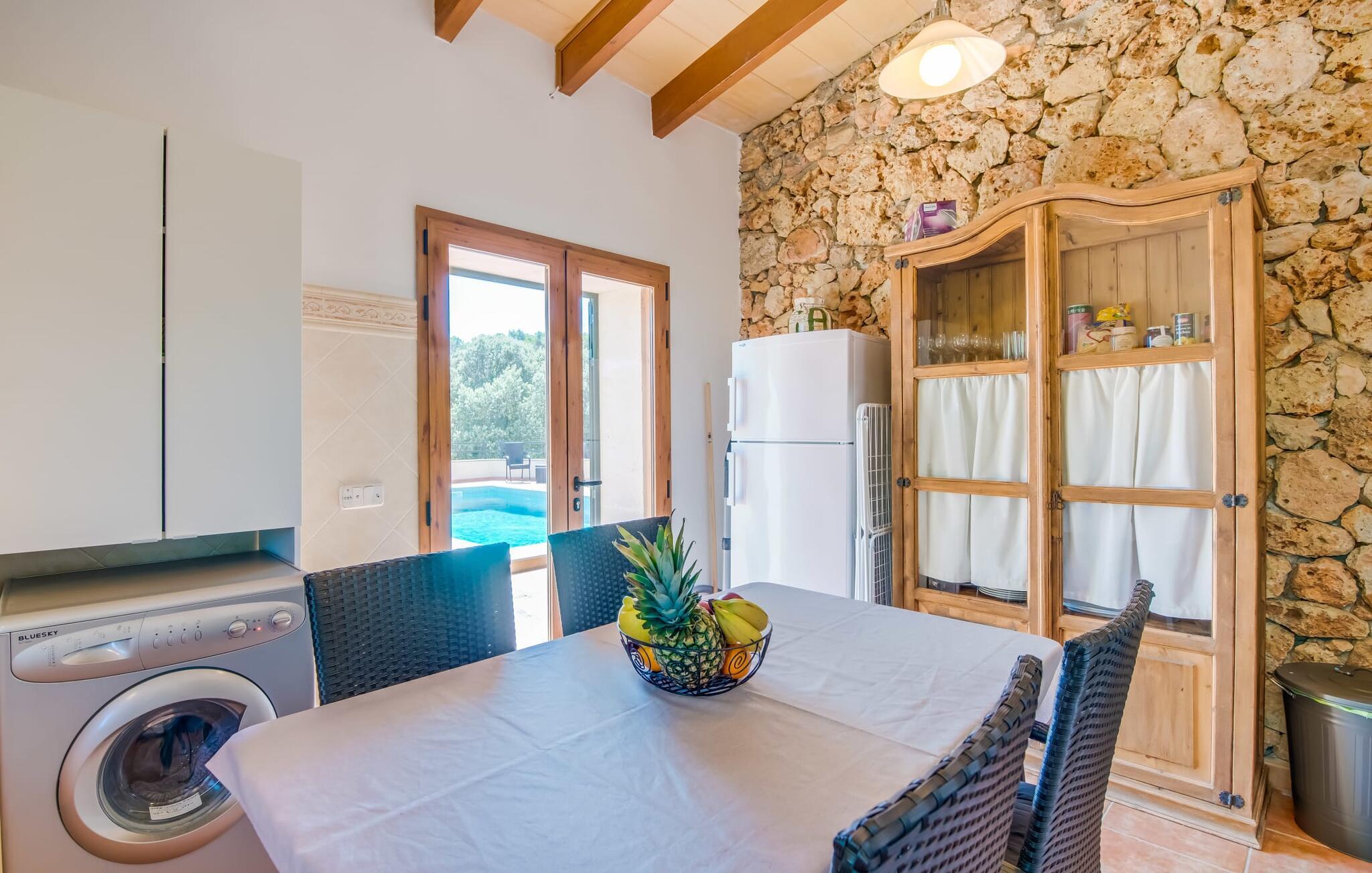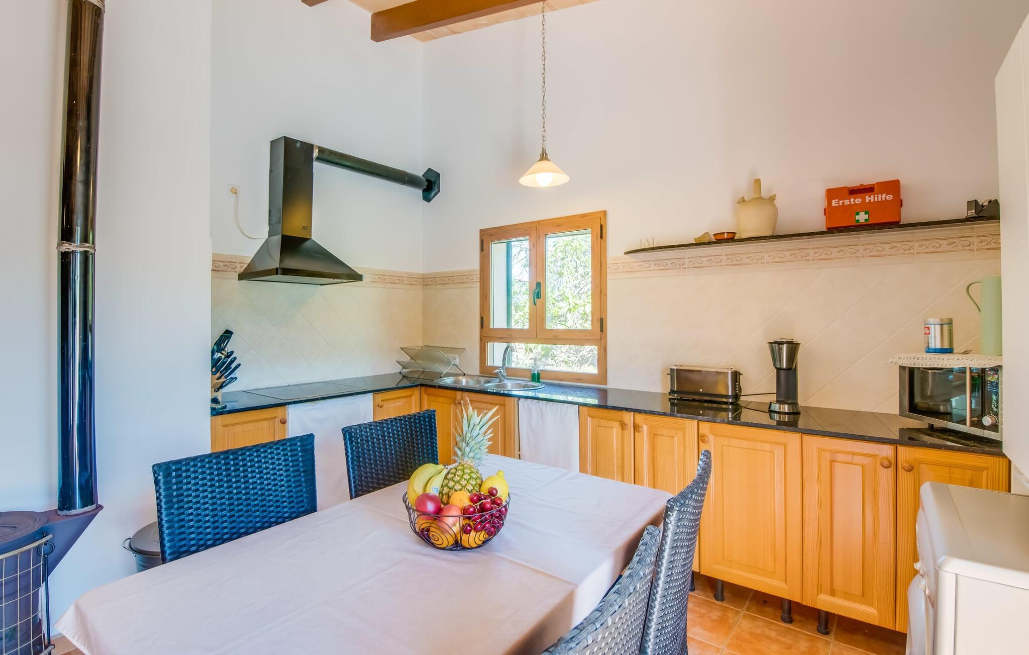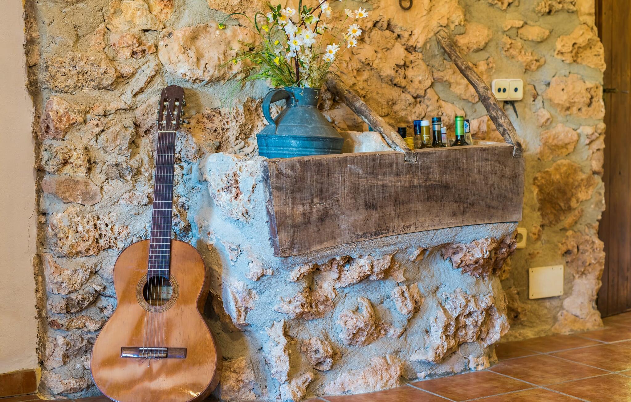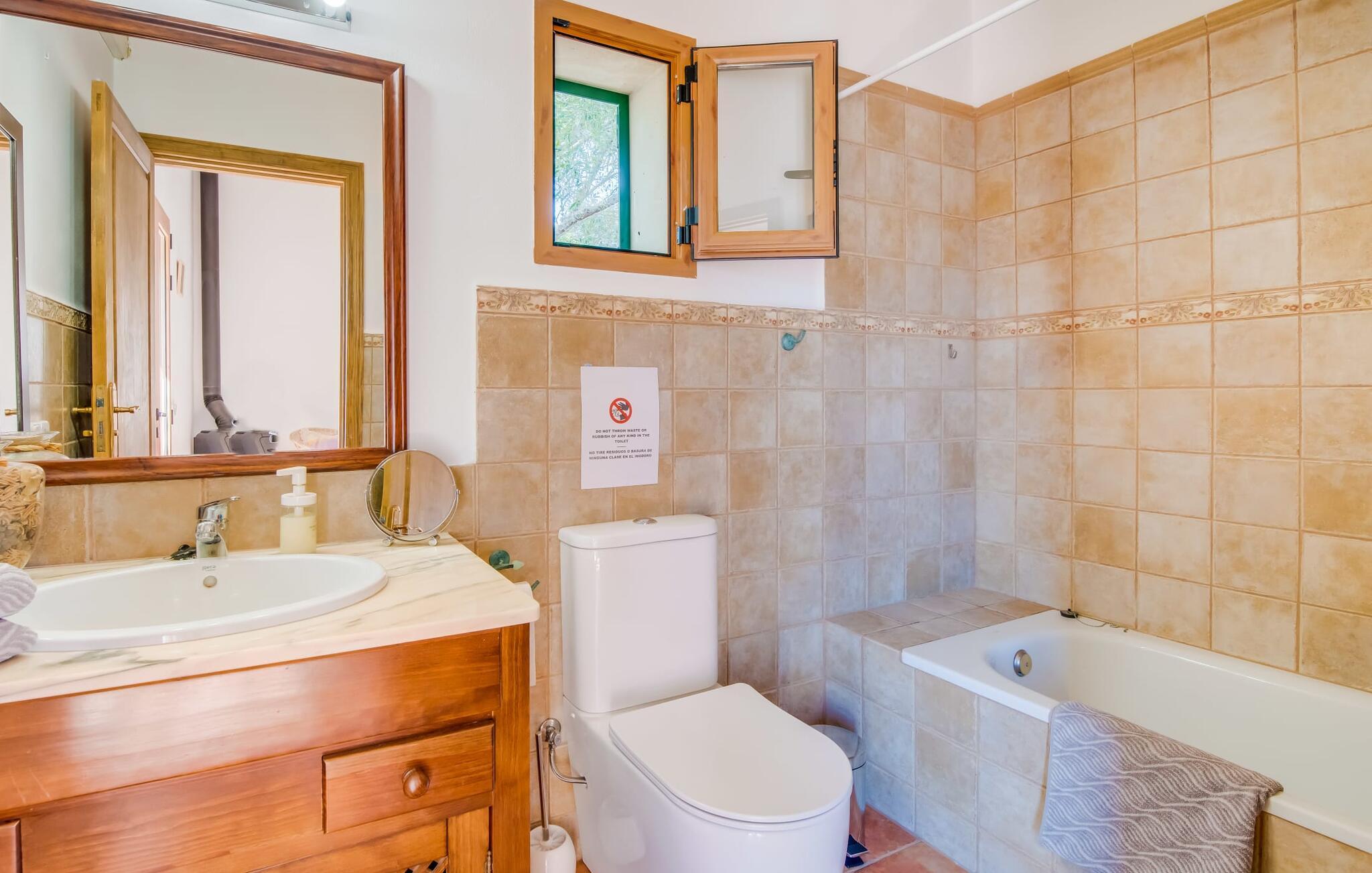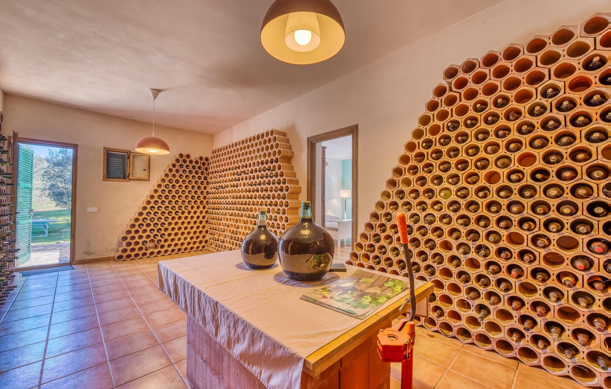 Beliggende på en svag skråning tilbyder feriehuset "Can Baldo" et fortryllende tilflugtssted i hjertet af Mallorca. Det primære opholdsområde har en charmerende naturstensfacade og byder på en betagende udsigt over det omkringliggende landskab med fyrretræer og marker. Den ekspansive poolterrasse er perfekt til at nyde smukke solopgange og private solbadningsøjeblikke. Hyggelige naturstenterrasser på bagsiden inviterer jer til at slappe af i skyggen. Ejendommen har en stor have med fodboldmål, en basketballkurv og et bordtennisbord. Det primære opholdsrum har en lys, åben grundplan med en hyggelig stue med pejs og direkte adgang til terrassen ved poolen. En indbydende spiseplads forbinder en af naturstensterrasserne, mens det lyse køkken har egen spiseplads og adgang til poolen. På dette niveau er der tre soveværelser med dobbeltsenge, hvoraf to har en-suite badeværelser, og et separat badeværelse. Fra haven er der adgang til et fjerde soveværelse med dobbeltseng og håndvask. Huset er udstyret med aircondition og varme, hvilket gør "Can Baldo" ideel til to familier eller venner, der ønsker at tilbringe en afslappende ferie sammen. Denne meget hyggelige bondegård ligger kun 6 km sydøst for den rolige landsby Sencelles. I en vidunderlig rolig beliggenhed er det et ideelt udgangspunkt for at udforske det mangfoldige Mallorca. Sencelles er ideel til daglige indkøb, og det ugentlige marked på Placa Nova med sine friske produkter er også et besøg værd. De fine sandstrande på den sydlige del af øen, herunder Cala Estancia, Platja de Palma og Cuidad Jardin, er omkring 30 minutter væk i bil.