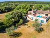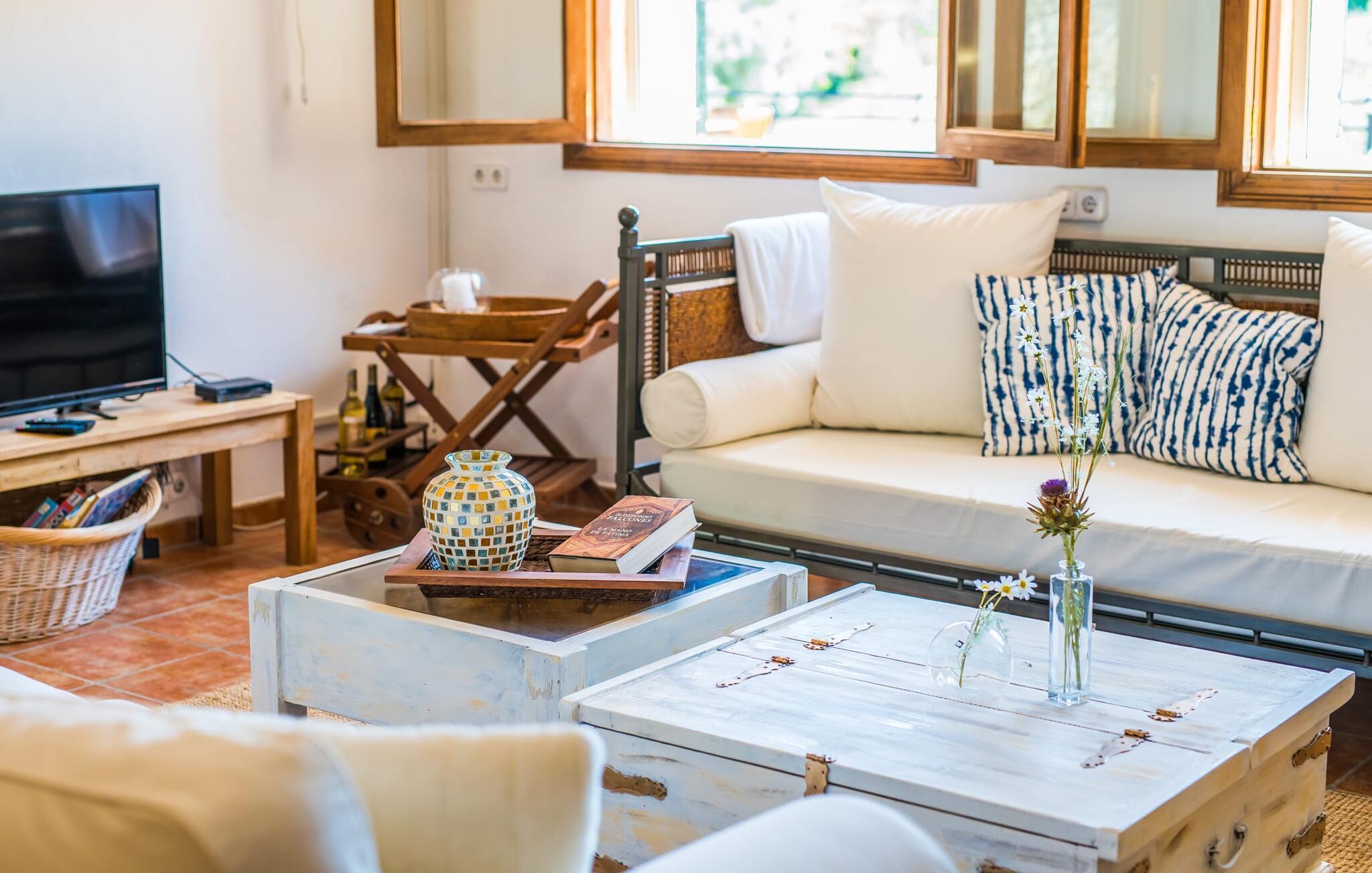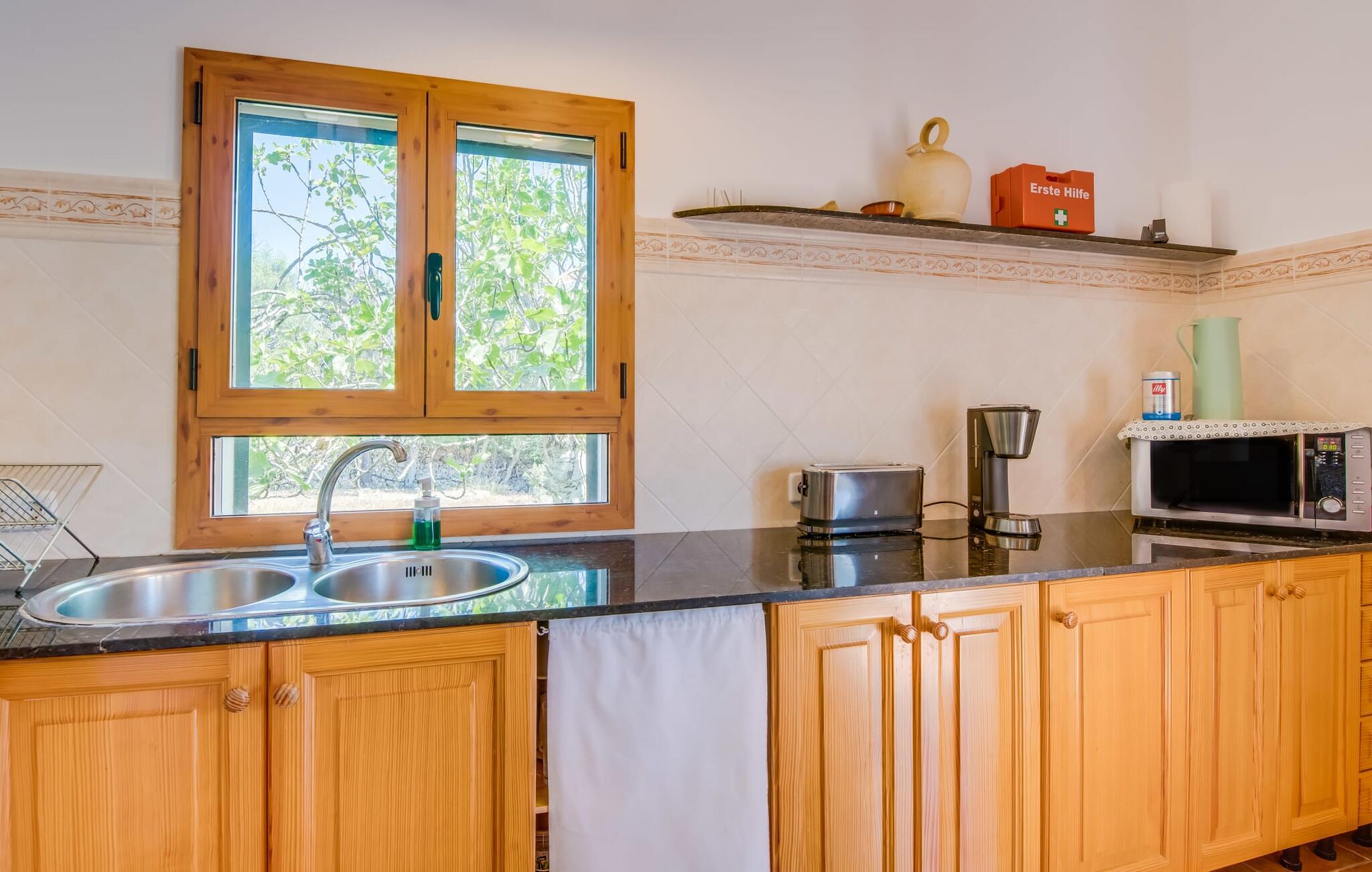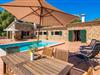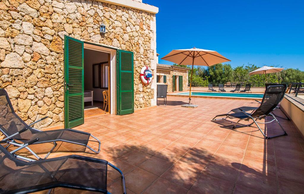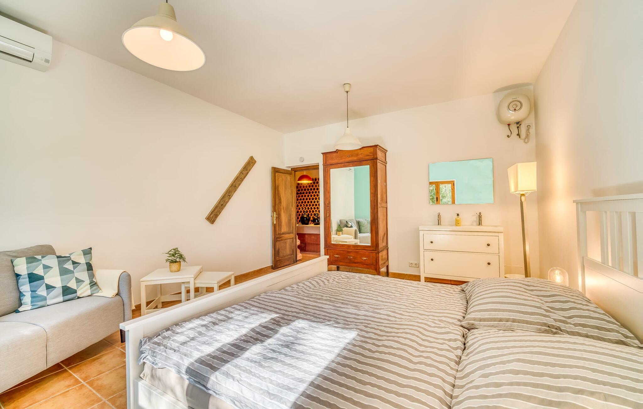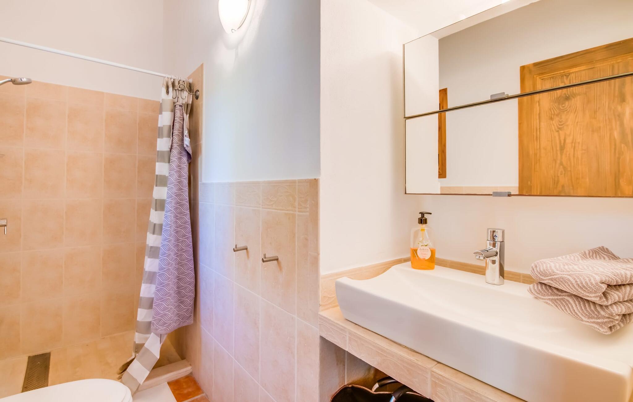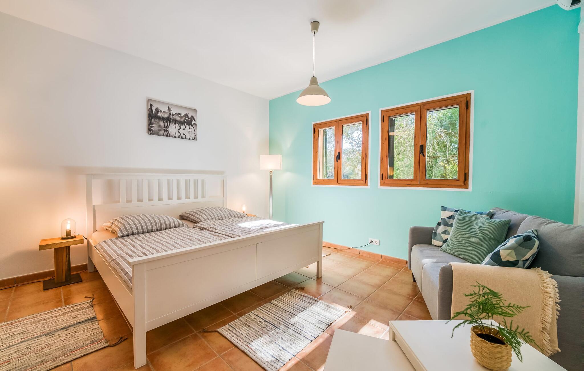 Beliggende på en svag skråning tilbyder feriehuset "Can Baldo" et fortryllende tilflugtssted i hjertet af Mallorca. Det primære opholdsområde har en charmerende naturstensfacade og byder på en betagende udsigt over det omkringliggende landskab med fyrretræer og marker. Den ekspansive poolterrasse er perfekt til at nyde smukke solopgange og private solbadningsøjeblikke. Hyggelige naturstenterrasser på bagsiden inviterer jer til at slappe af i skyggen. Ejendommen har en stor have med fodboldmål, en basketballkurv og et bordtennisbord. Det primære opholdsrum har en lys, åben grundplan med en hyggelig stue med pejs og direkte adgang til terrassen ved poolen. En indbydende spiseplads forbinder en af naturstensterrasserne, mens det lyse køkken har egen spiseplads og adgang til poolen. På dette niveau er der tre soveværelser med dobbeltsenge, hvoraf to har en-suite badeværelser, og et separat badeværelse. Fra haven er der adgang til et fjerde soveværelse med dobbeltseng og håndvask. Huset er udstyret med aircondition og varme, hvilket gør "Can Baldo" ideel til to familier eller venner, der ønsker at tilbringe en afslappende ferie sammen. Denne meget hyggelige bondegård ligger kun 6 km sydøst for den rolige landsby Sencelles. I en vidunderlig rolig beliggenhed er det et ideelt udgangspunkt for at udforske det mangfoldige Mallorca. Sencelles er ideel til daglige indkøb, og det ugentlige marked på Placa Nova med sine friske produkter er også et besøg værd. De fine sandstrande på den sydlige del af øen, herunder Cala Estancia, Platja de Palma og Cuidad Jardin, er omkring 30 minutter væk i bil.