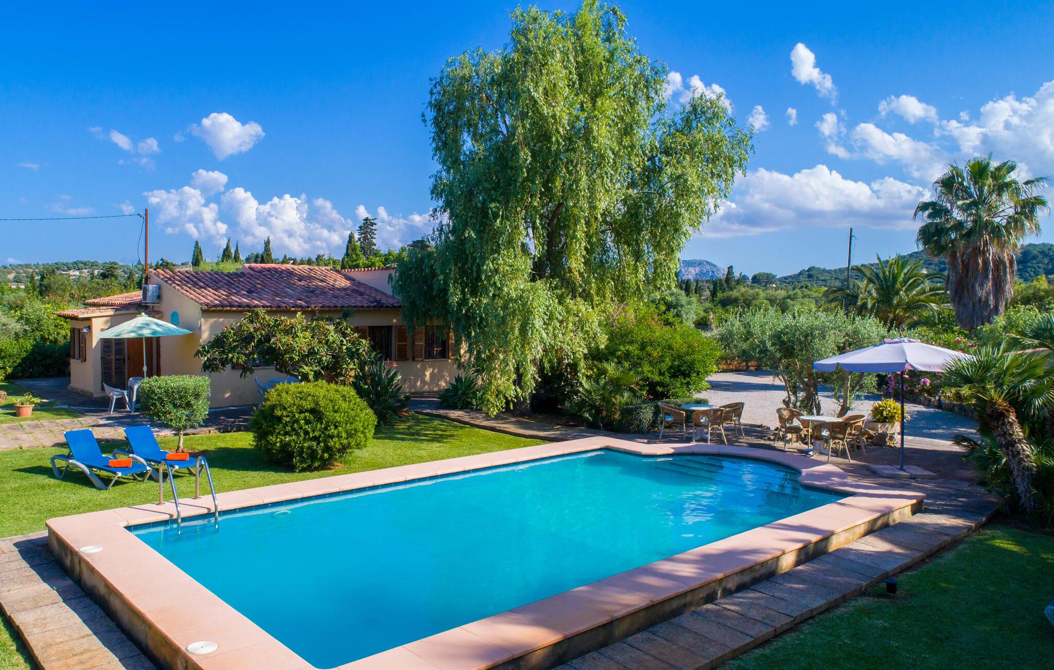 Familie eller venner? Bjerge eller hav? Aktiv ferie eller total afslapning? Takket være sin fremragende beliggenhed er den landlige villa "Can Bleio" et ideelt udgangspunkt for adskillige forskellige aktiviteter på Mallorca. Når I træder ind i huset, bliver I mødt af en åben stue med satellit-tv og spiseplads, et moderne fuldt udstyret køkken, fire airconditionerede soveværelser med dobbeltsenge og to badeværelser (et en suite). Talrige traditionelle elementer som synlige tagbjælker, mørke sprossede vinduesrammer, et rustikt spisebord og en rummelig hjørnesofa skaber en meget hyggelig atmosfære. En ting er sikkert: Uanset hvilken type ferie I ønsker at holde i sommerhuset “Can Bleio”, vil I kunne slukke fra hverdagen fra første minut af jeres ophold. Feriehuset, bygget i traditionel stil, er omgivet af en smuk havegrund med pool og en rummelig, velholdt græsplæne. Her finder I flere komfortable siddepladser, liggestole og en chill-out terrasse. Den lille træhytte gemmer på et lokkende spabad og en motionscykel. Det overdækkede udekøkken rummer en pejs og en stor spiseplads. I tilknytning til hovedhuset er endnu en overdækket terrasse med et smedejernssiddeområde og en behagelig sofa - det perfekte sted til hyggelige stearinlys og vinsessioner. Feriehuset "Can Bleio" ligger i et landligt område ca. 2 km øst for den smukke landsby Pollença. Den nærliggende Ma-2202 tager jer til de lange strande i Pollença på mindre end 10 minutter i bil. De familievenlige strande nær Alcúdia kan nås på cirka 15 minutter i bil.