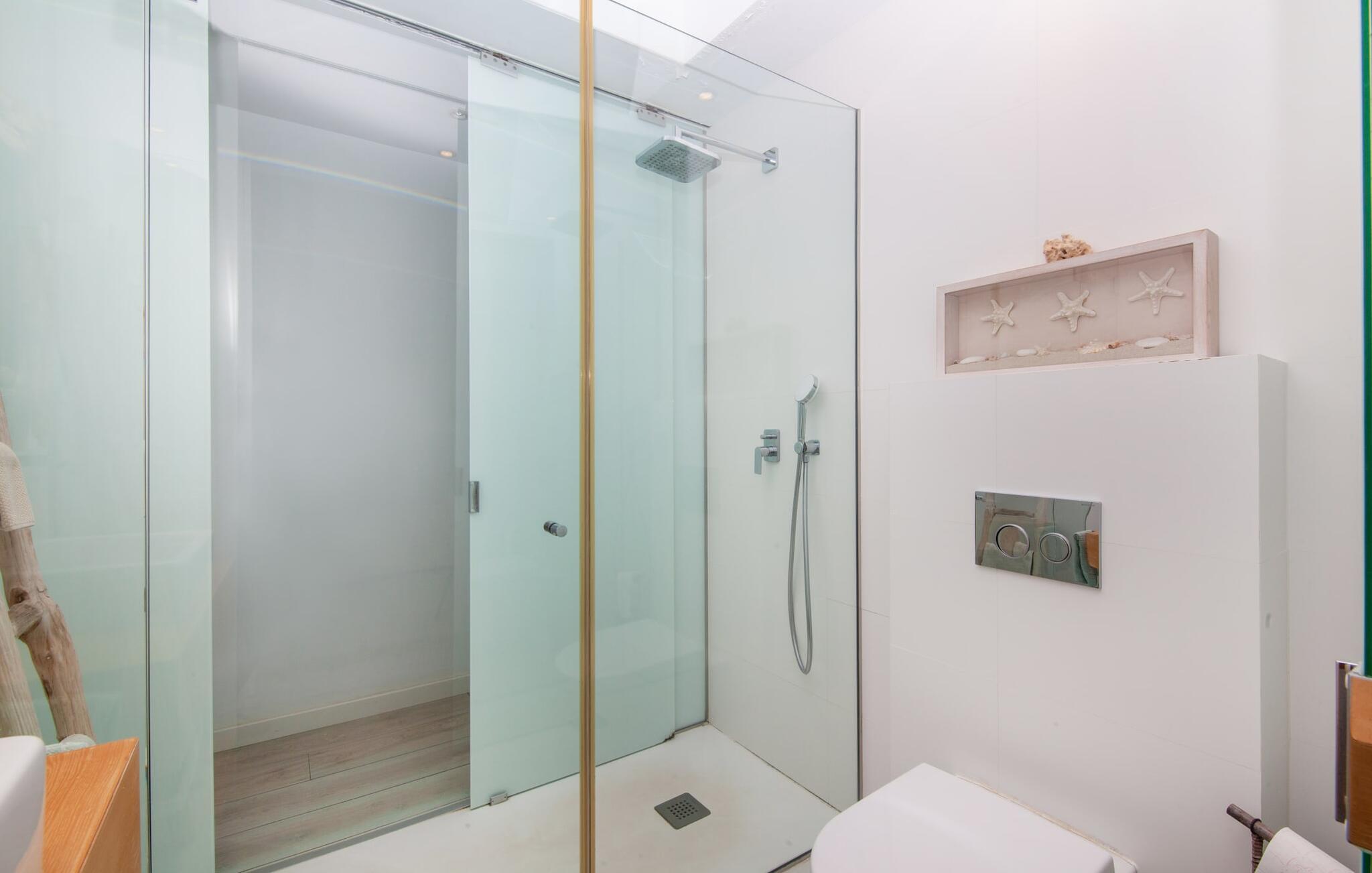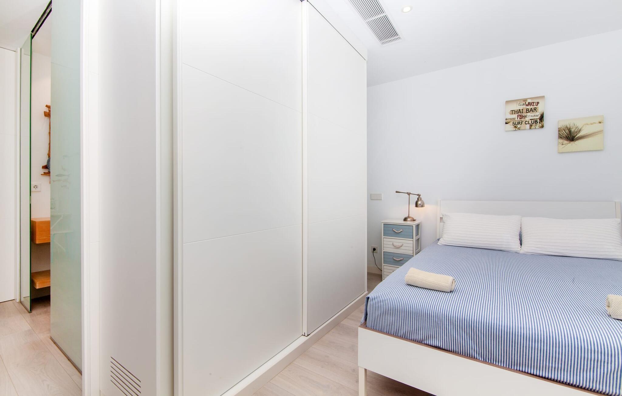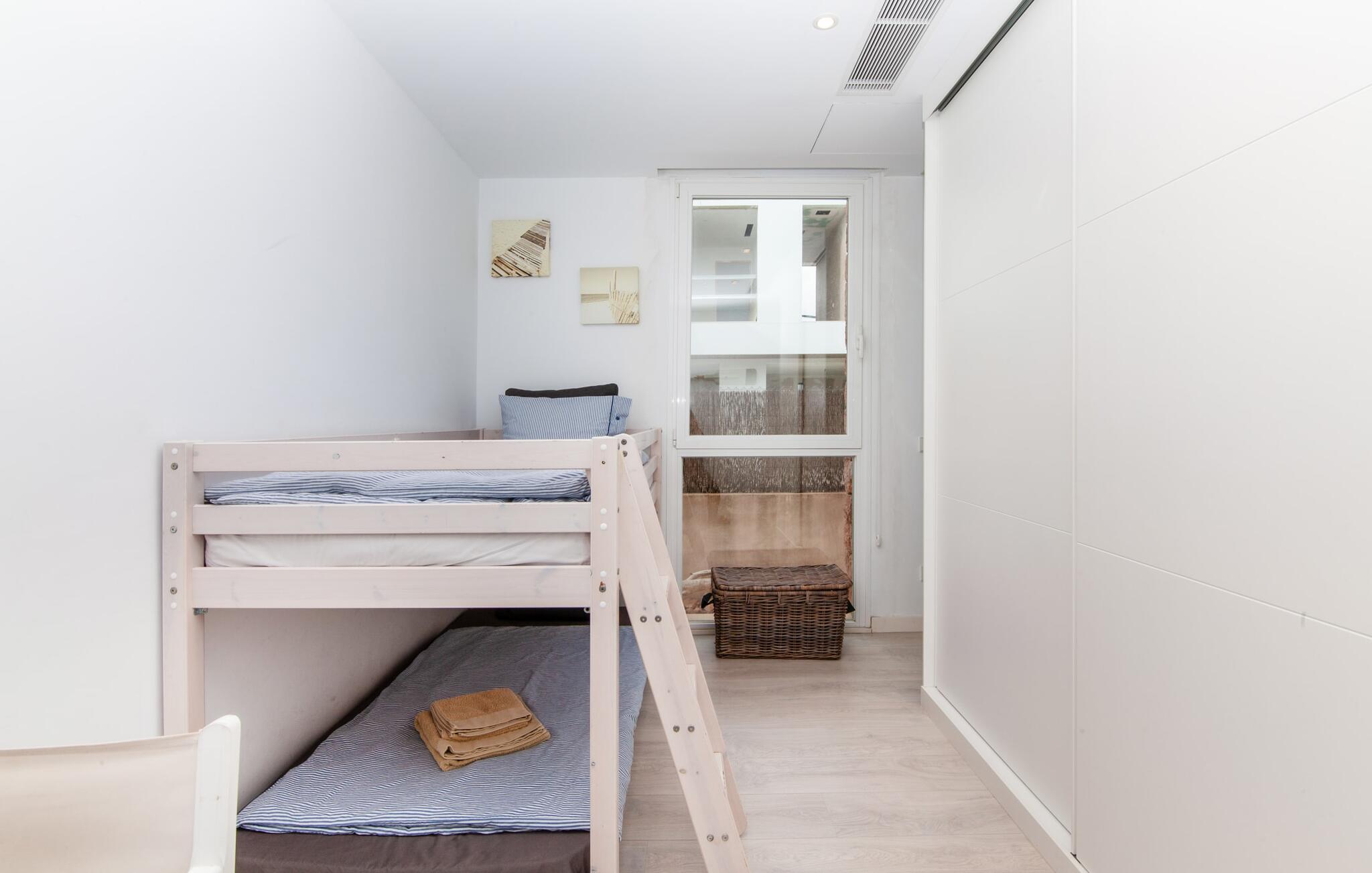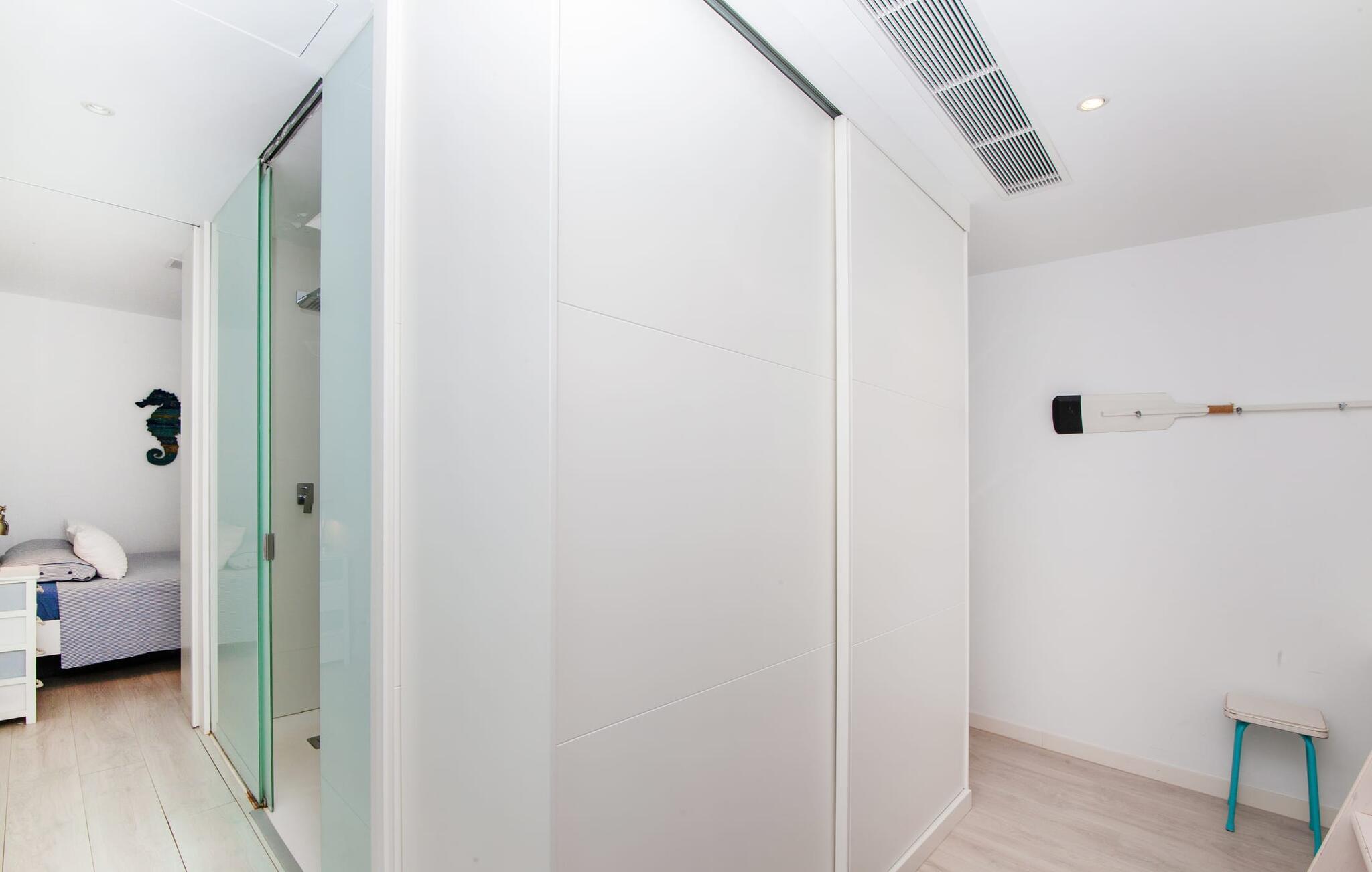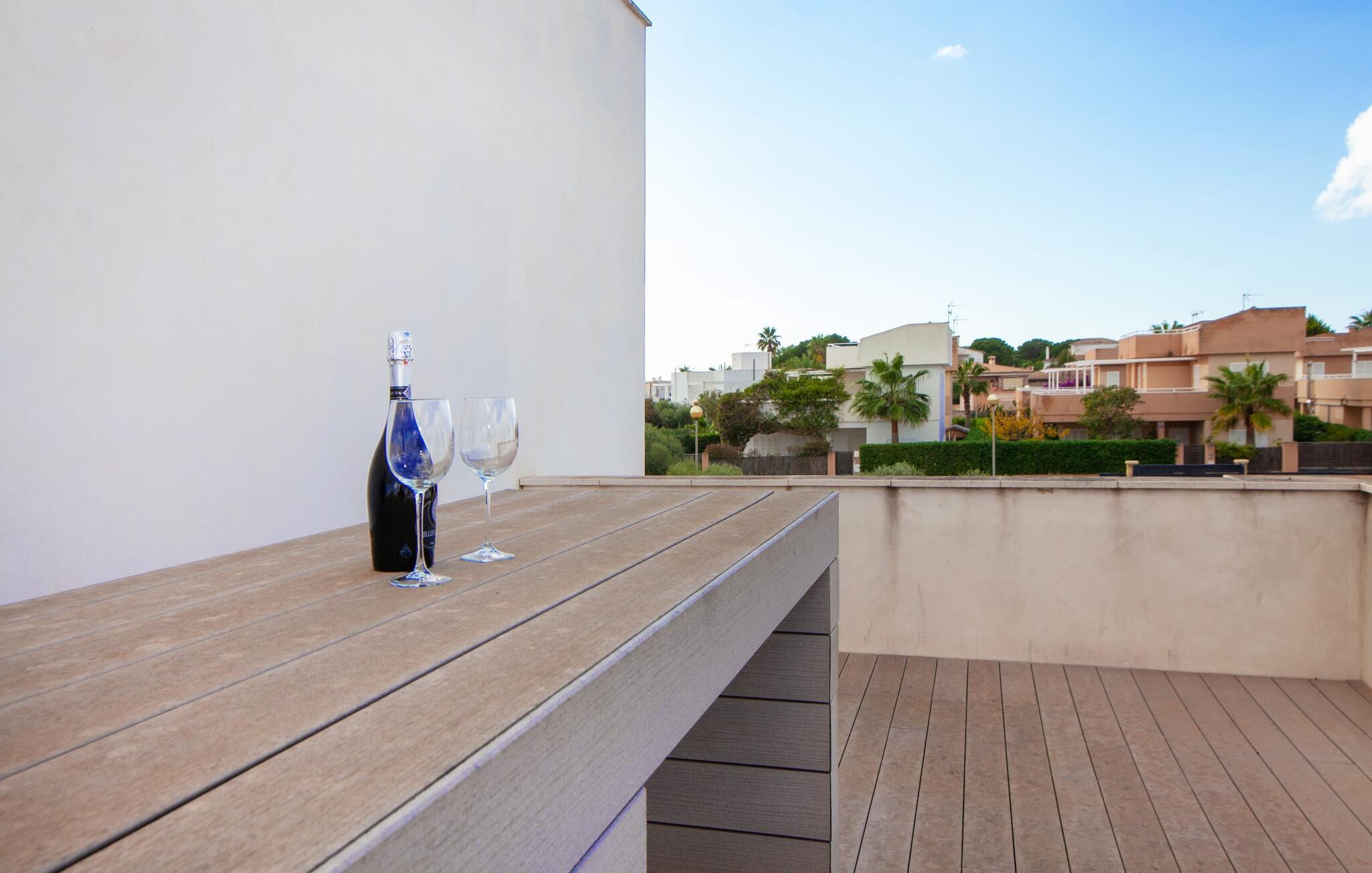 Denne kubeformede bondegård på Mallorca er et vidunderligt sted for ubekymrede ferier ved havet. Den umiddelbart iøjnefaldende tilbygning med naturstensfacade kendetegner det stilrene hjem, som sigter mod at være én ting frem for alt: Individuelt. Plæner og en væg med privatlivsskærme præger udendørsområdet, hvis centrum er den aflange pool. Det lover vidunderlig afkøling på varme dage og er meget let at nå via trapper. Komfortable liggestole fås til alle soldyrkere, som blot kan placeres på jeres yndlingssted, og hvorfra I kan nyde ferielivet i fulde drag. Den let hævede terrasse direkte ved huset har en indbydende chill-out lounge med udsigt til haven og poolen. På den anden side af huset byder en anden veranda på et tilsvarende hyggeligt sted, i dette tilfælde bekvemt placeret direkte foran køkkenet. Et originalt udtænkt og designet interiør byder jer velkommen, når I træder ind i den behageligt lyse villa "Can Bosquerro". Den solide, rødligt glitrende natursten fortsætter her og sætter både effektive og æstetiske accenter i rummenes vidunderlige maritime flair. Stue-spisestue og køkken smelter sammen i en halvåben planløsning, der skaber en flydende overgang mellem brugsområderne. Komfort og funktionalitet er lige vigtige. Alle mulige unikke detaljer forstærker denne individuelle, moderne atmosfære yderligere. To hyggelige soveværelser - et med dobbeltseng og et med køjeseng - samt et brusebad (installeret i det største af de to soveværelser) fuldender stueetagen. Den øverste etage er domineret af et rummeligt soveværelse med opholdsstue og privat badeværelse. Herfra har I udgang til den skønne altan, hvor jeres første kaffe om morgenen med sikkerhed smager lige så lækkert som en solnedgang. Denne villa på Mallorca er et sandt lykketræf for alle, der ønsker at tilbringe deres ferie tæt på stranden, æstetisk og af høj kvalitet. Dette æstetiske feriehus på Mallorca scorer med sin attraktive beliggenhed tæt ved havet - stranden og havnen ligger i gåafstand. Den originalt designede villa ligger desuden bekvemt direkte på en lille stille gade og er derfor ideelt forbundet med forskellige udflugtsmål. Sa Ràpita har en attraktiv infrastruktur med restauranter og indkøbsmuligheder. Nærheden til andre smukke strande, herunder Es Trenc eller Ses Covetes, afrunder beliggenhedsfordelene.