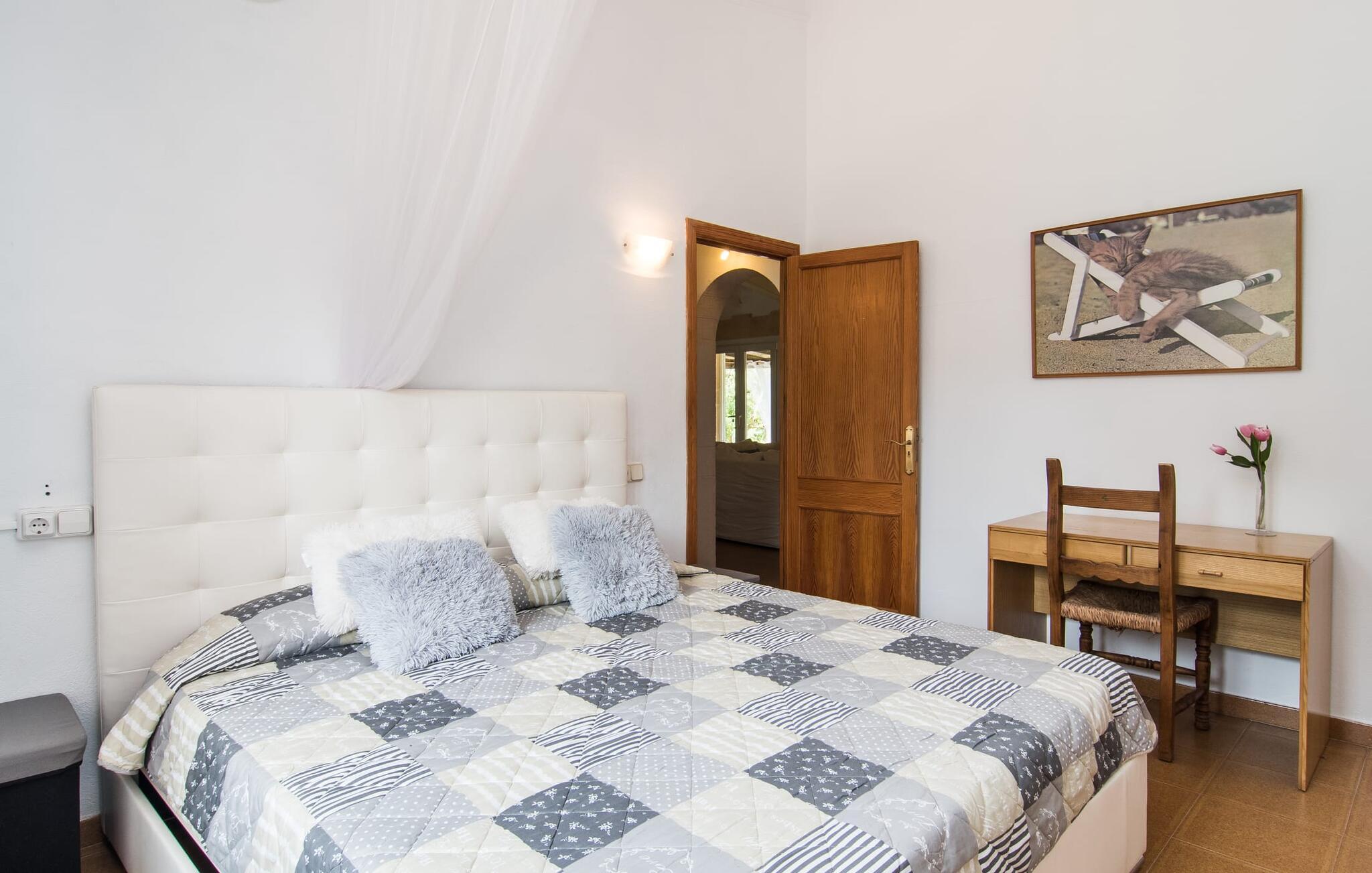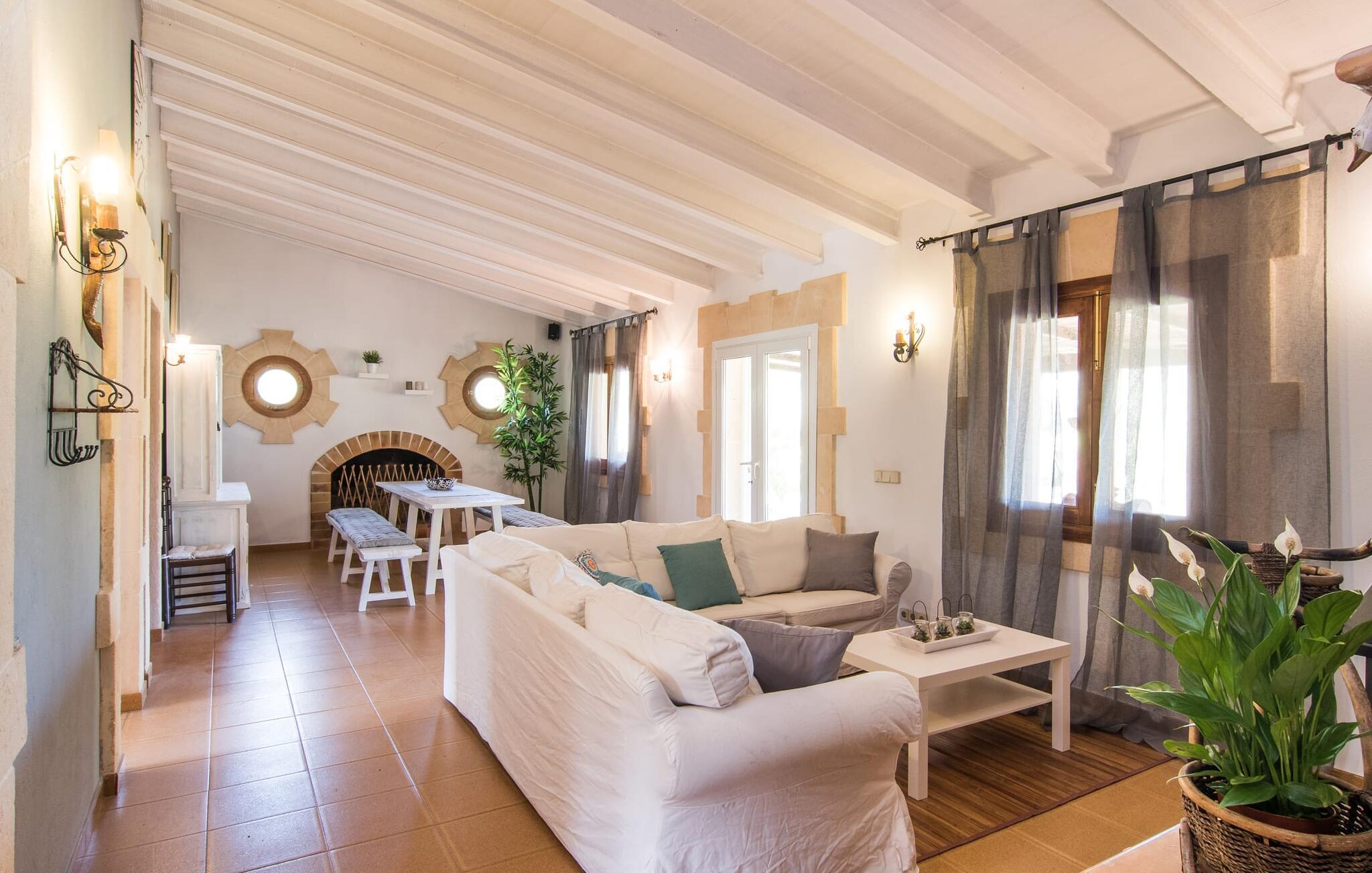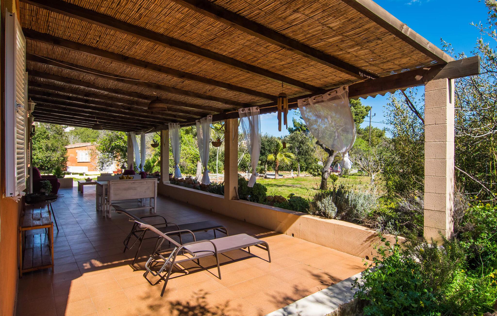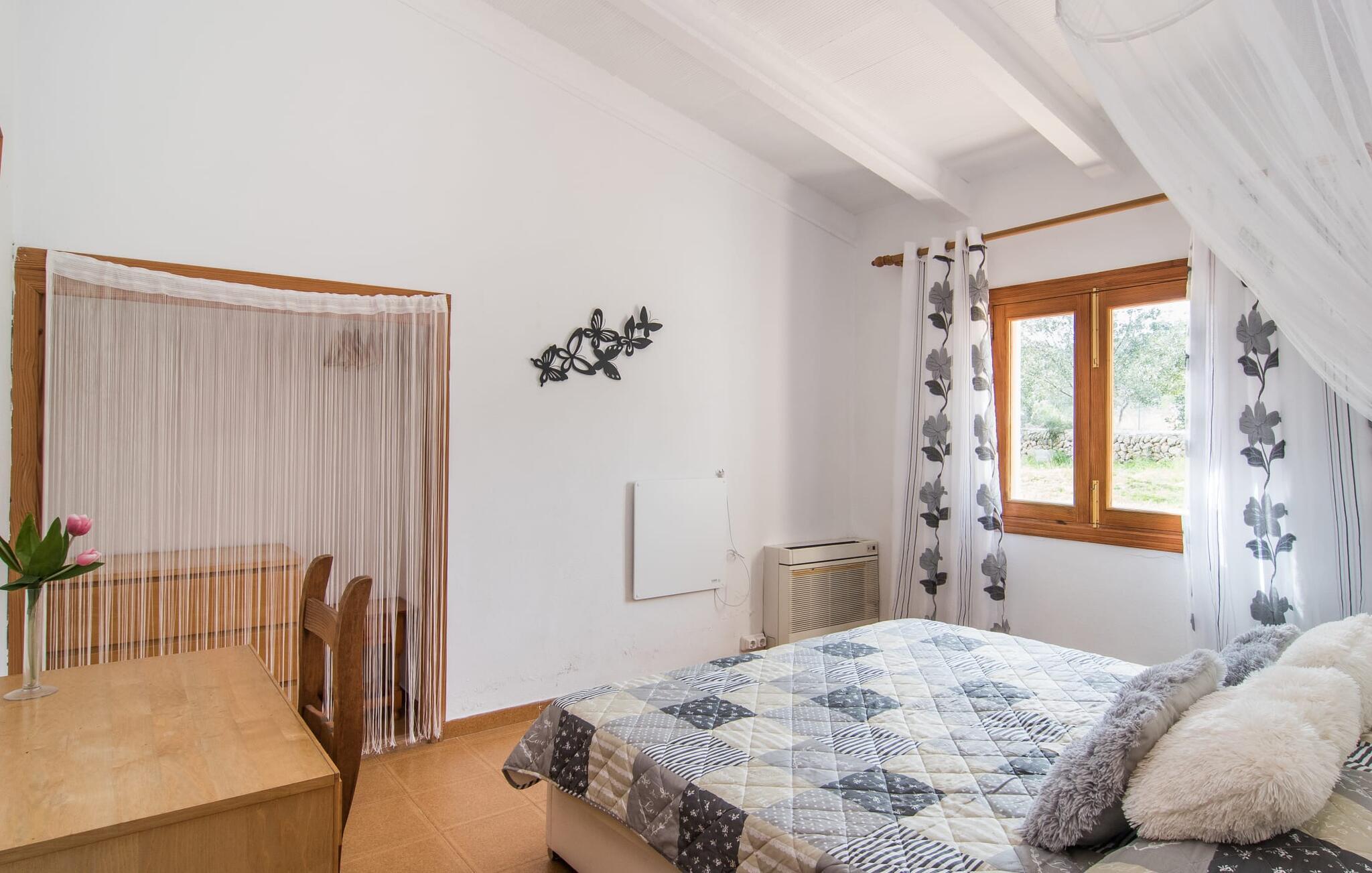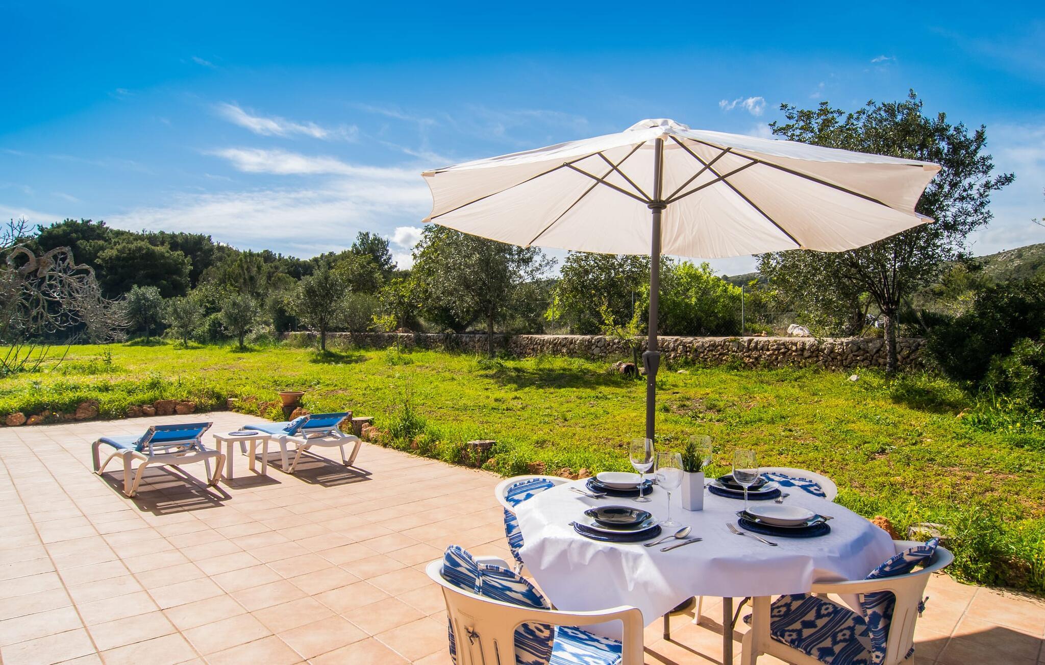 Den smukke villa "Can Caragol" er lidt mindre end mange andre i vores portefølje, men det er netop det, der gør denne lille perle med sin chalet-lignende karakter så speciel. De cremefarvede dekorationer omkring vinduerne i den orangebrune bygning ligner små kroner, mens de hvide skodder runder det indbydende indtryk af. Selvom havet og andre huse er inden for synsvidde, kan I her nyde den afsondrede landlige beliggenhed og se på tværs af ejendommen til det stedsegrønne landskab bagved. I vil opdage figen- og oliventræer i den rummelige have og samtidig nyde duften af middelhavsblomster med en uberørt karakter. Denne fornøjelse nydes bedst på solterrassen med spiseplads, men også på den overdækkede terrasse på den anden side af bygningen. Morgenmad i solen, en siesta på en af de komfortable liggestole, happy hour i de lilla loungemøbler, en grillaften i ly af verandaen - hvilken vidunderlig måde at tilbringe jeres ferie på! Poolen, der er installeret på et plateau, ligger kun få meter fra huset, og ligesom alle jeres yndlingssteder i denne store have, er den slet ikke synlig. Der er også liggestole til at slappe af og slappe af. I denne smukke villa ligger skønheden bestemt i detaljerne. Den moderne stil med et strejf af land er behagelig og afslappet. At koncentrere sig om det væsentlige, smarte detaljer og farverige accenter hjælper jer med at flygte fra hverdagen. Så snart I træder ind af døren, vil I indse, hvorfor det er så nemt at bo her – for I vil blive ramt af en imødekommende og behagelig følelse af at være hjemme. Det rustikt udseende spisebord med enkle træbænke og blødt polstrede hynder passer perfekt sammen med landstedsmøbler med et strejf af shabby chic. Den hyggelige hjørnesofa foran pejsen dominerer den anden halvdel af rummet og imponerer i kombination med sandstenselementerne på vægge og døre samt de lakerede trælofter. Alle værelser har terracotta-farvede gulvfliser, inklusive det separate køkken, som tilbyder alle de sædvanlige faciliteter til selvforplejning i sin fuldt udstyrede enhed. Da det at lave mad eller grille sammen er en integreret del af en ferie, er det en velovervejet beslutning at vælge selvforplejning. Denne anbefalede villa er velegnet til to par med eller uden børn samt til en familie med børn, der hellere vil have et hus end en ferielejlighed. Følelsen af frihed, som en ugeneret villa som denne byder på, er i sandhed noget særligt. Vores gæster er garanteret en afslappende nat i to dobbeltværelser, hver udstyret med 90 cm brede senge. De to hvide badekar med traditionelle mallorcanske blomstermotiver af keramiske kanter fuldender den harmoniske atmosfære i dette smukke hus. Ikke engang 500 m fra havet byder denne smukke villa på en smuk kombination af idyllisk landskab og alligevel veludviklet infrastruktur. Resultatet er en perfekt ferie, der henvender sig til alle interesser: slentre rundt på feriestedet, shoppe, slappe af på stranden eller slappe af i det fredeligt afsondrede feriehus under jeres uvurderlige nedetid. Det lille feriested Sa Font de Sa Cala er mest kendt for sin familievenlige atmosfære, lyse sand og krystalklare vand – stranden er endda inden for gåafstand. Vandsportsentusiaster vil finde en bred vifte af aktiviteter, herunder dykning eller leje af stand-up paddleboards eller vandcykler. Der er flere restauranter, selv lige ved stranden. Hvis I vil udforske området, vil I fortryde en tur til Capdepera eller Cala Ratjada og bestemt ikke jeres ophold på “Can Caragol”. Den markante villa "Can Caragol" med landlig flair ligger nær den lille kystby Sa Font de Sa Cala, som ligger i gåafstand. Omgivet af middelhavsvegetation og sat på baggrund af fredelige bølgende bakker, er husets beliggenhed perfekt til at besøge de nærliggende feriesteder Pedruscada, Capdepera eller det livlige Cala Ratjada. Vandsportsentusiaster vil få noget for pengene på Sa Font de Sa Cala-stranden, som er synlig fra villaen.